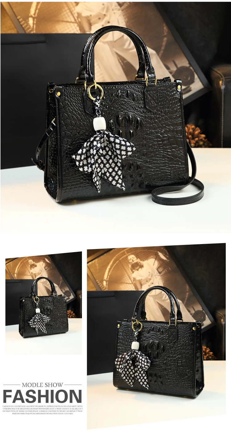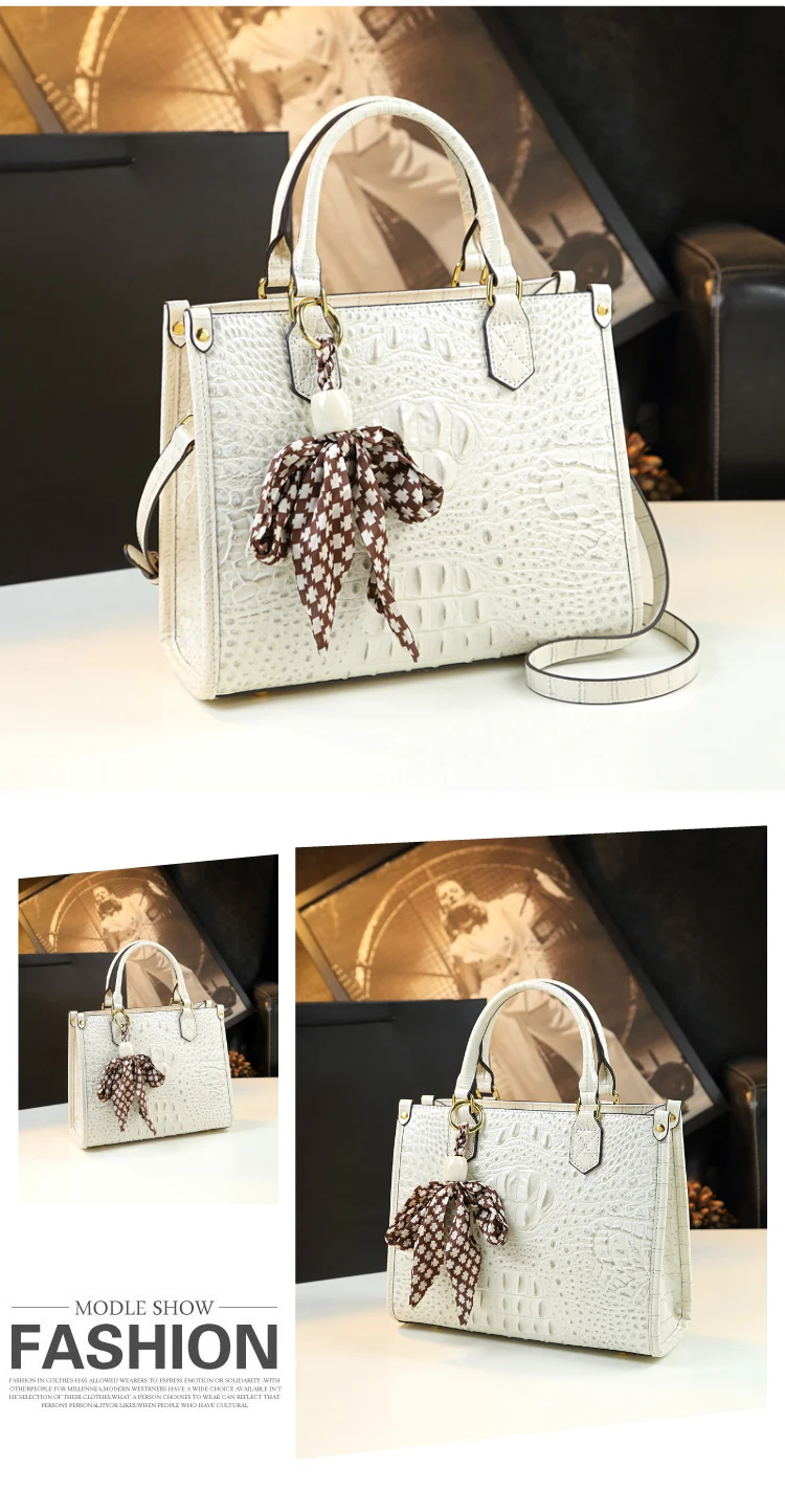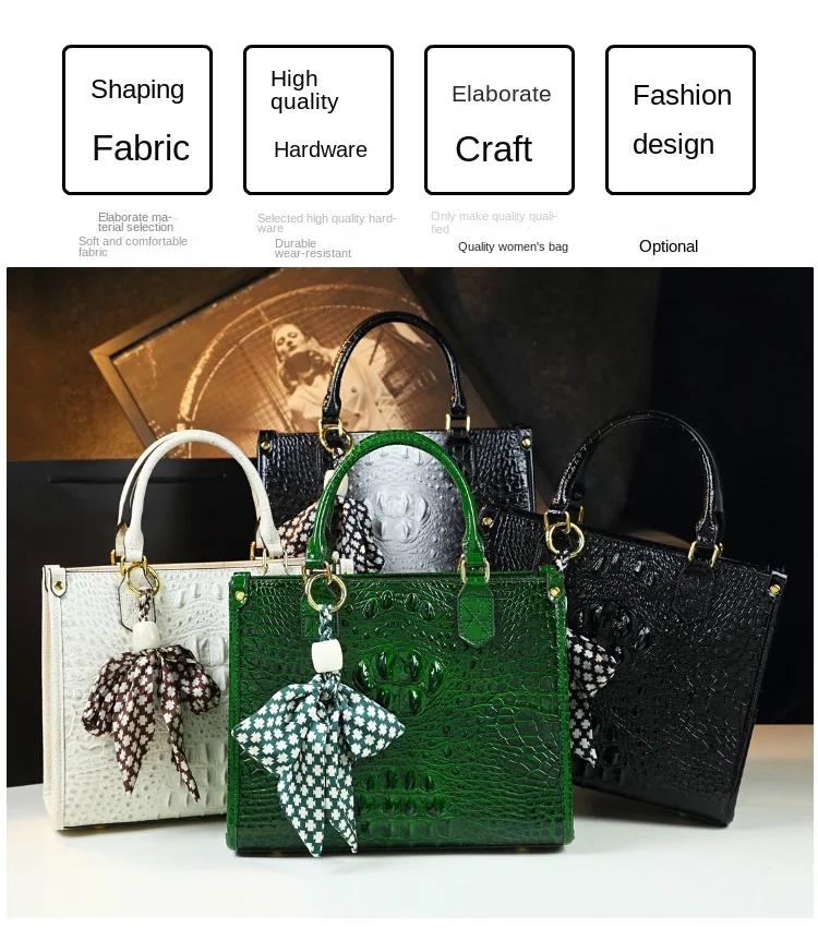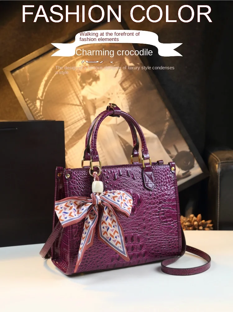 Luxury Fashion Genuine Leather Women Handbags Crocodile Pattern Lady Mom Shoulder Messenger Bag Elegant Portable Tote Bags 2023