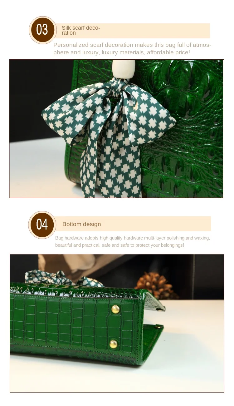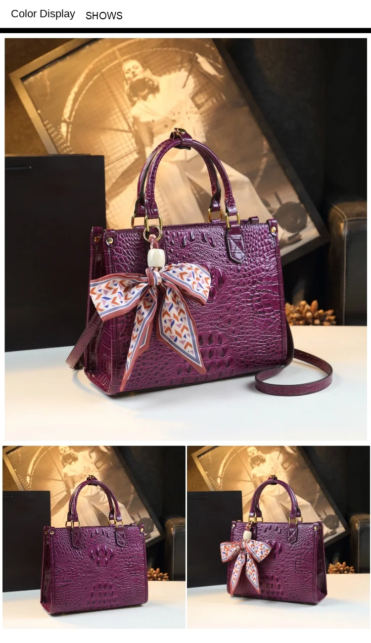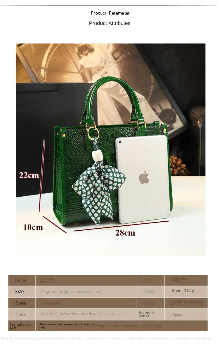 Luxury Fashion Genuine Leather Women Handbags Crocodile Pattern Lady Mom Shoulder Messenger Bag Elegant Portable Tote Bags 2023