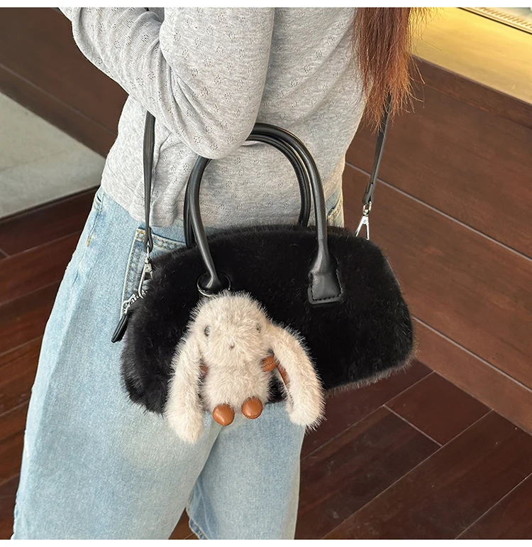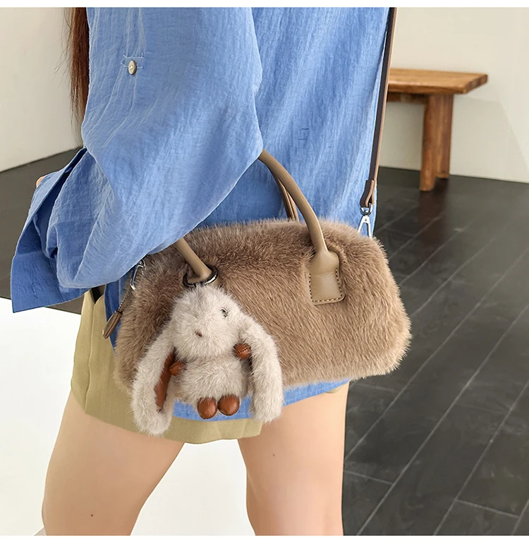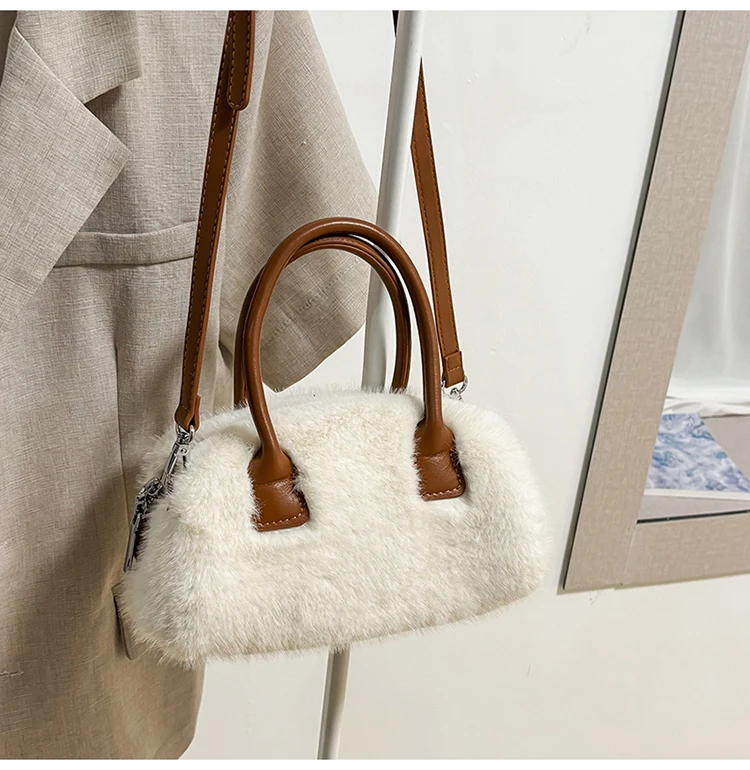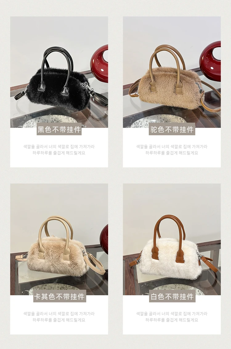 Luxury Faux Fur Ladies Square Shoulder Bags Winter Fluffy Female Crossbody Bag Soft Furry Plush Women’s Small Handbags Purse