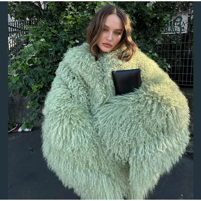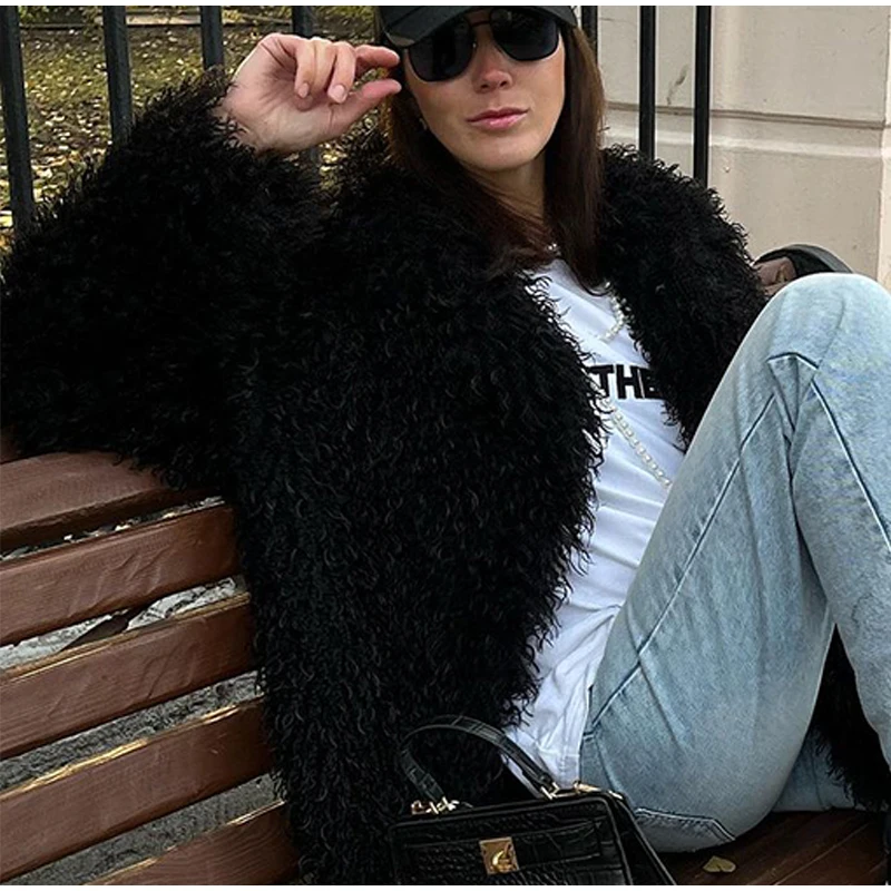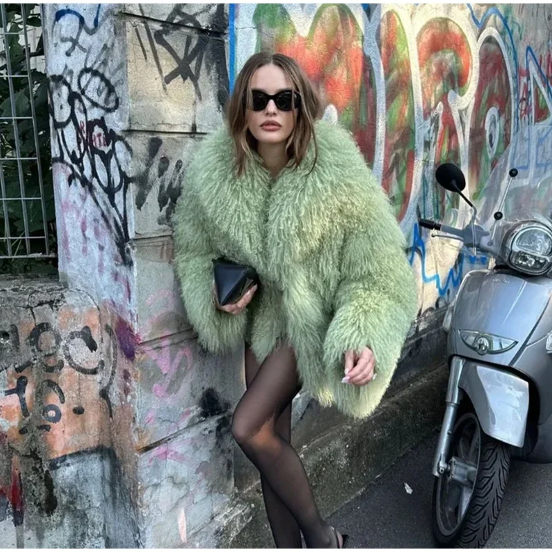 Luxury Fluffy Faux Fur Jacket Coat Women Oversize Long Sleeve Lapel Plush Overcoat 2024 Winter Chic Lady Thicken Warm Outwear