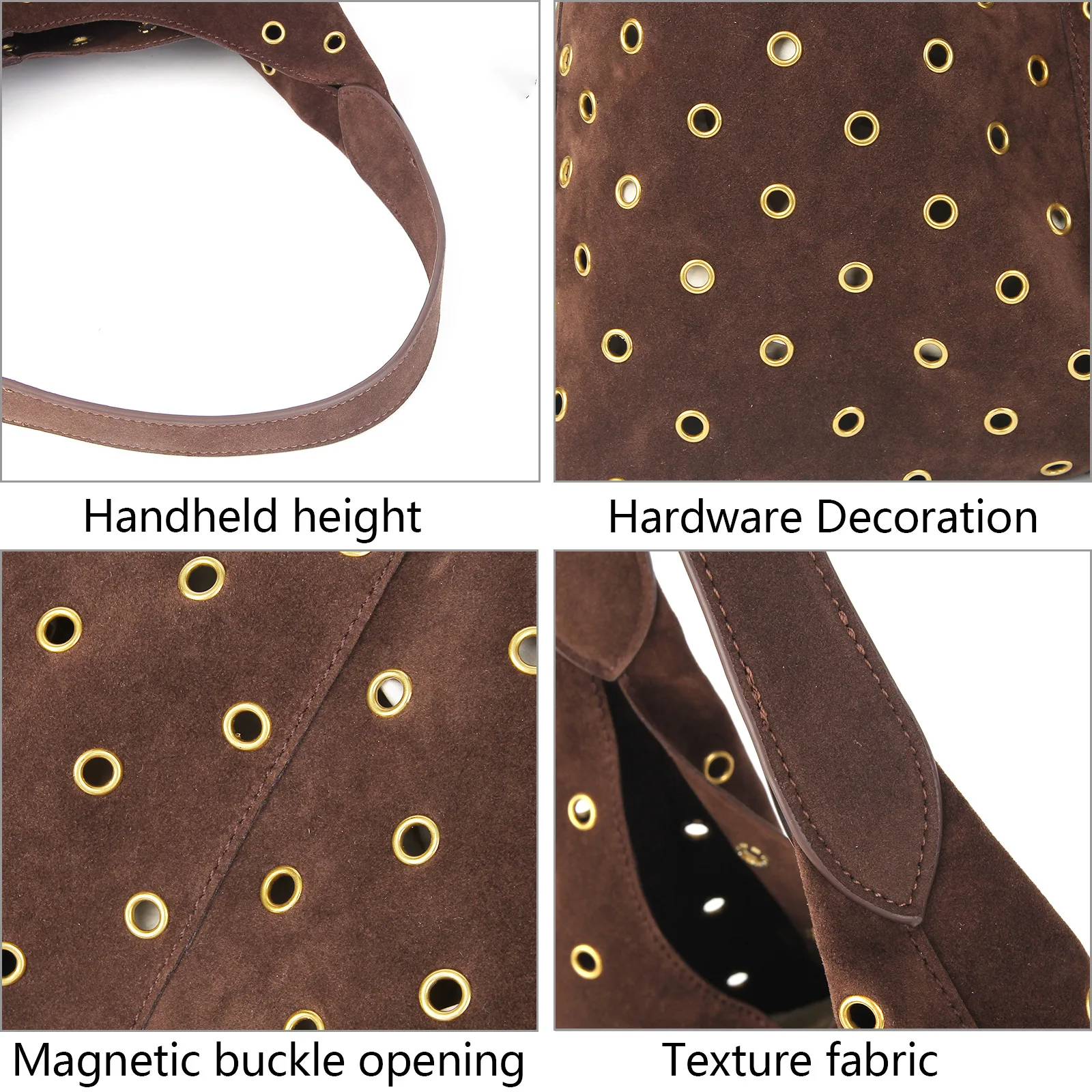 Luxury Hollow Rivet Tote Bag for Women Large Capacity Soft PU Leather Hobo Shoulder Bag Trendy Big Shopper Purse for Work