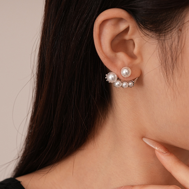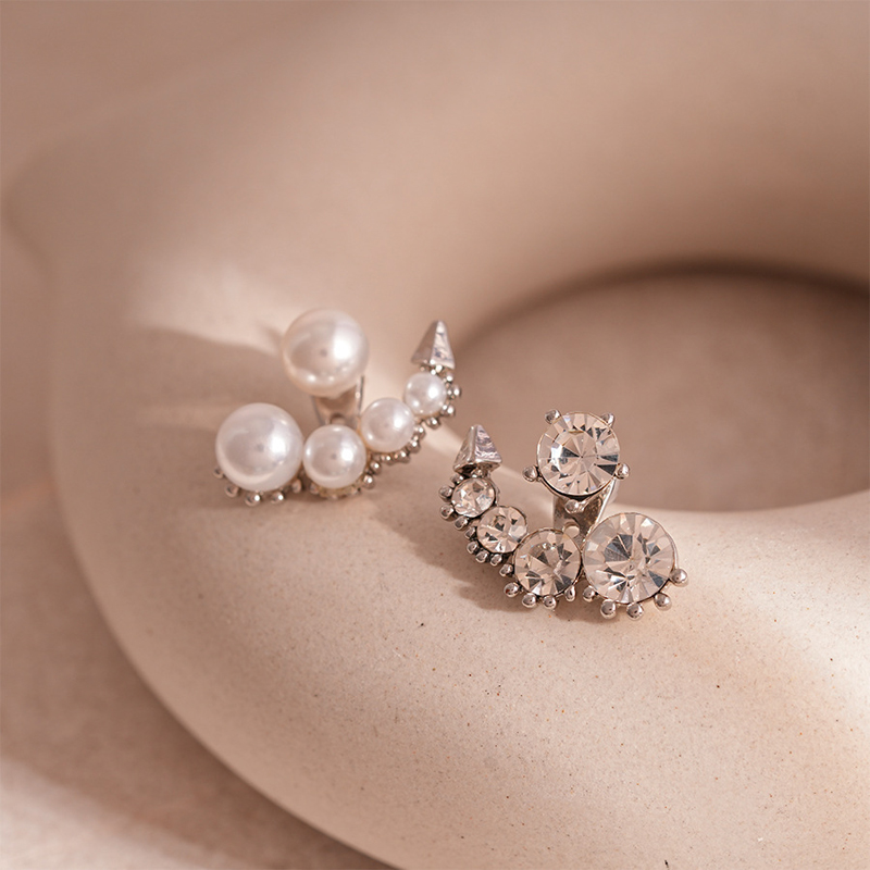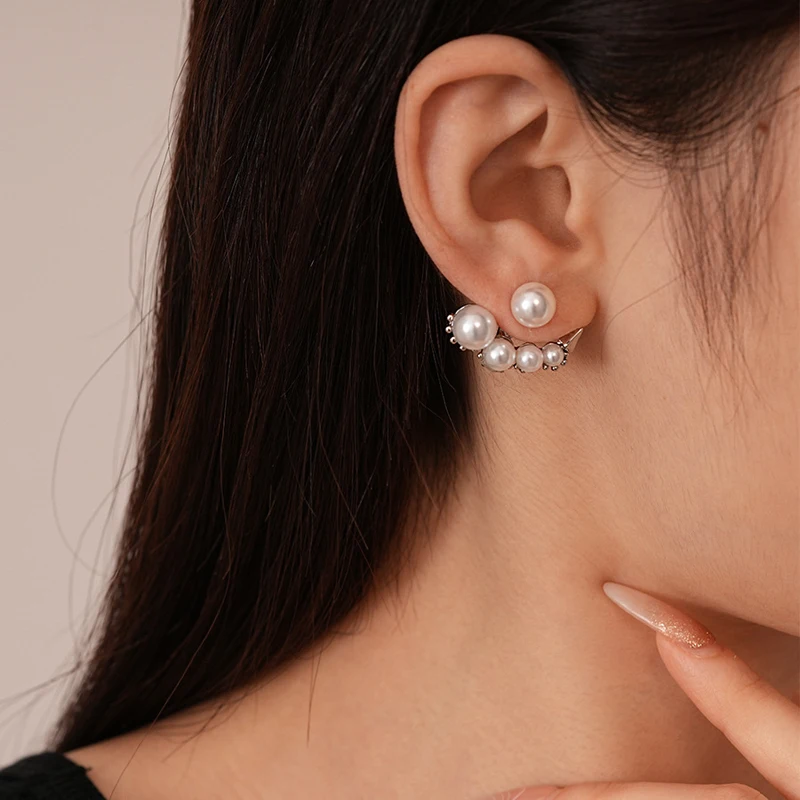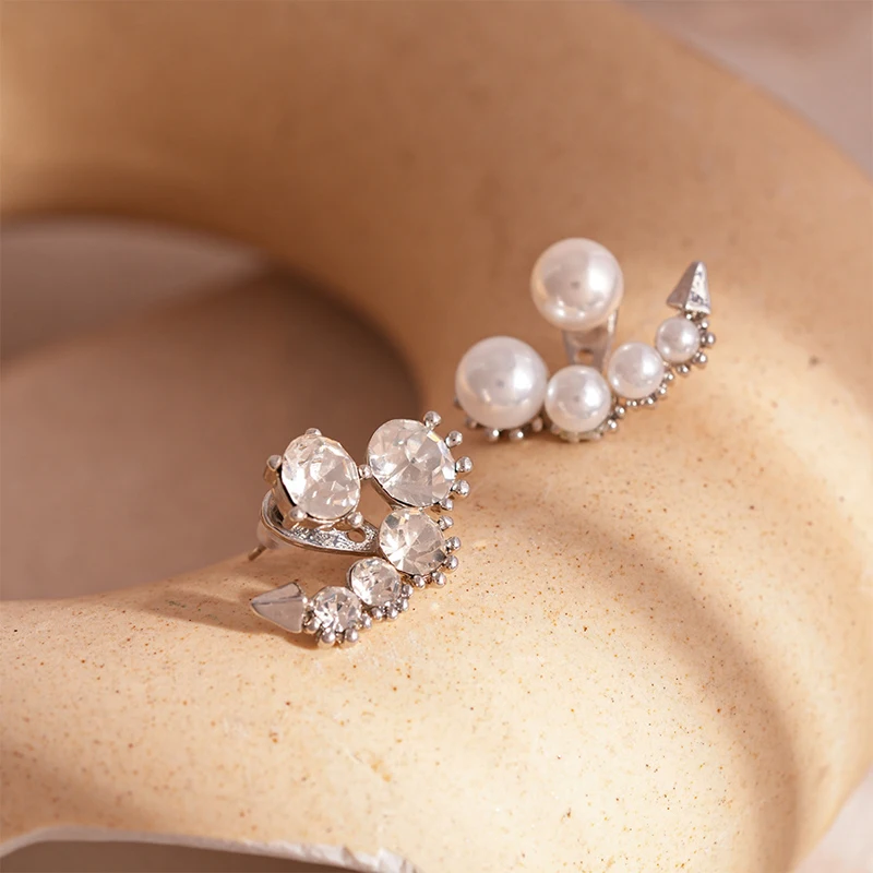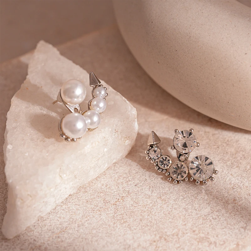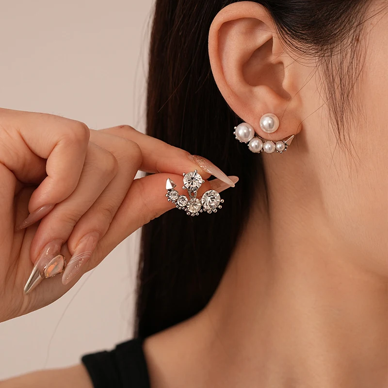 Luxury Imitation Pearl Cluster Stud Earrings Fashion Set Cubic Zirconia Asymmetrical Earrings Two Wear Charms Earrings Jewelry