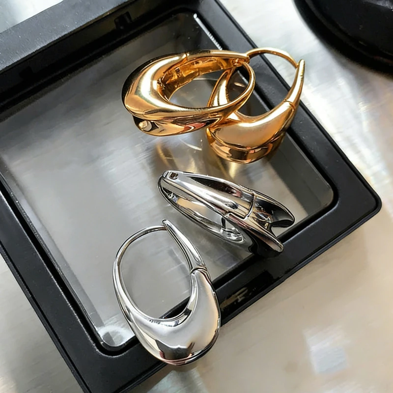 Luxury Metal U-Shaped Hoop Earrings for Women Retro Gold Color Water Drop Hollow Circle Ear Buckle Earrings Party Jewelry Gifts