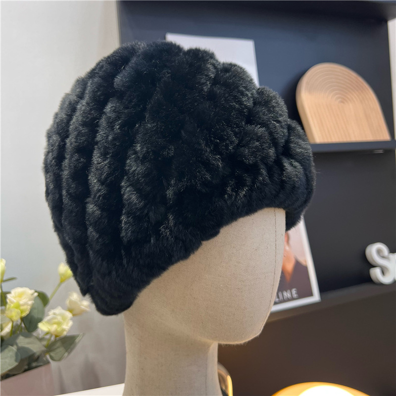 Luxury Rex Rabbit Fur Russian Ushanka – Women’s Winter Warm Knitted Hat, Natural Soft Real Fur Cossack Cap