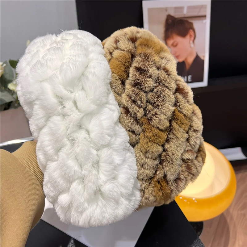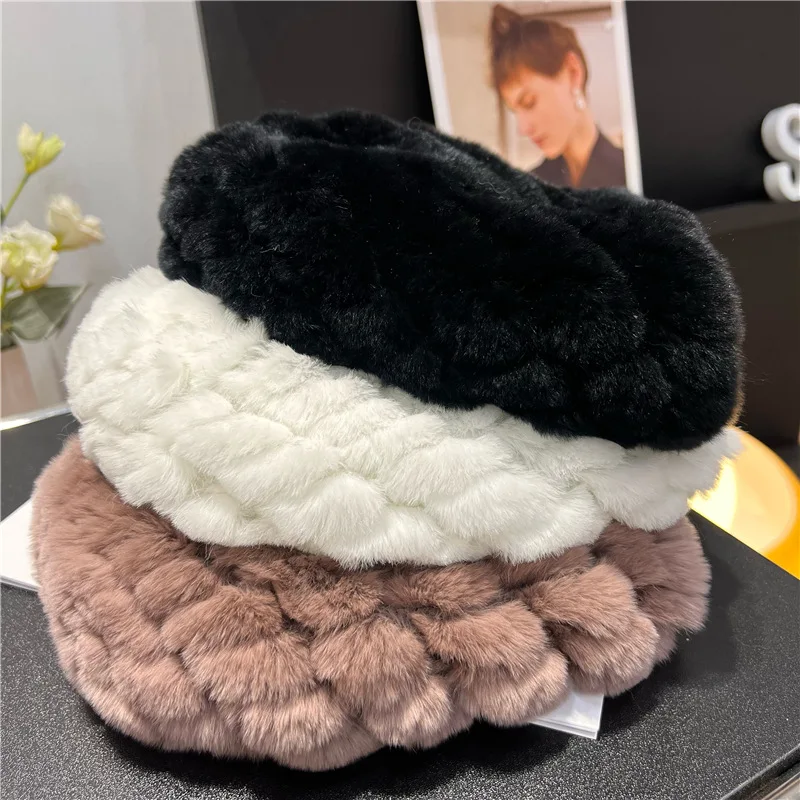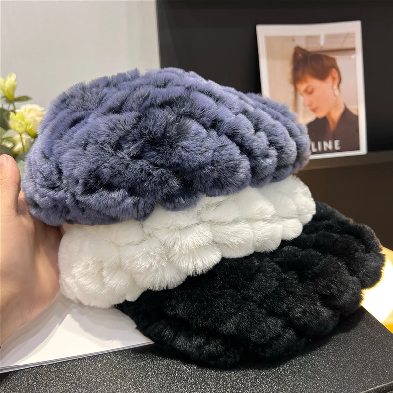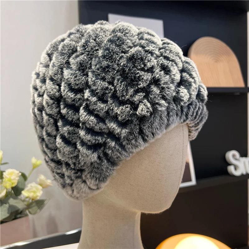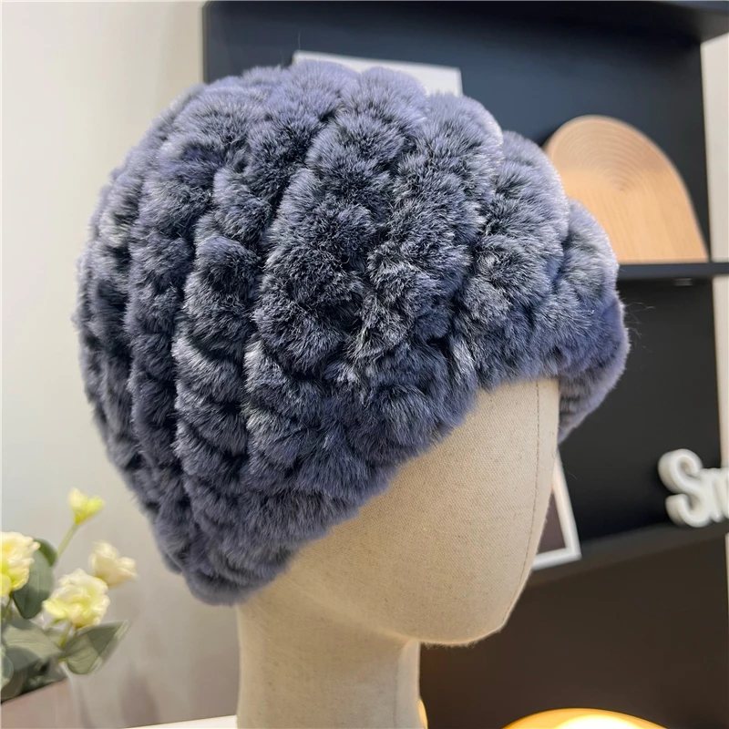 Luxury Rex Rabbit Fur Russian Ushanka – Women’s Winter Warm Knitted Hat, Natural Soft Real Fur Cossack Cap