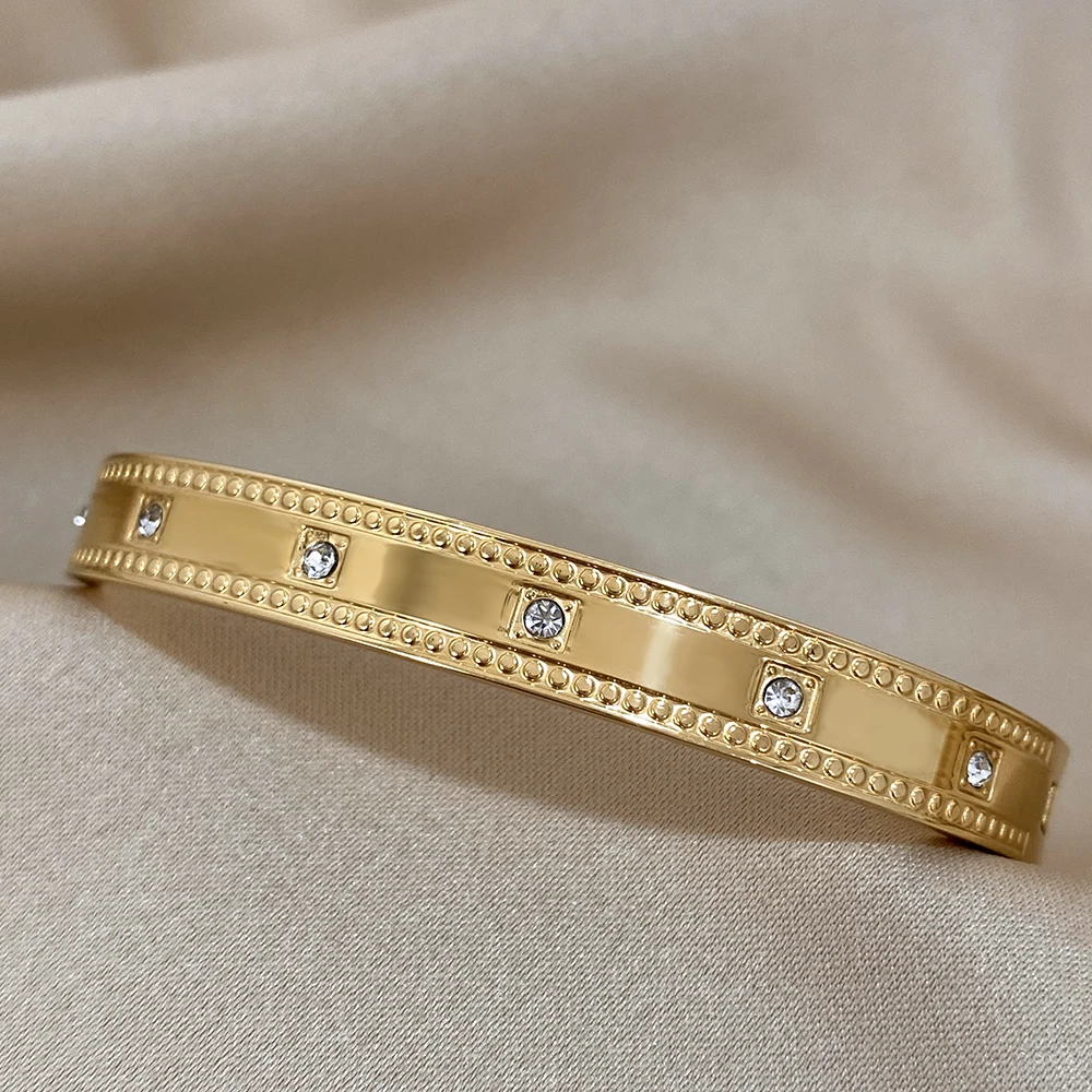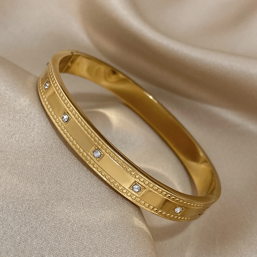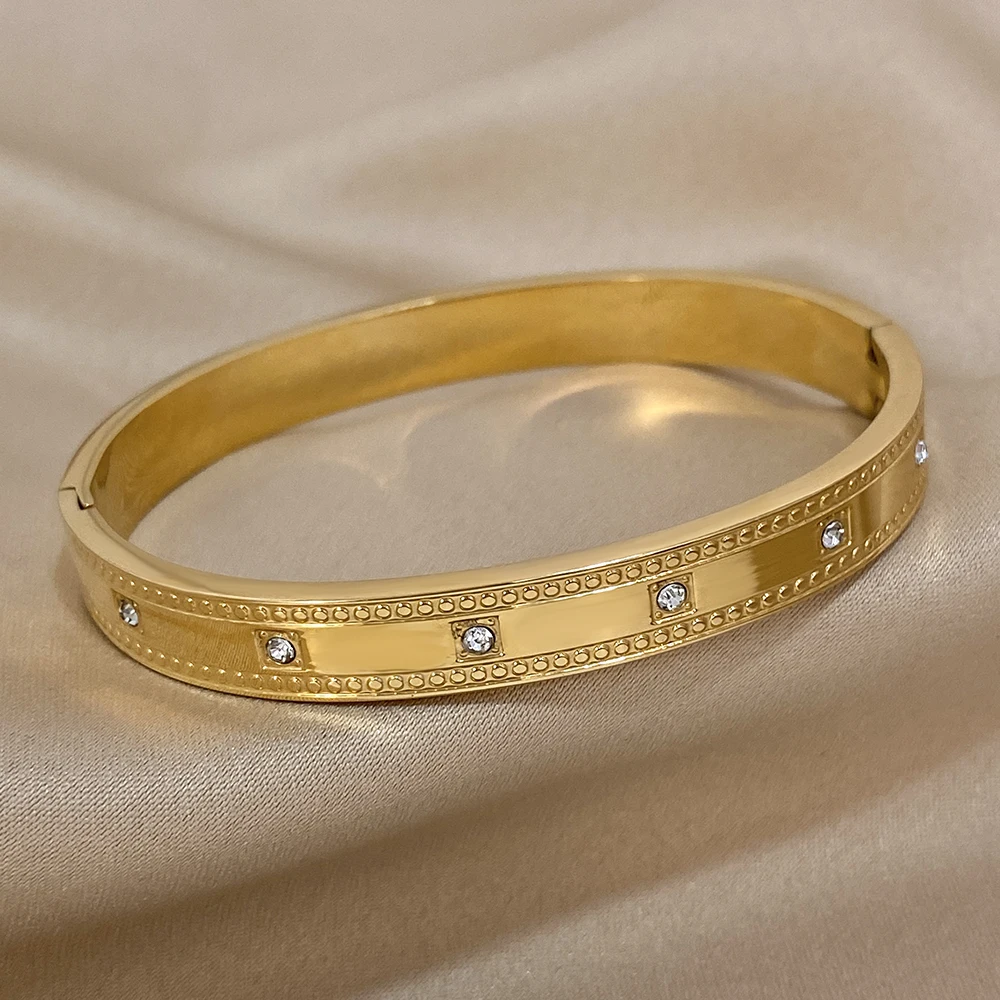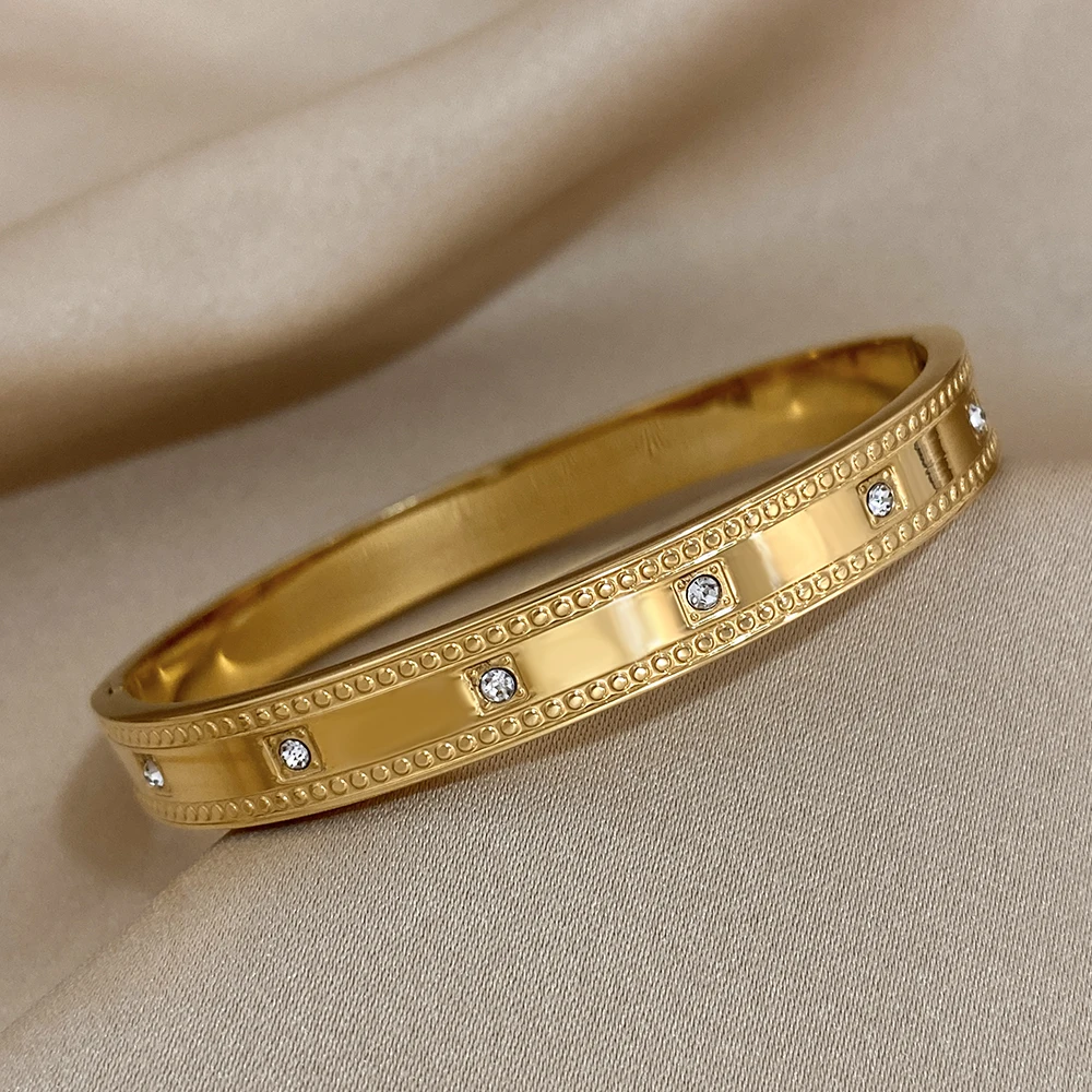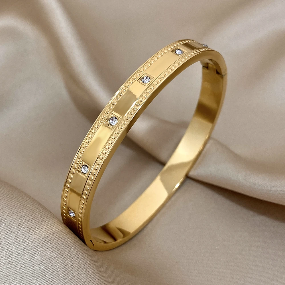 Luxury Rhinestone Stainless Steel Bracelet for Women Fashion Glossy 18K Gold Plated Cuff Bangle Bracelets Waterproof Jewelry