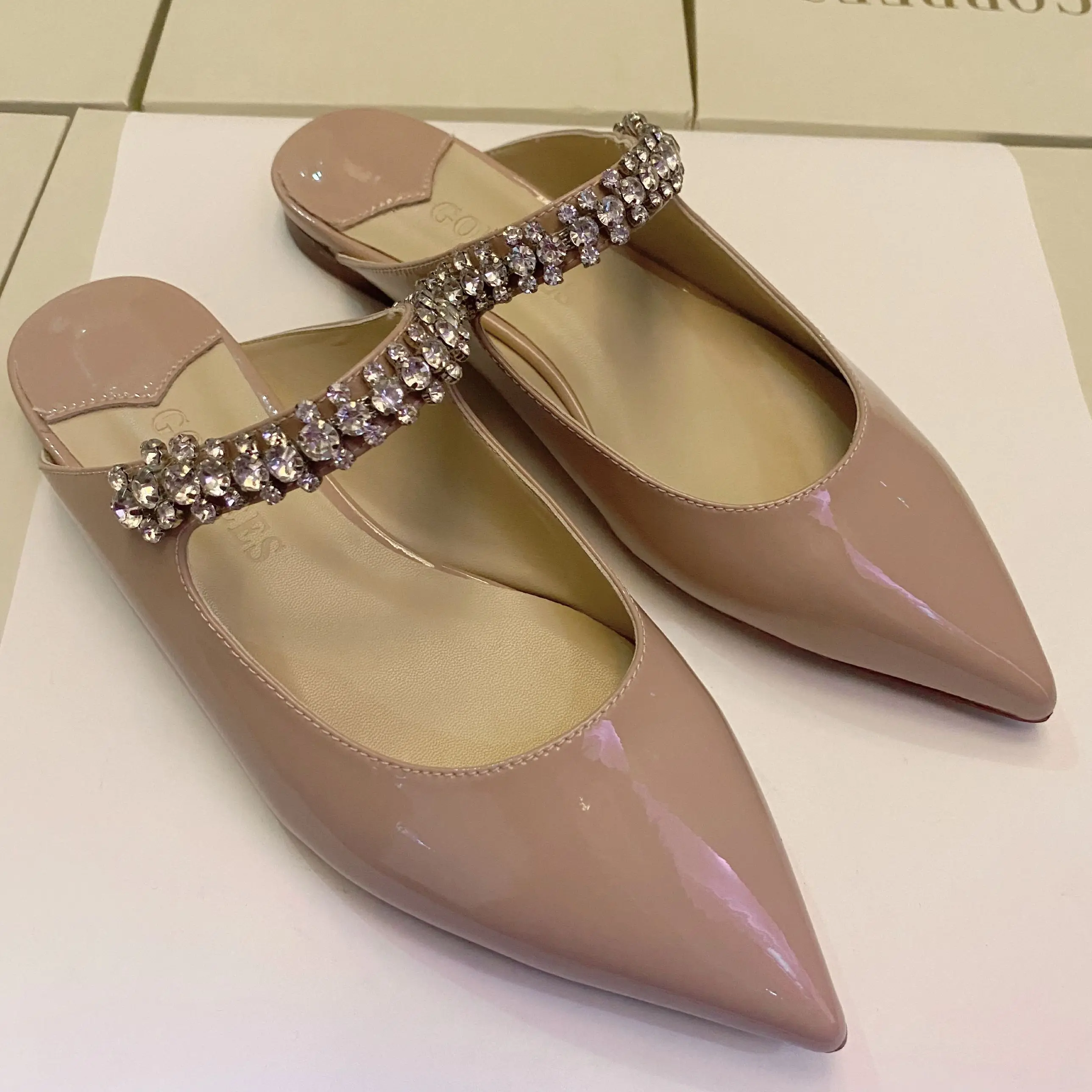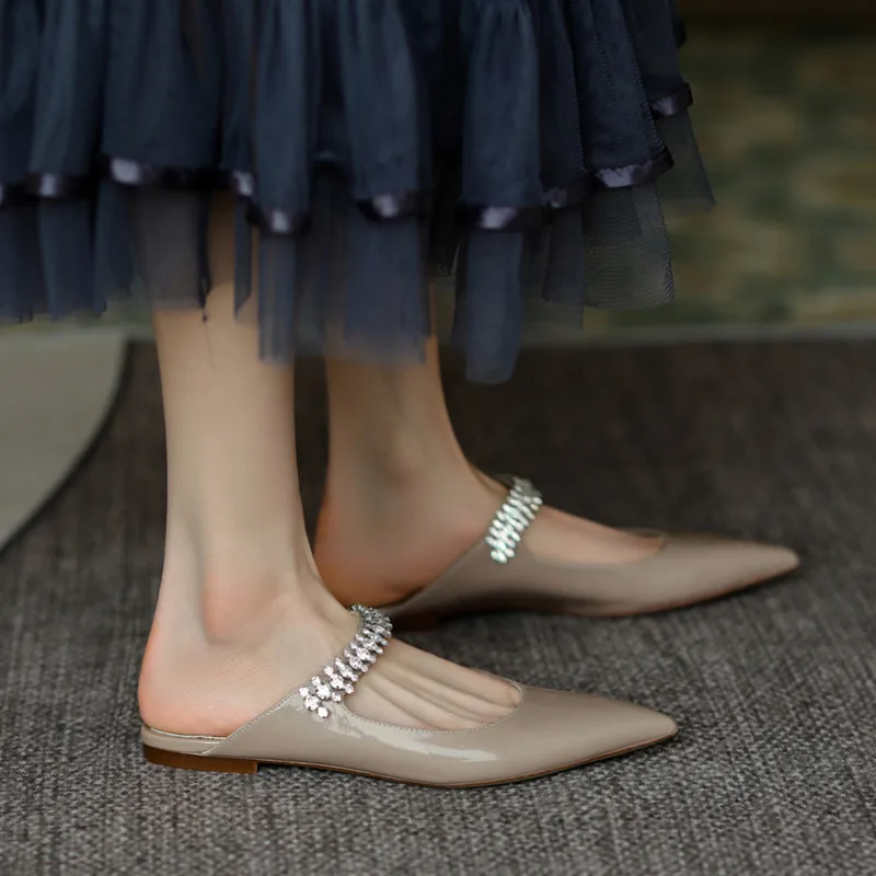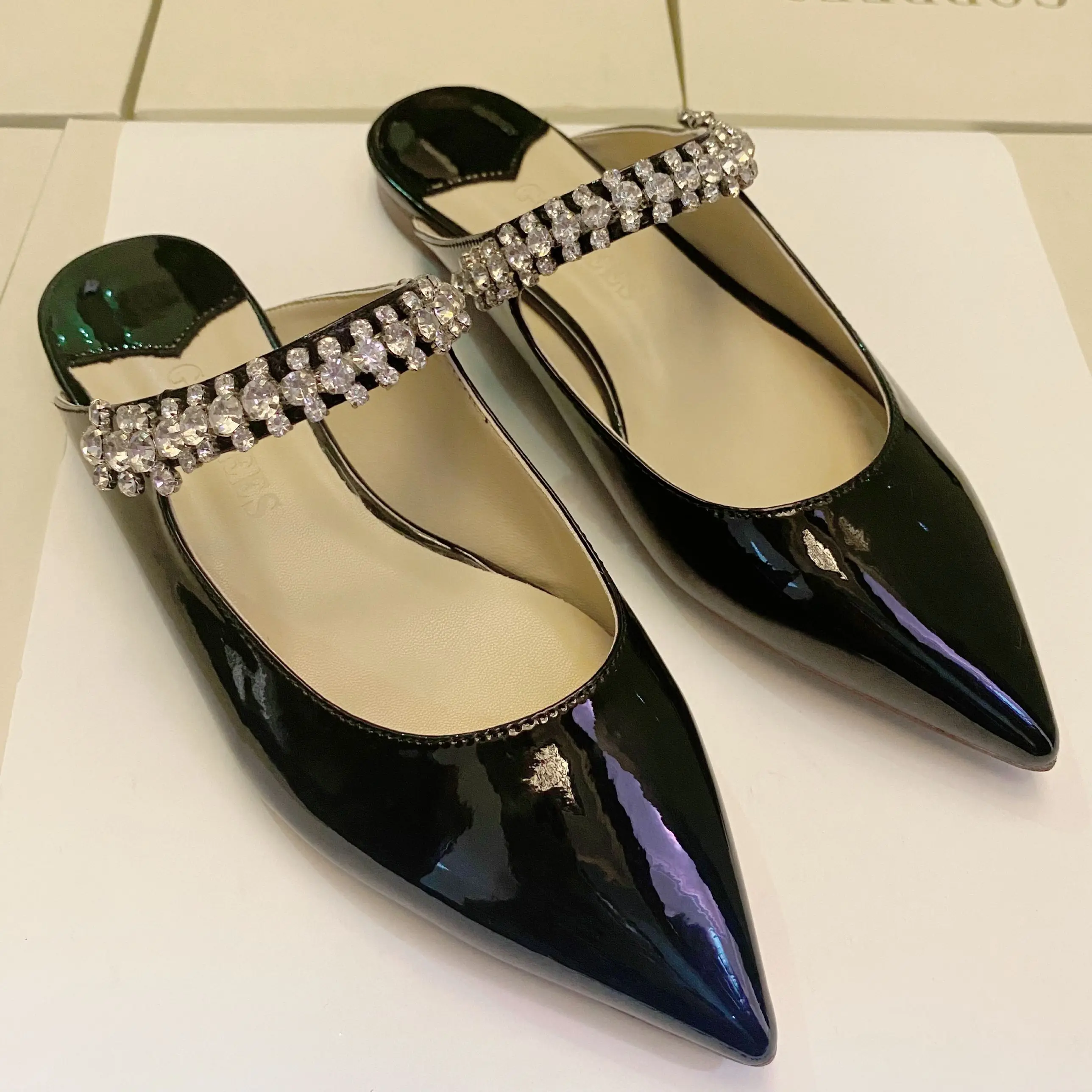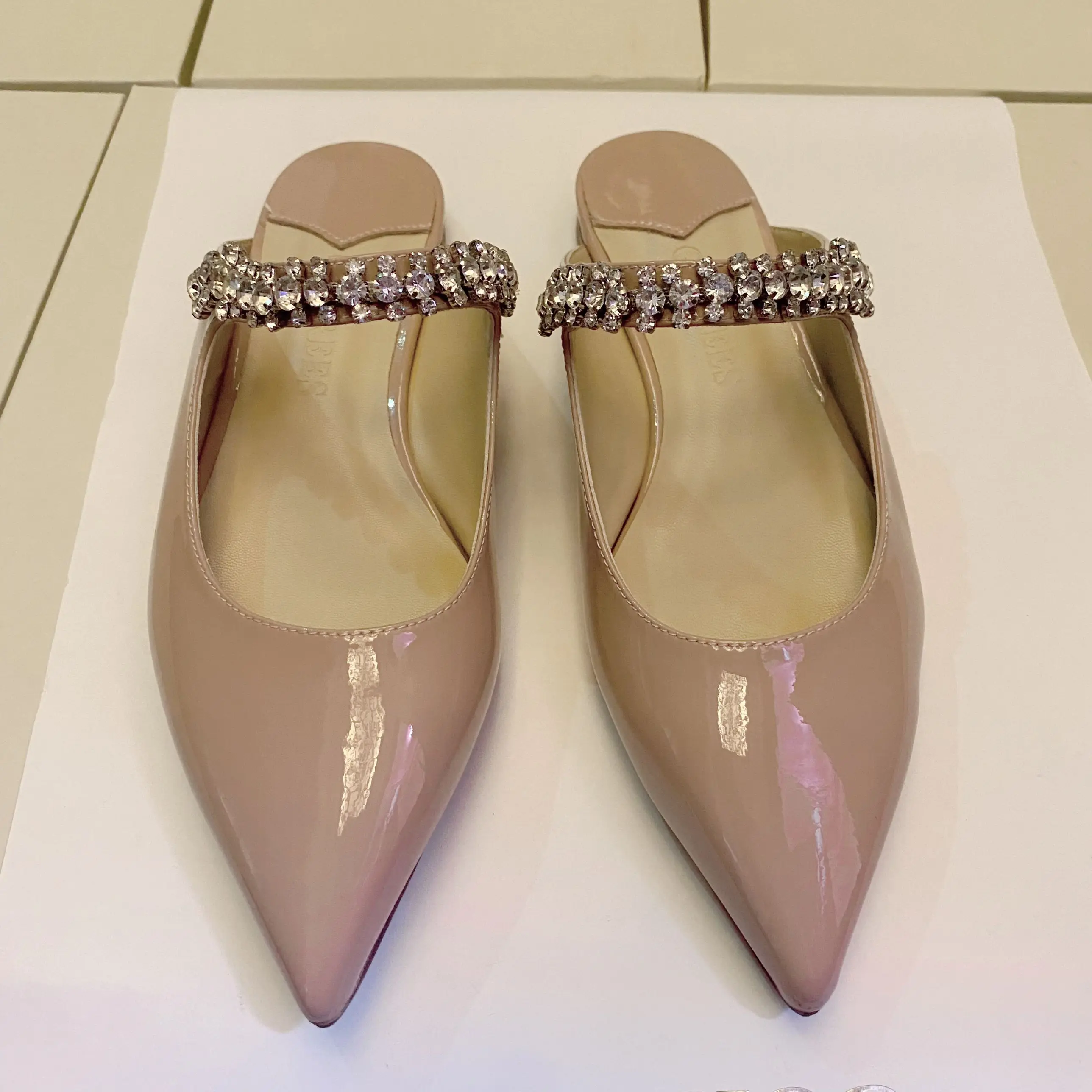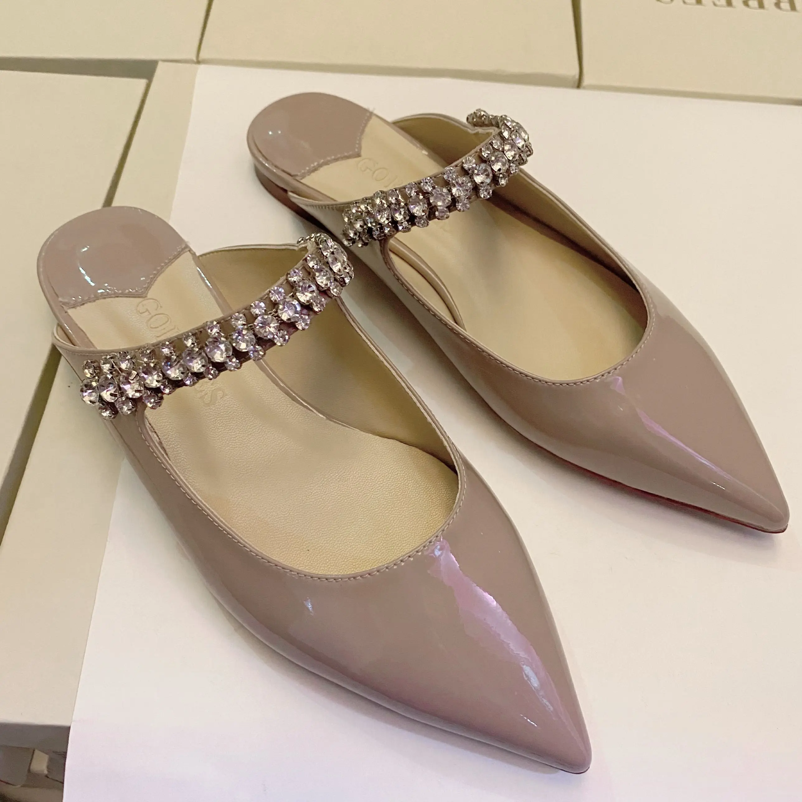 luxury women’s shoes 2024 New Luxury Brand Women’s Sandals Leather Pointed Toe Diamon Casual Outdoor Crystal Female Slip-On Soli