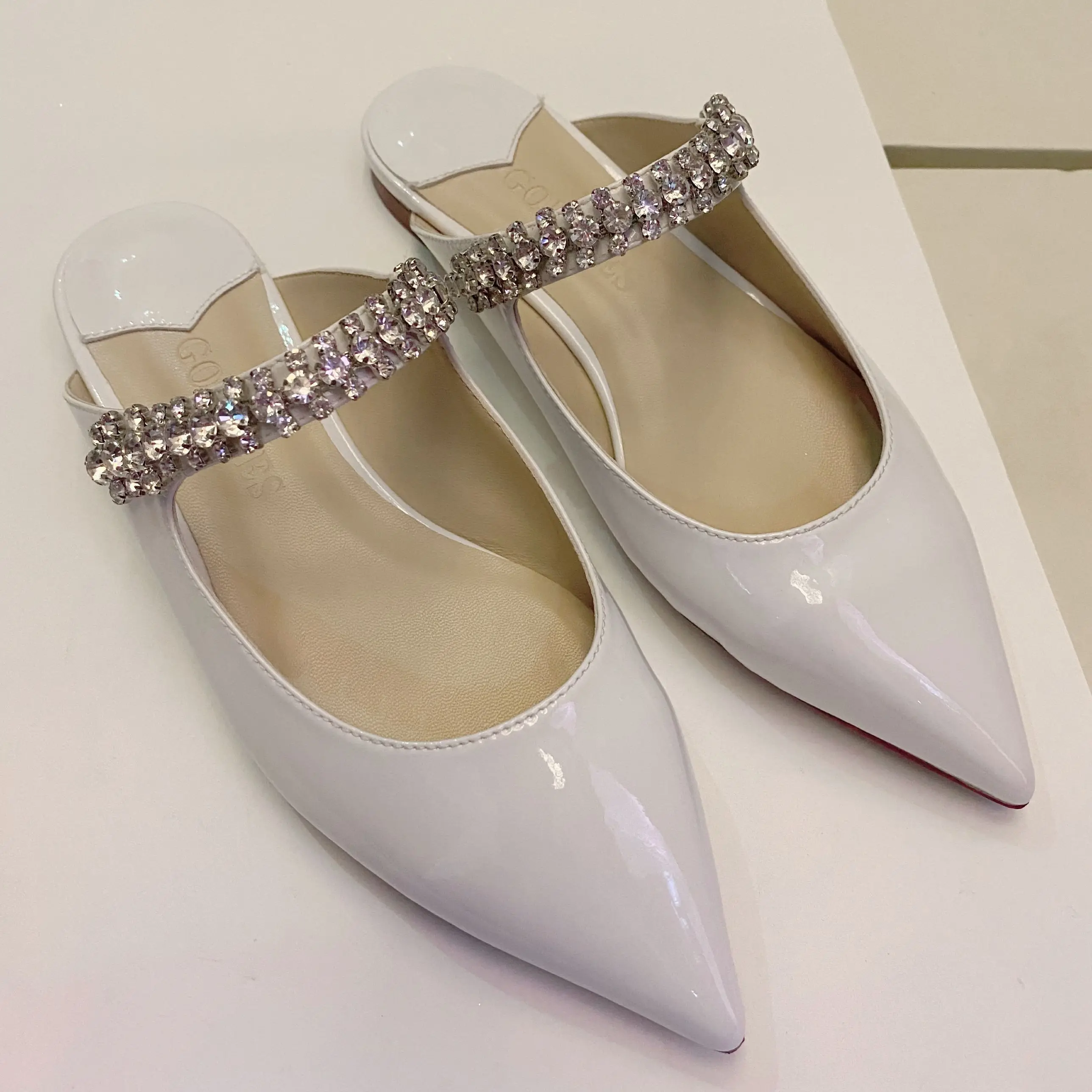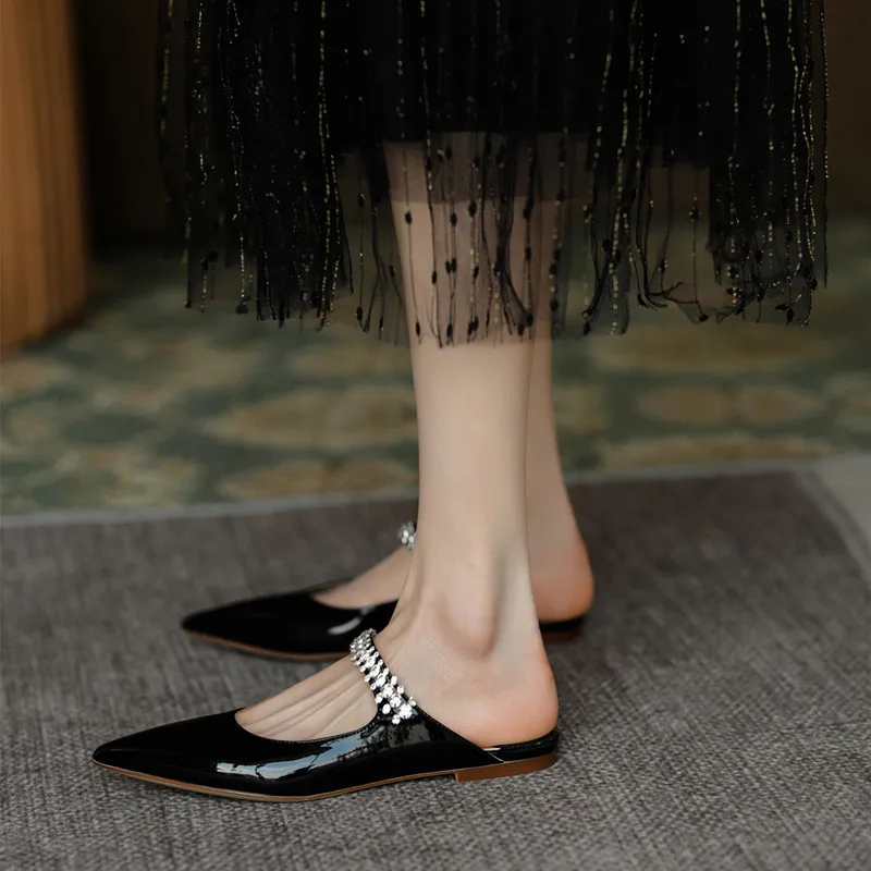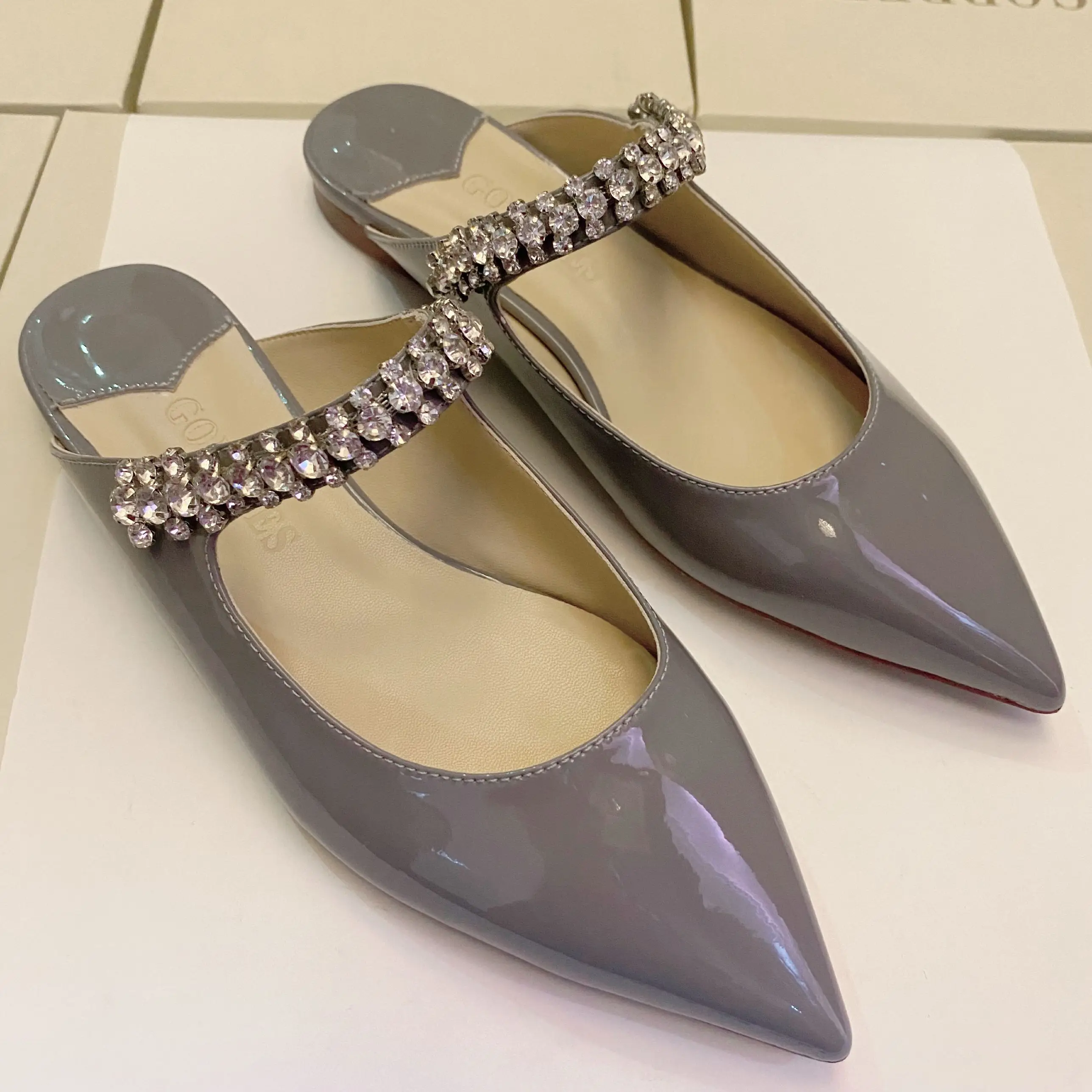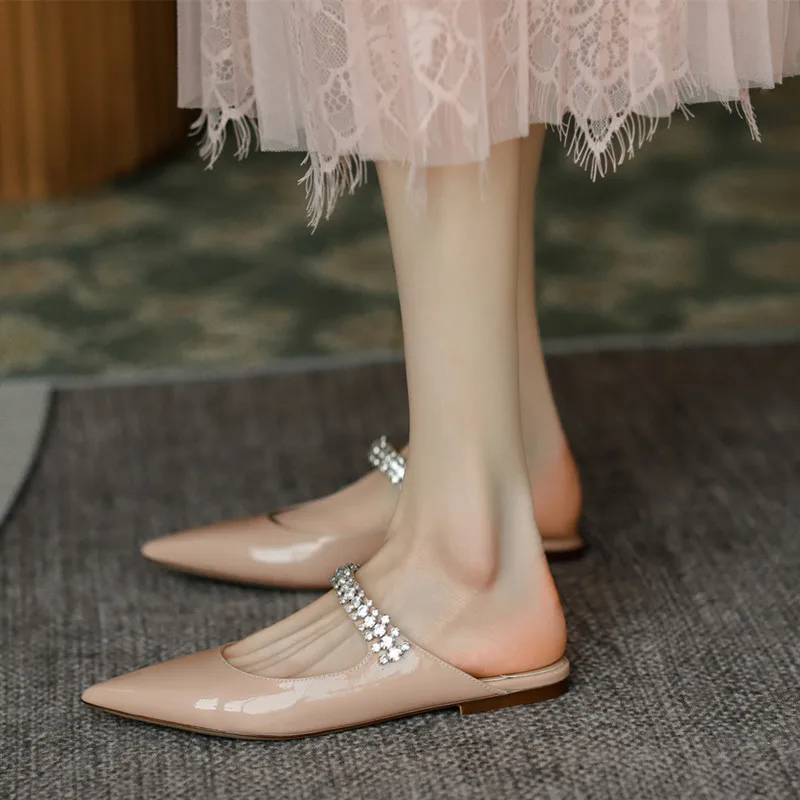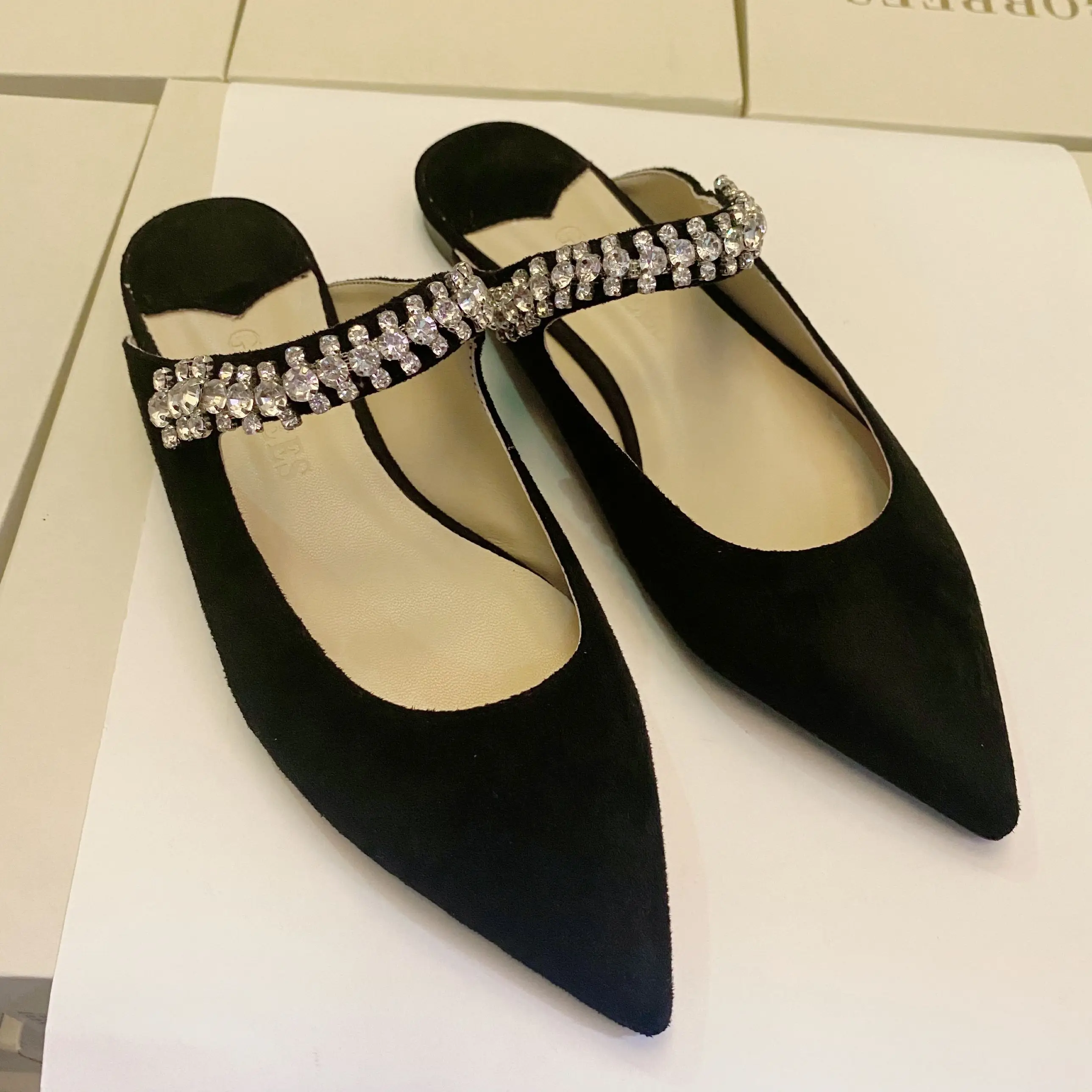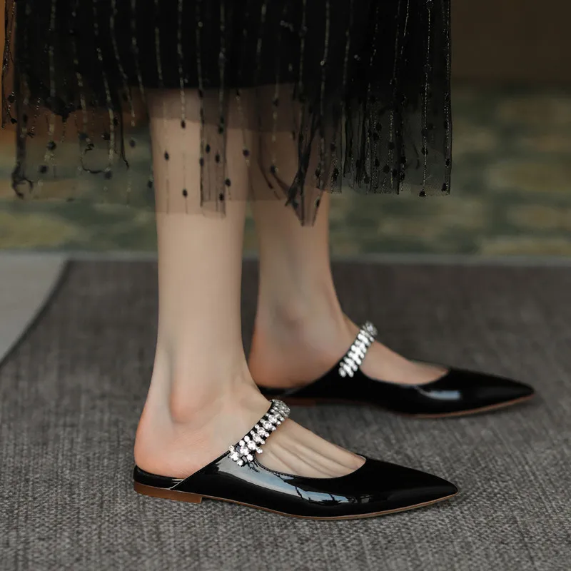 luxury women’s shoes 2024 New Luxury Brand Women’s Sandals Leather Pointed Toe Diamon Casual Outdoor Crystal Female Slip-On Soli