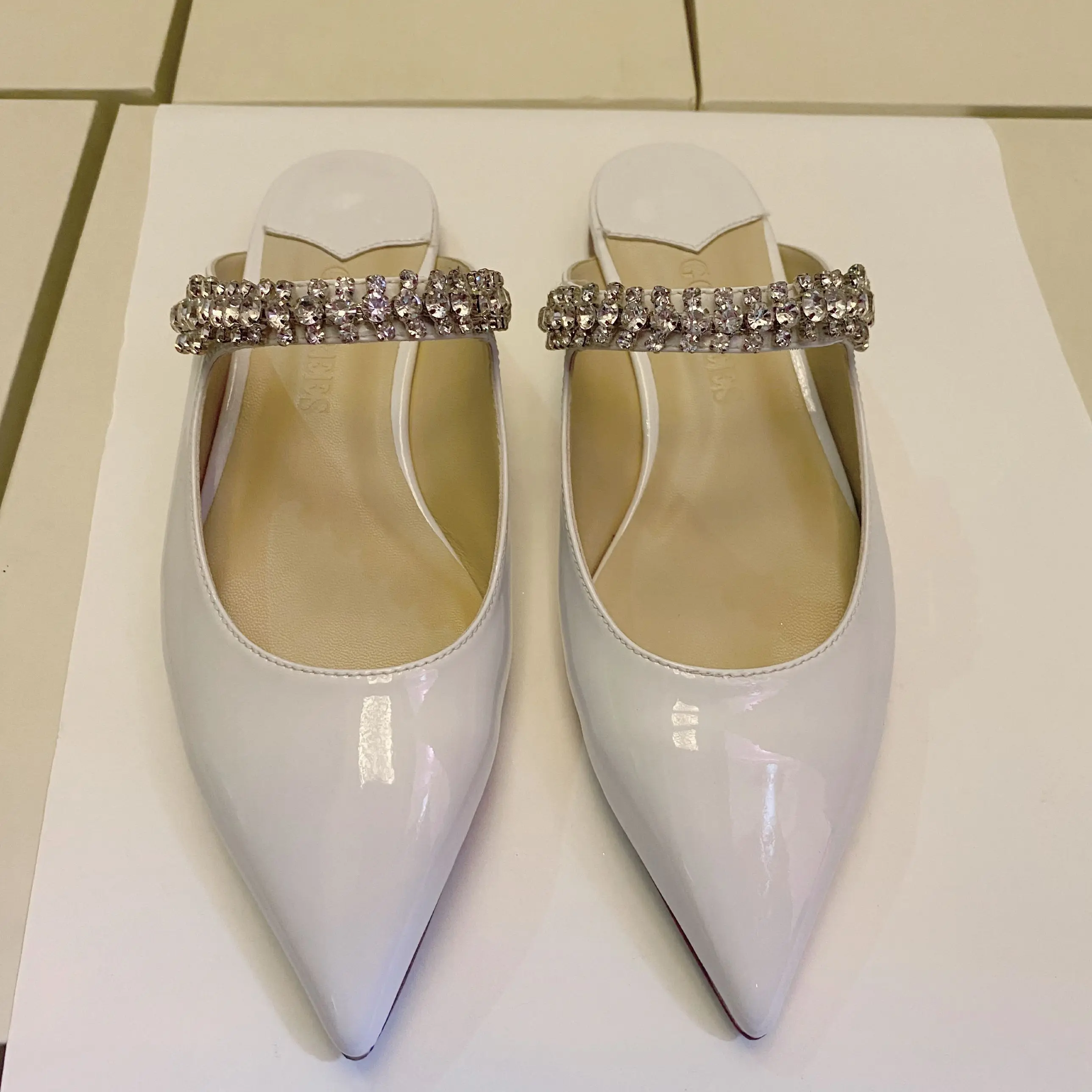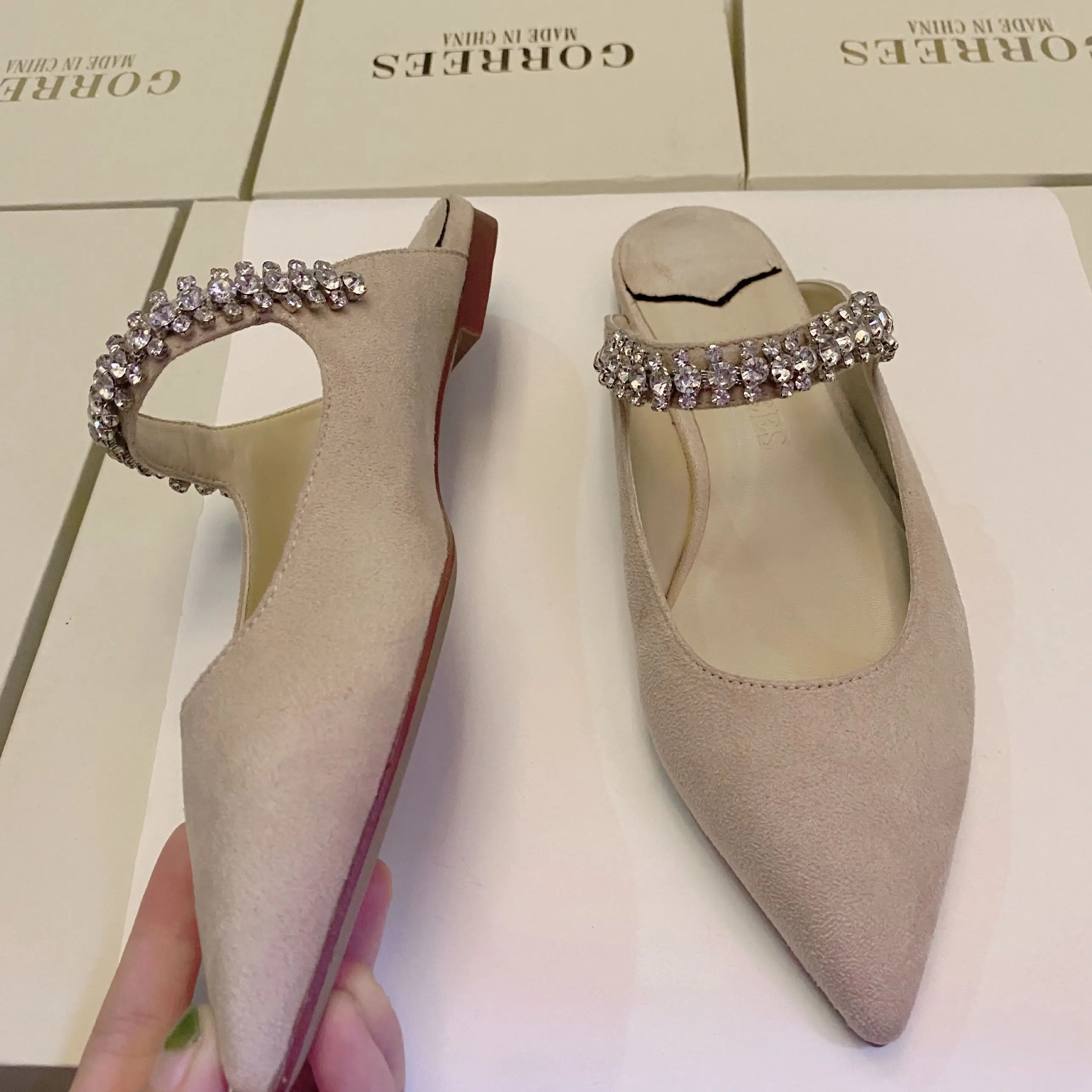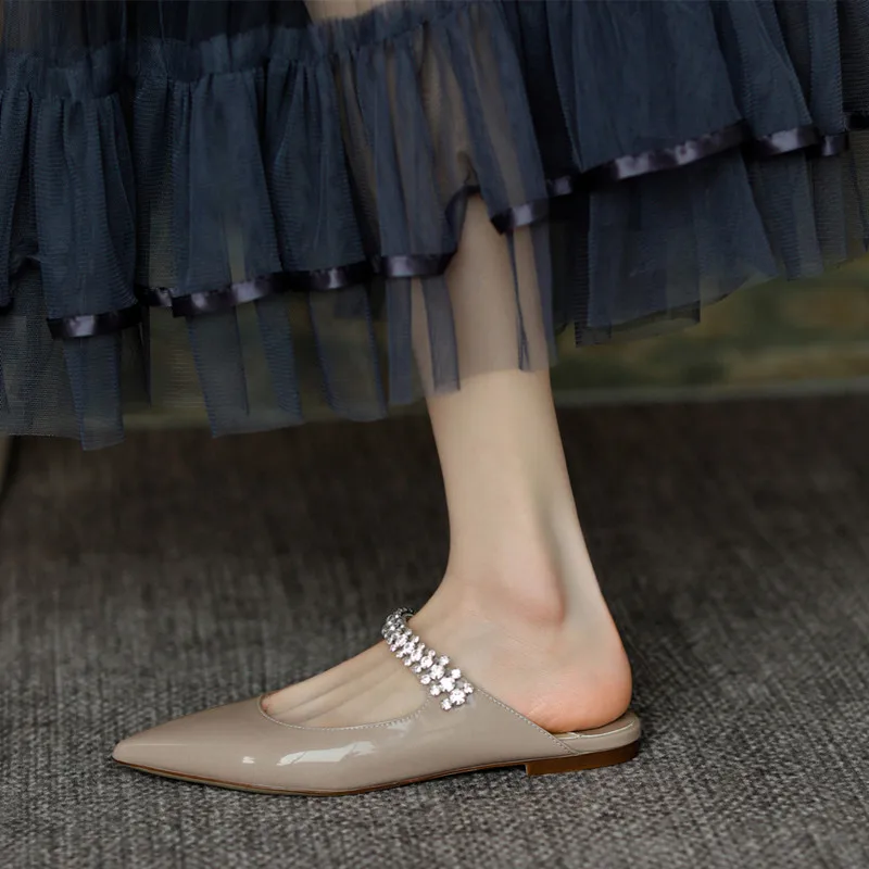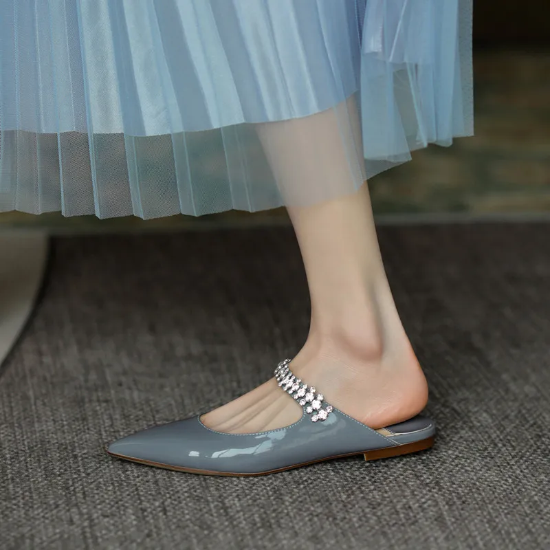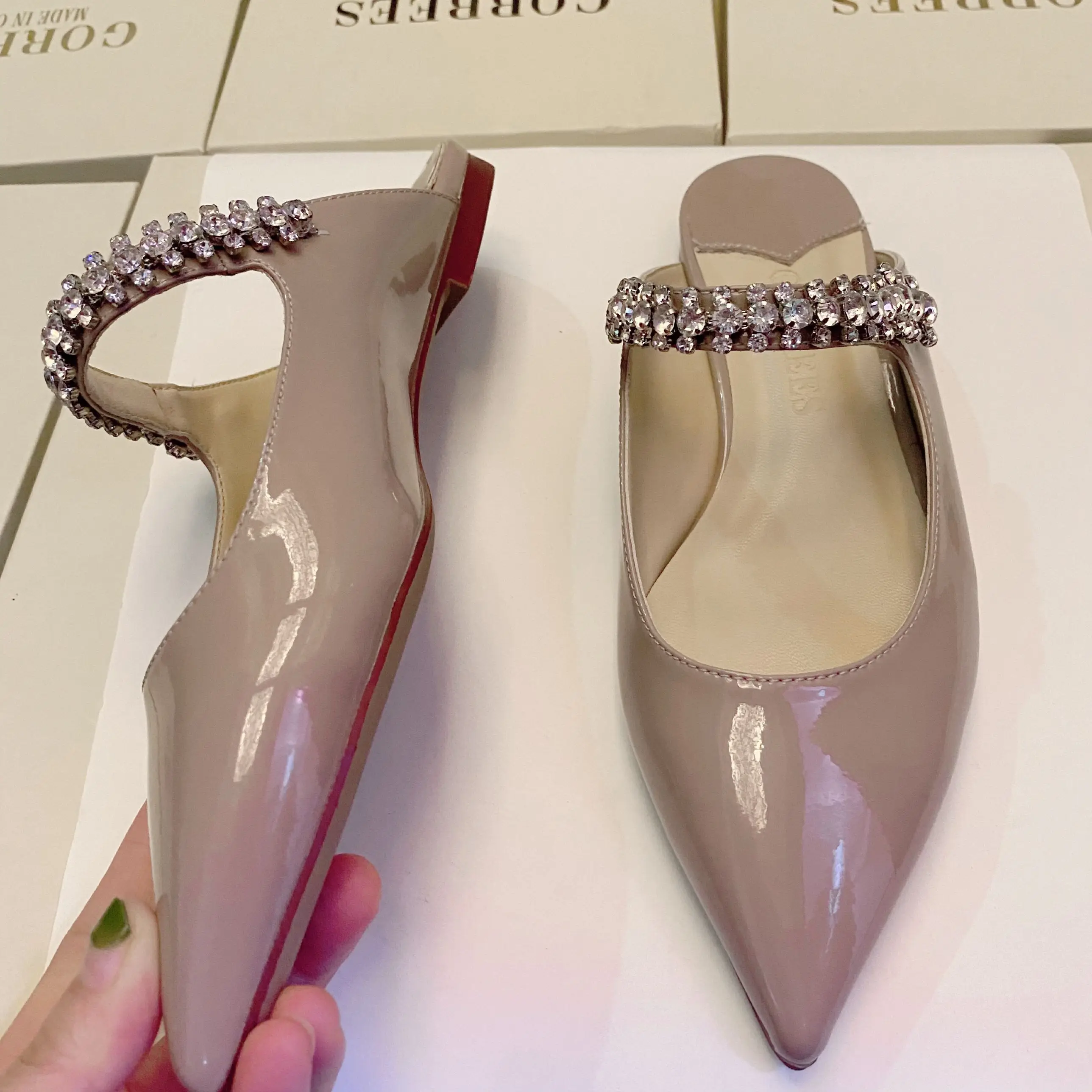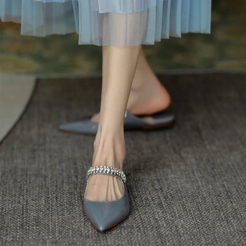 luxury women’s shoes 2024 New Luxury Brand Women’s Sandals Leather Pointed Toe Diamon Casual Outdoor Crystal Female Slip-On Soli