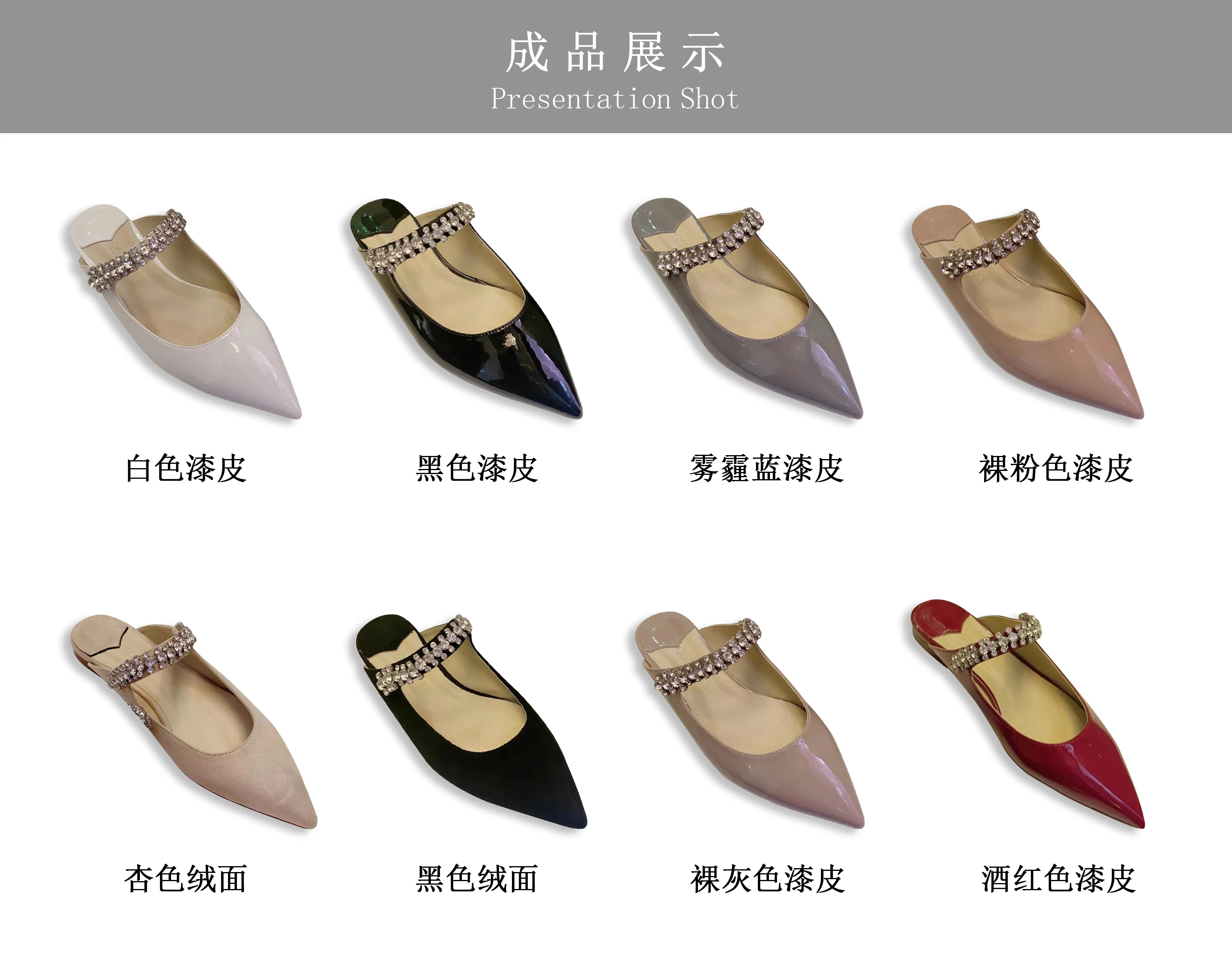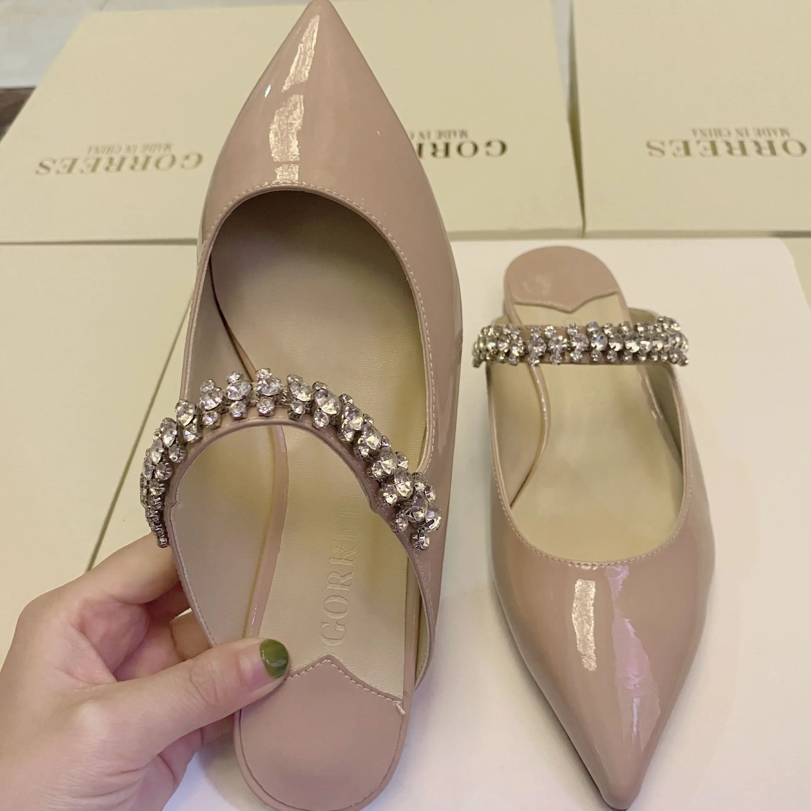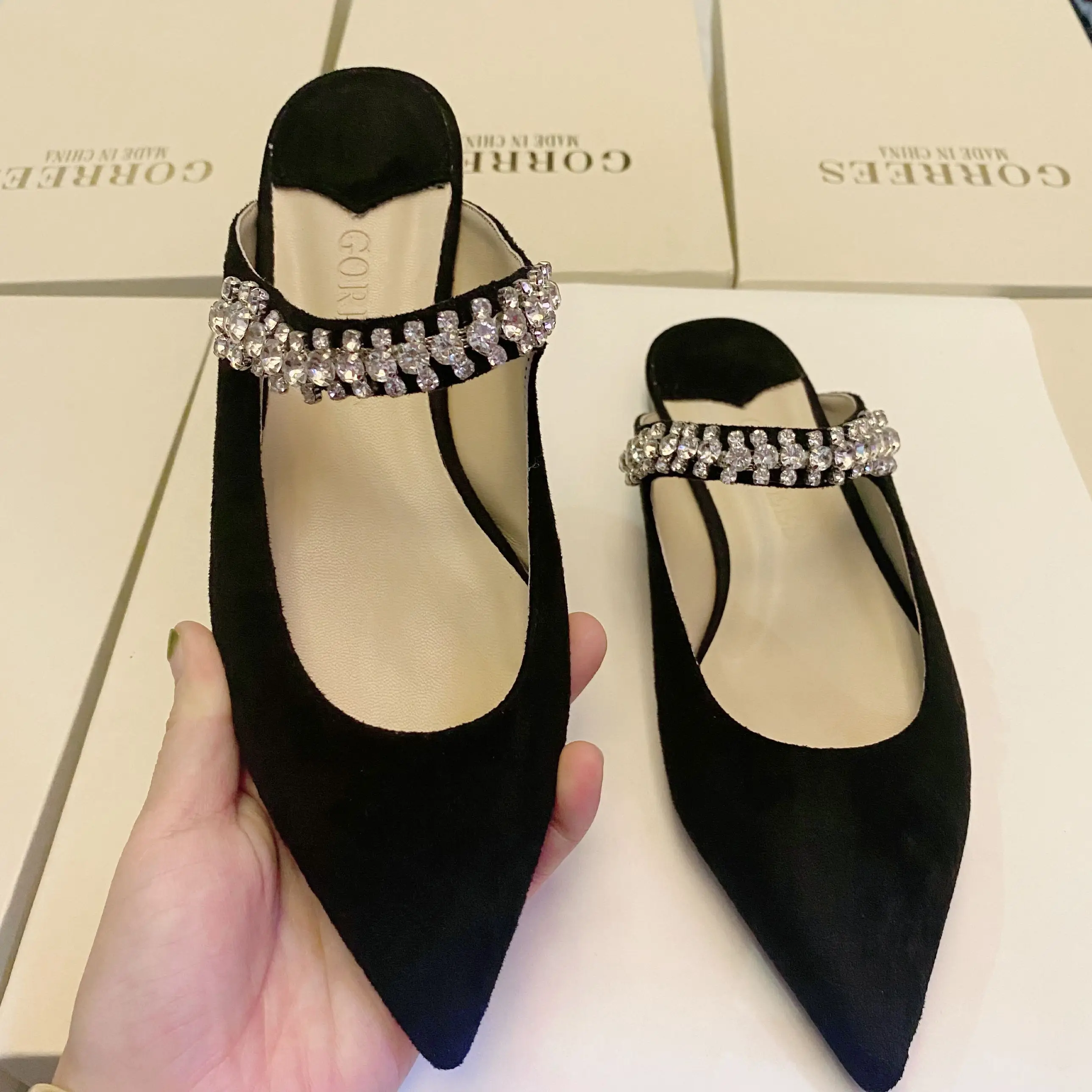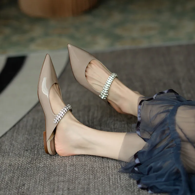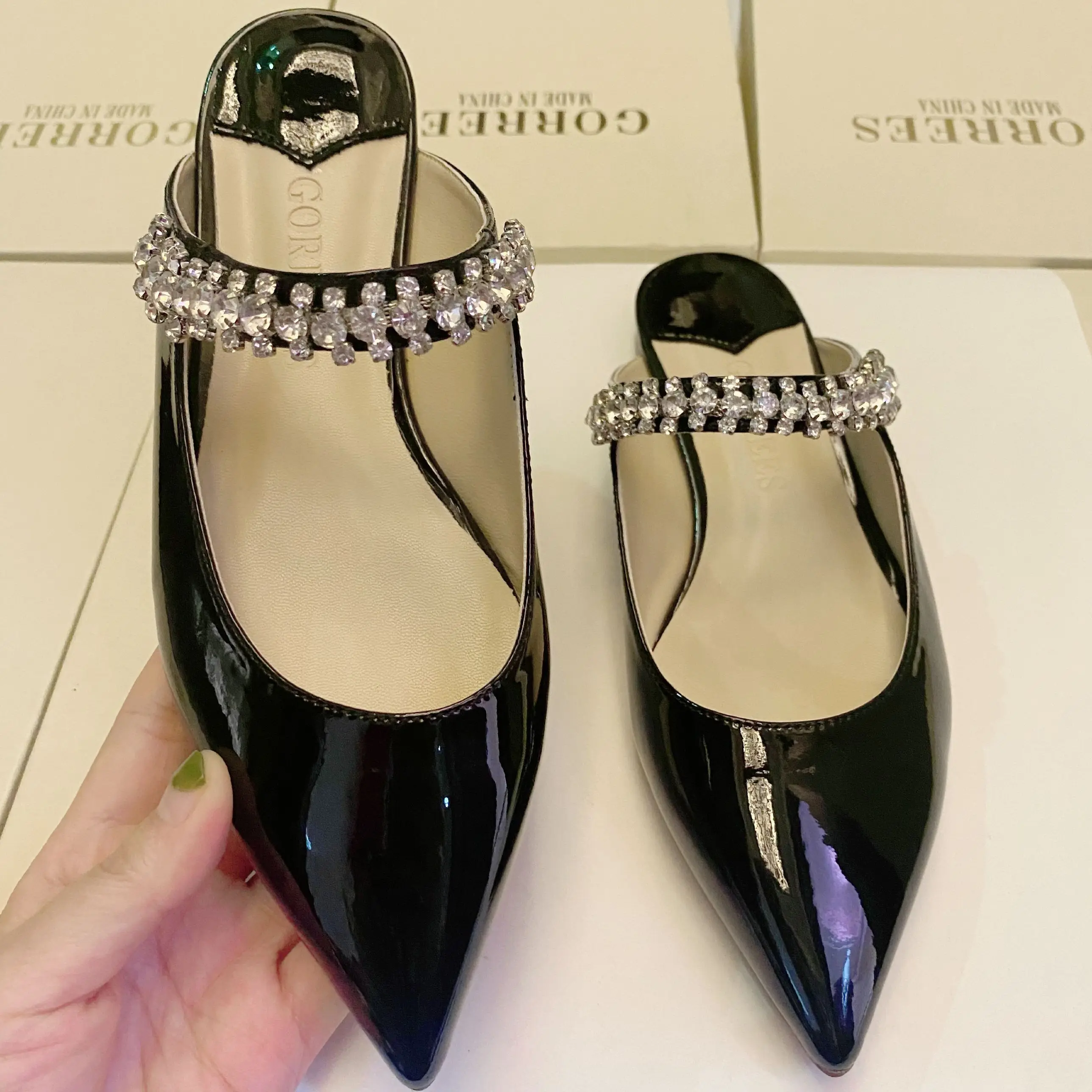 luxury women’s shoes 2024 New Luxury Brand Women’s Sandals Leather Pointed Toe Diamon Casual Outdoor Crystal Female Slip-On Soli