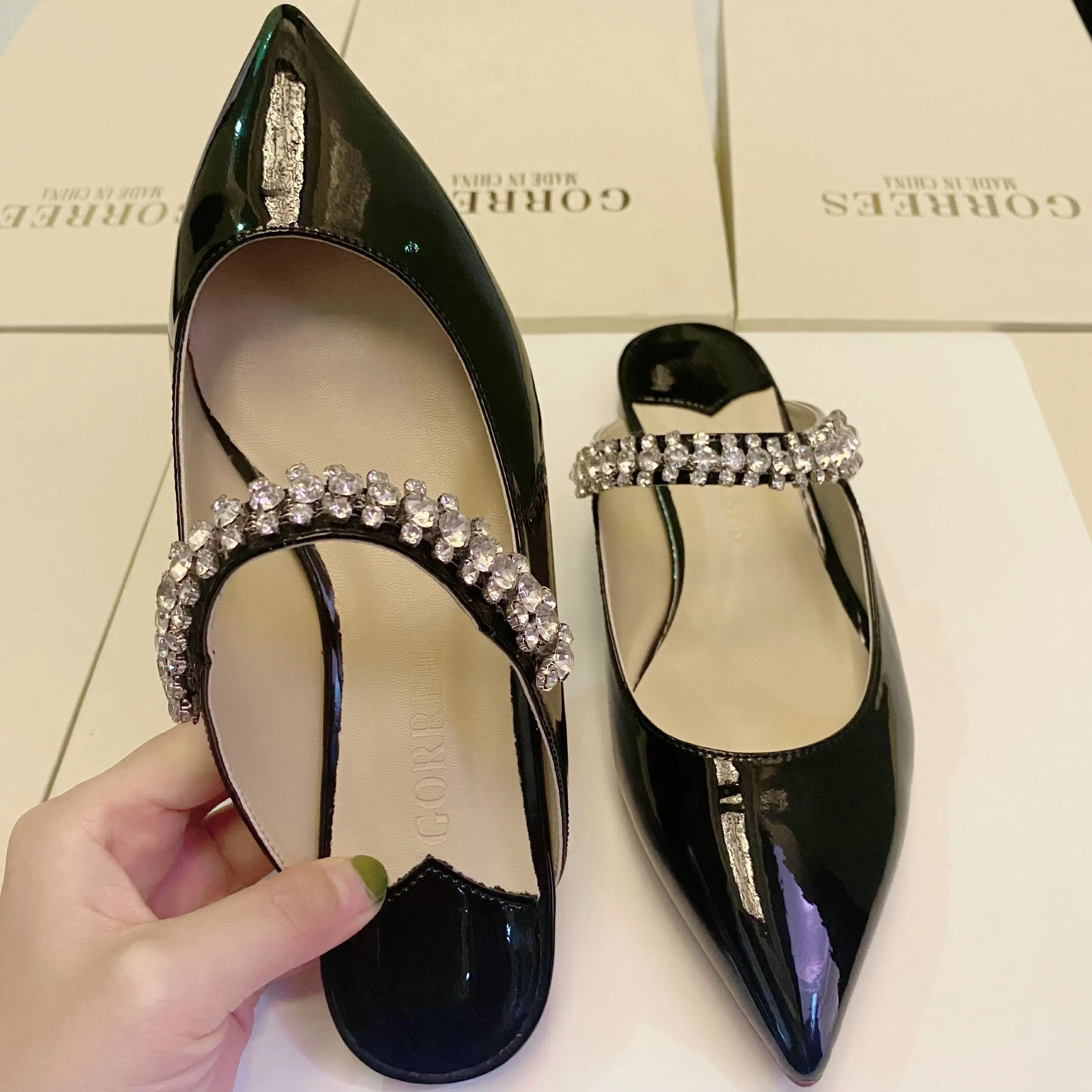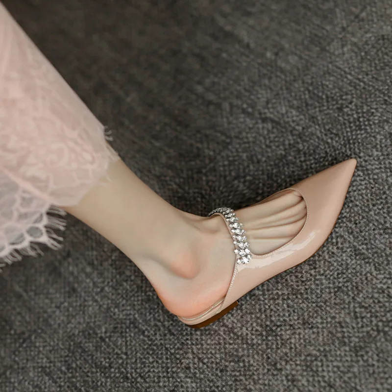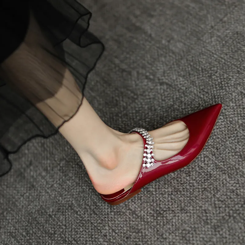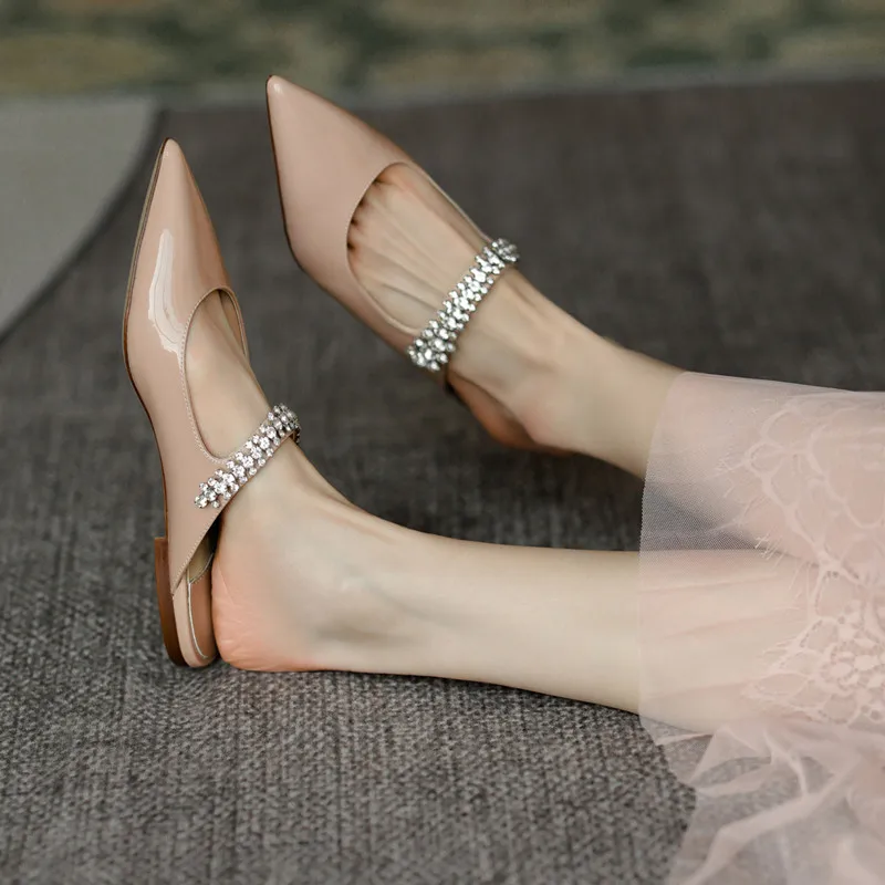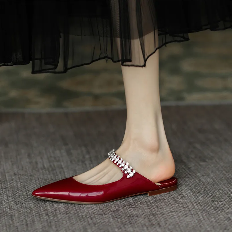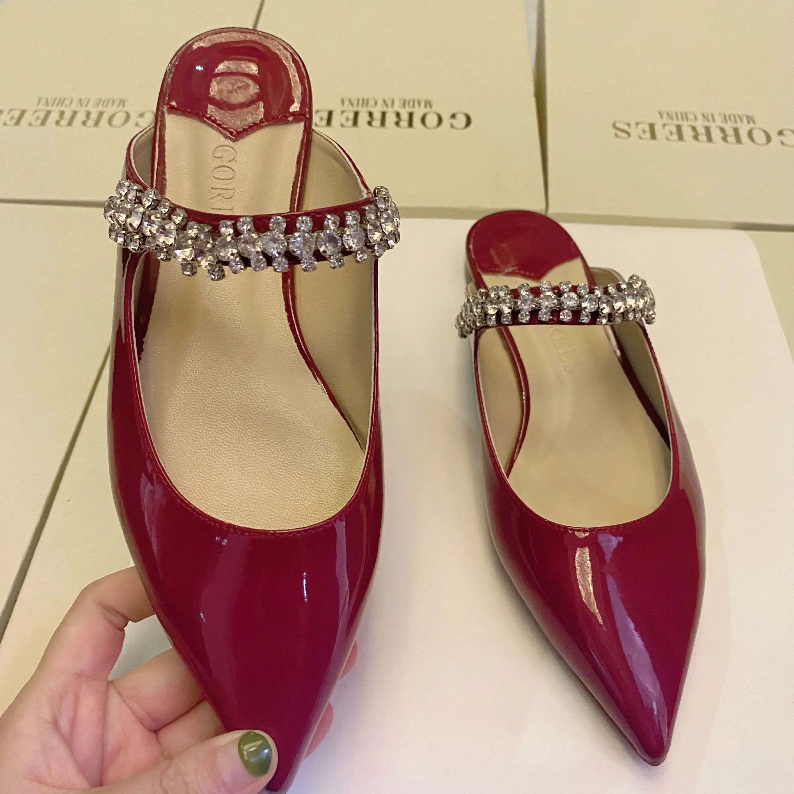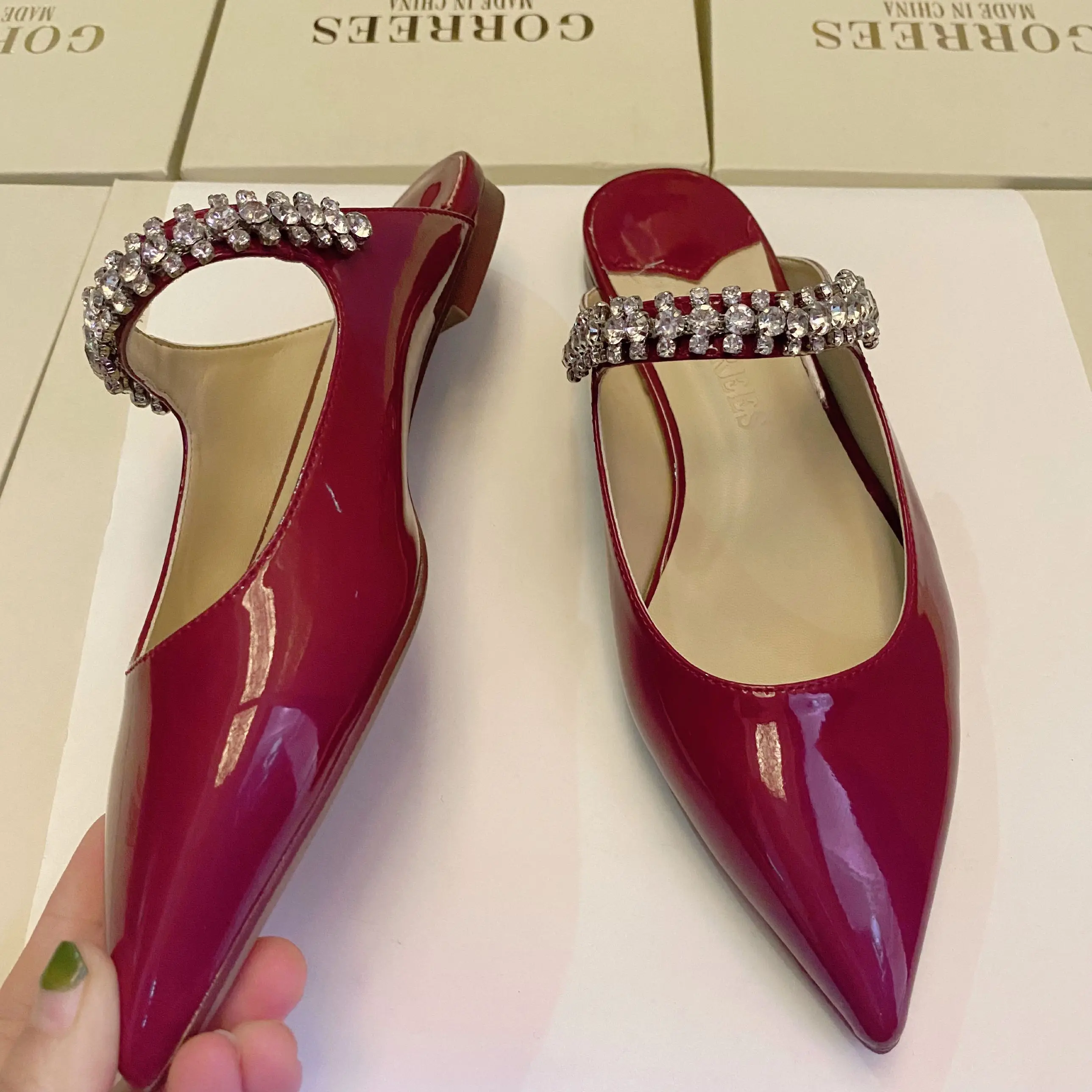 luxury women’s shoes 2024 New Luxury Brand Women’s Sandals Leather Pointed Toe Diamon Casual Outdoor Crystal Female Slip-On Soli