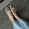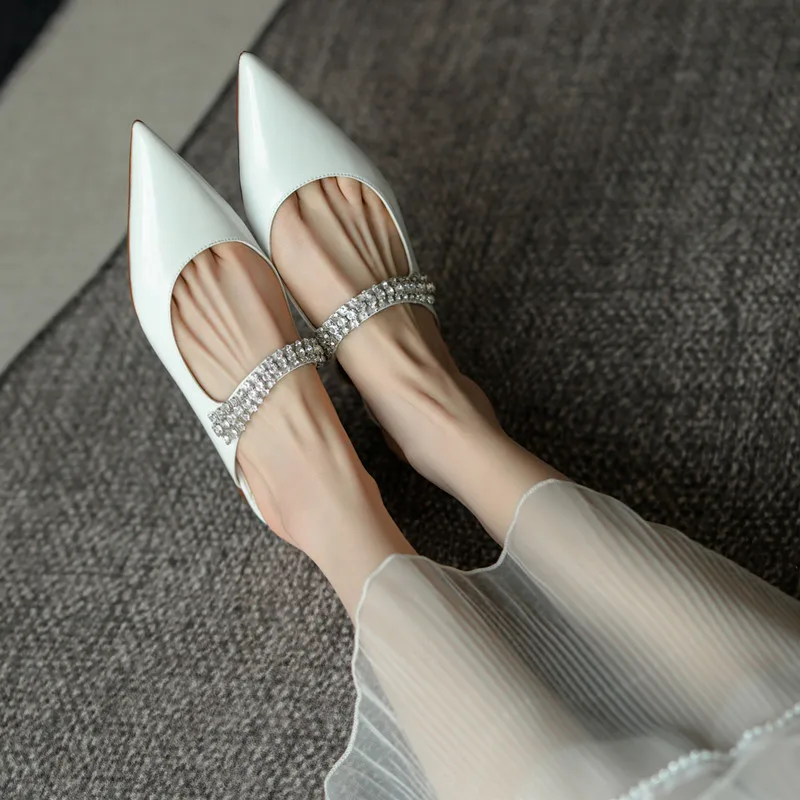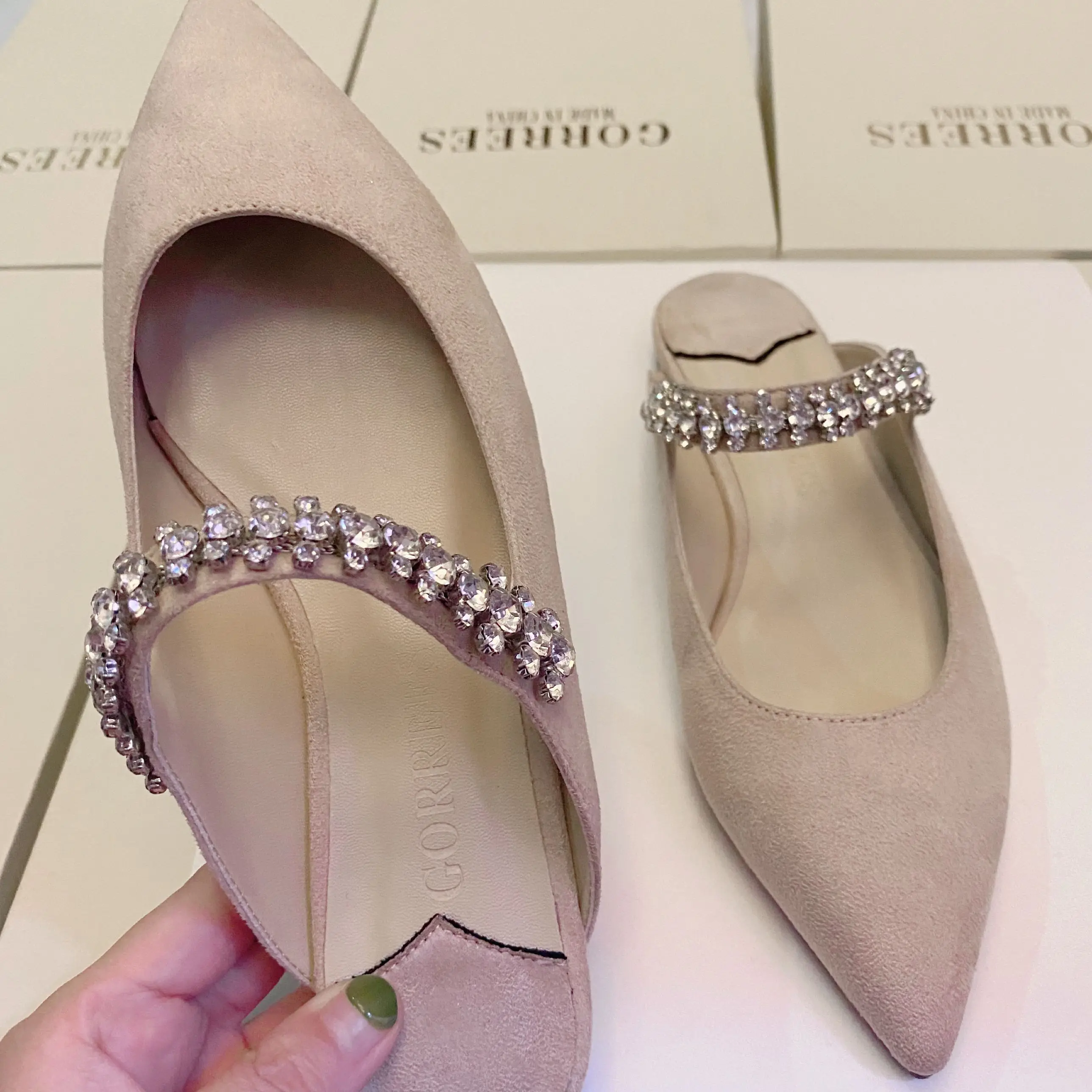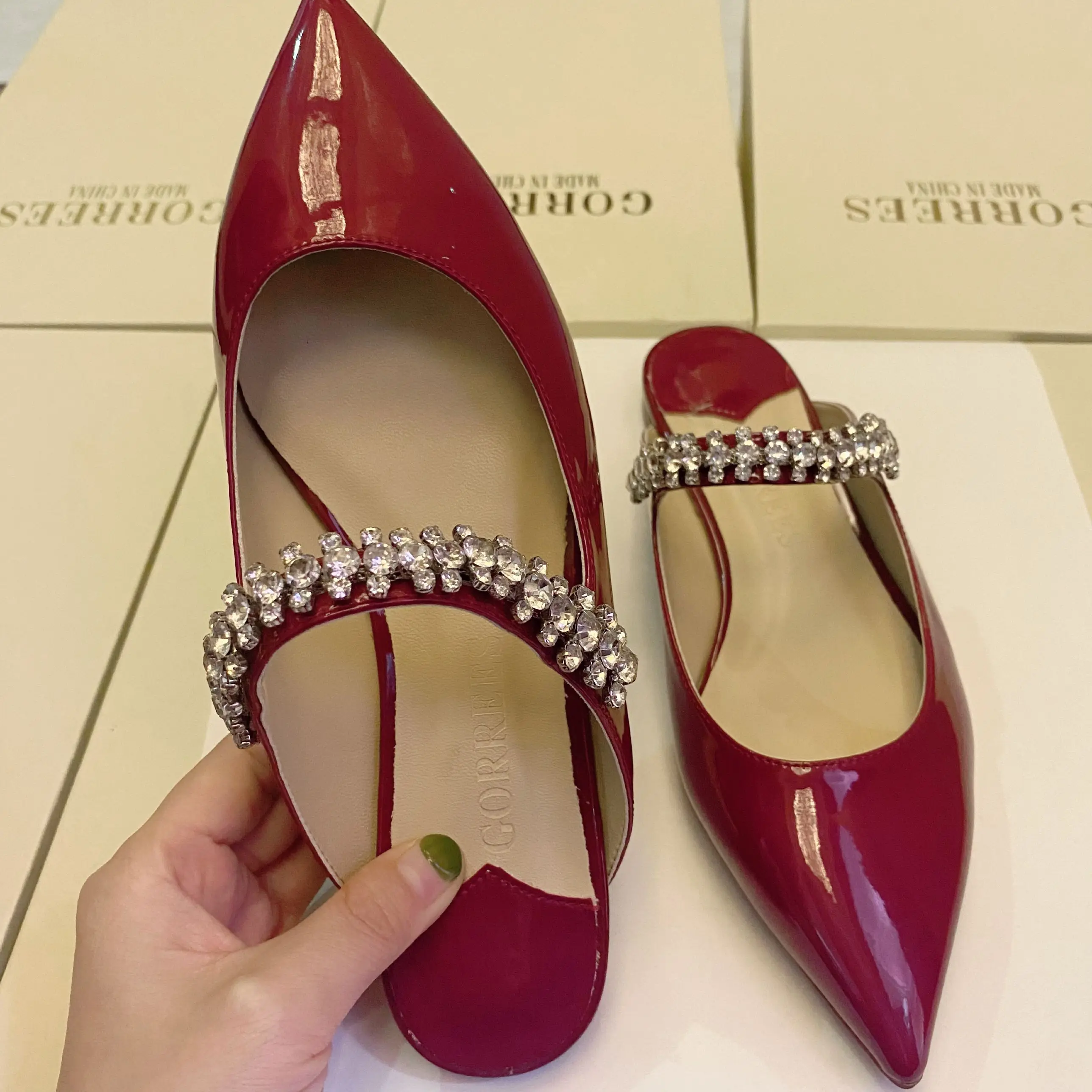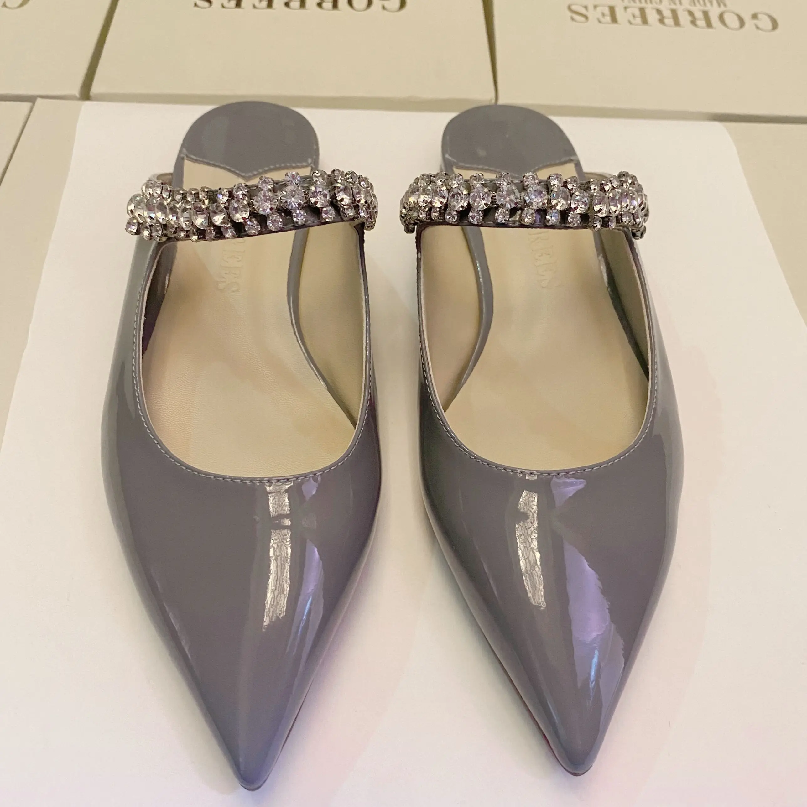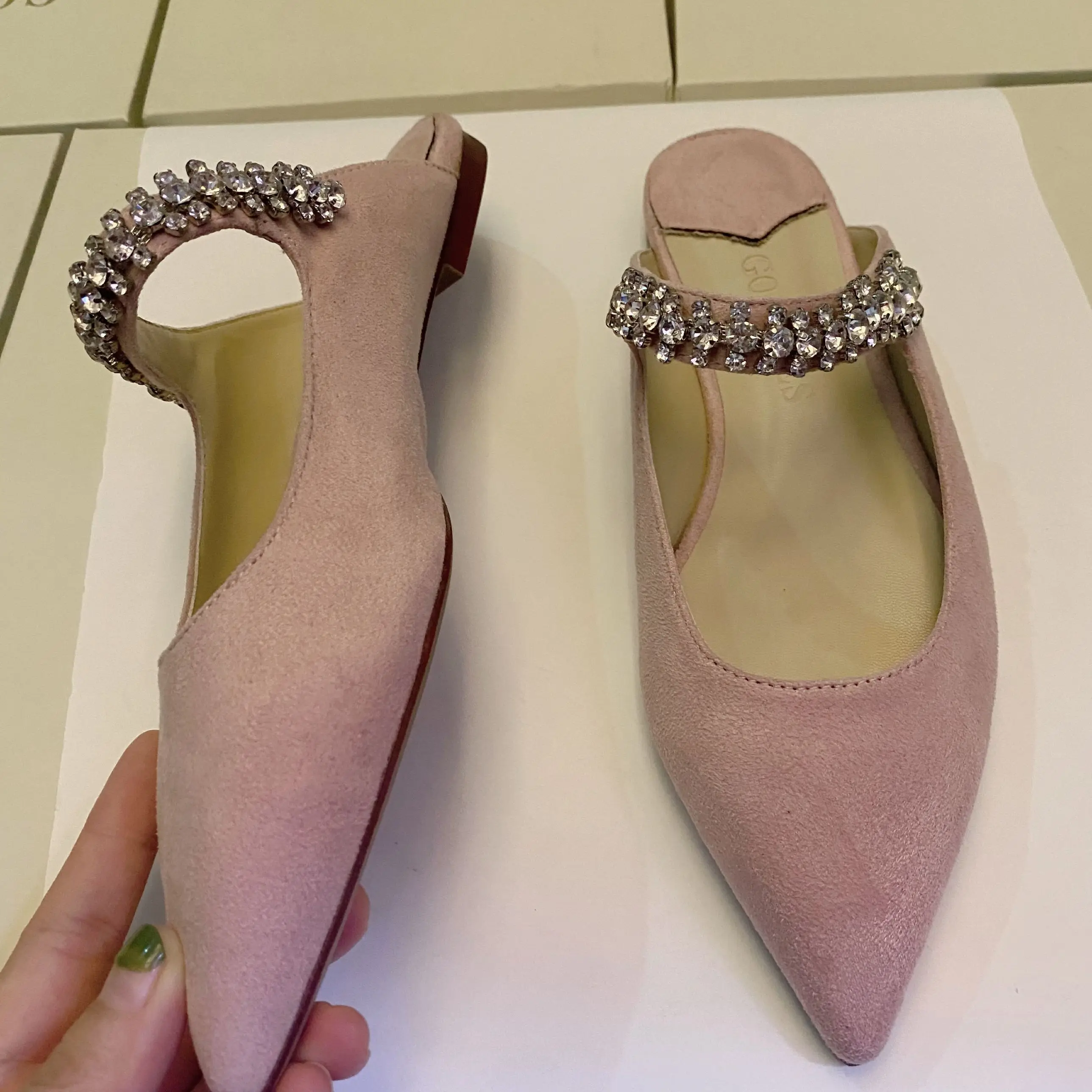 luxury women’s shoes 2024 New Luxury Brand Women’s Sandals Leather Pointed Toe Diamon Casual Outdoor Crystal Female Slip-On Soli