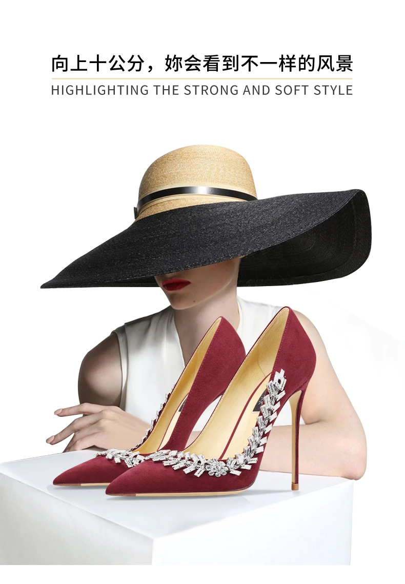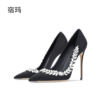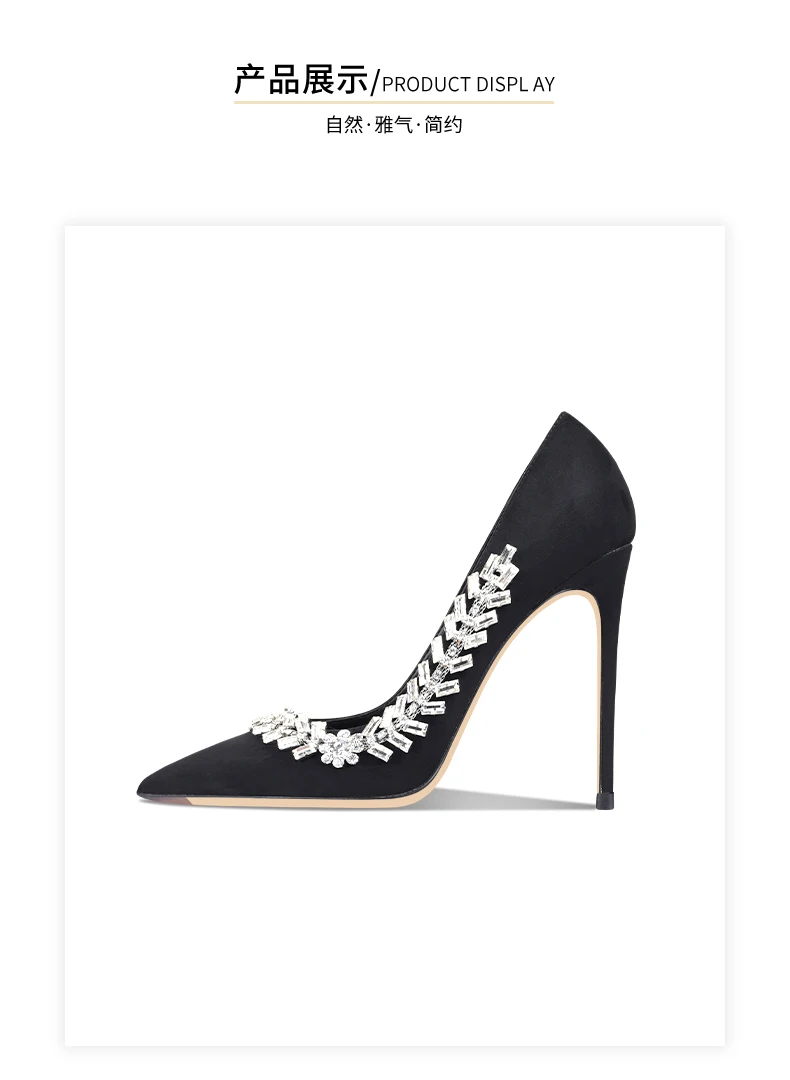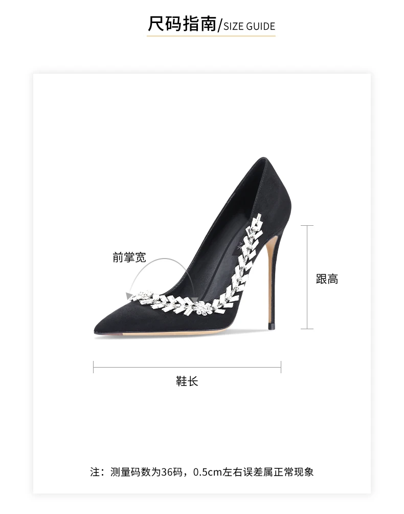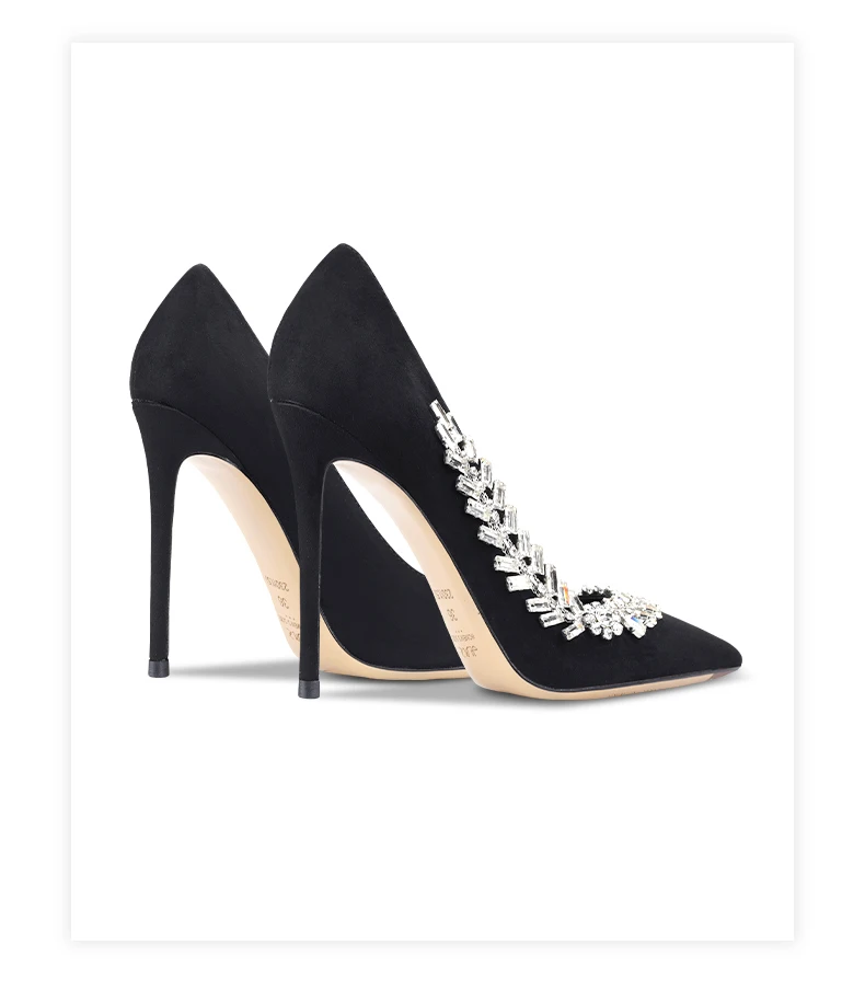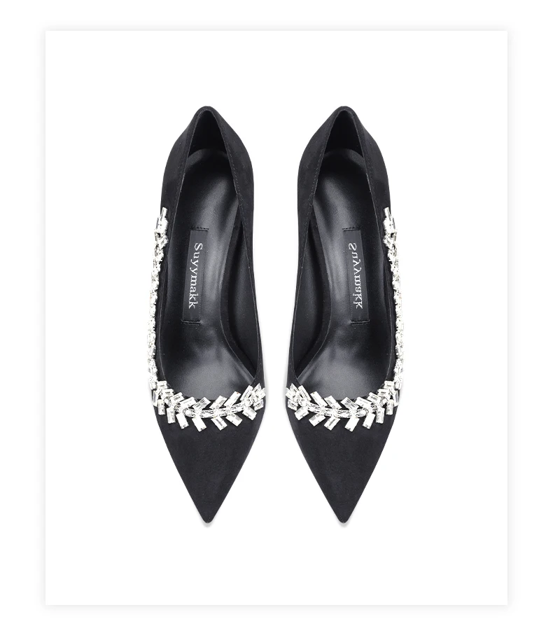 luxury women’s shoes 2024 New Suede Black Crystal Women Pumps Pointed Toe Rhinestone High Heels Fashion Stiletto Luxury Party Wo