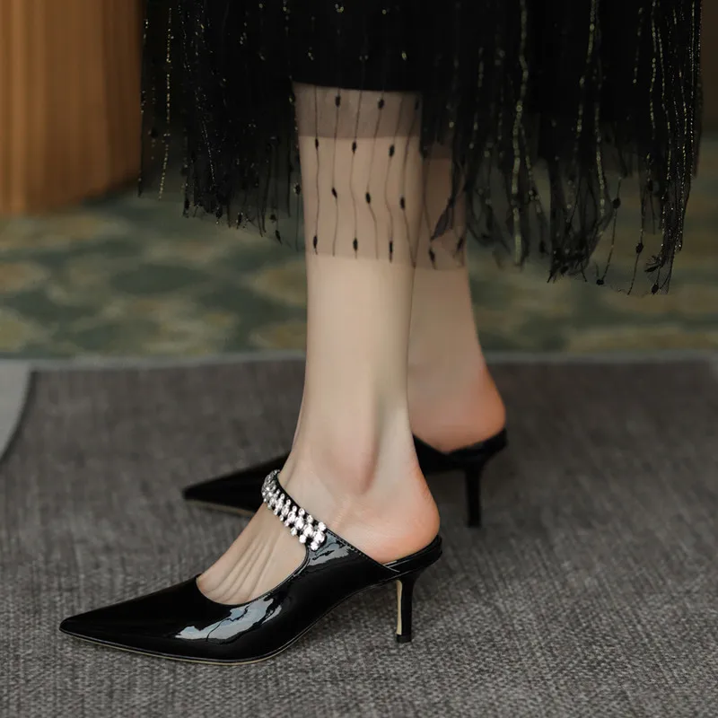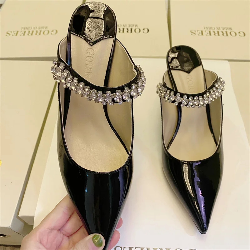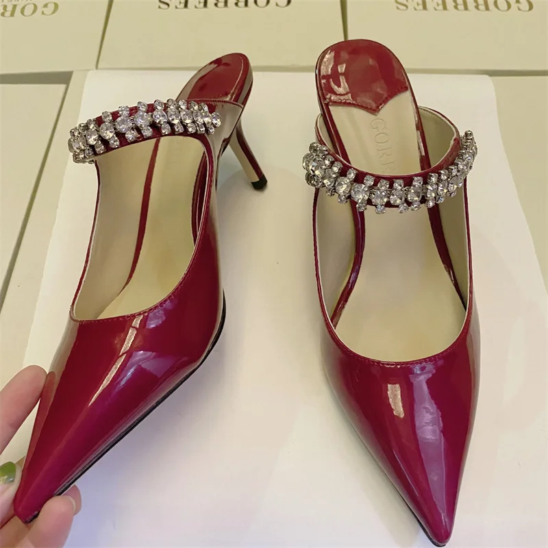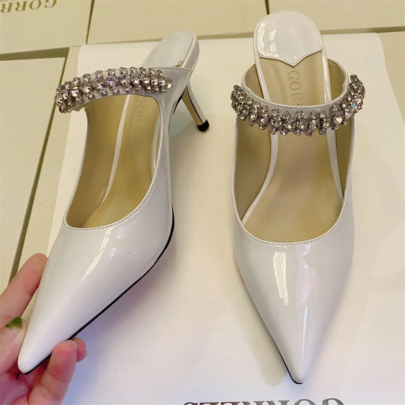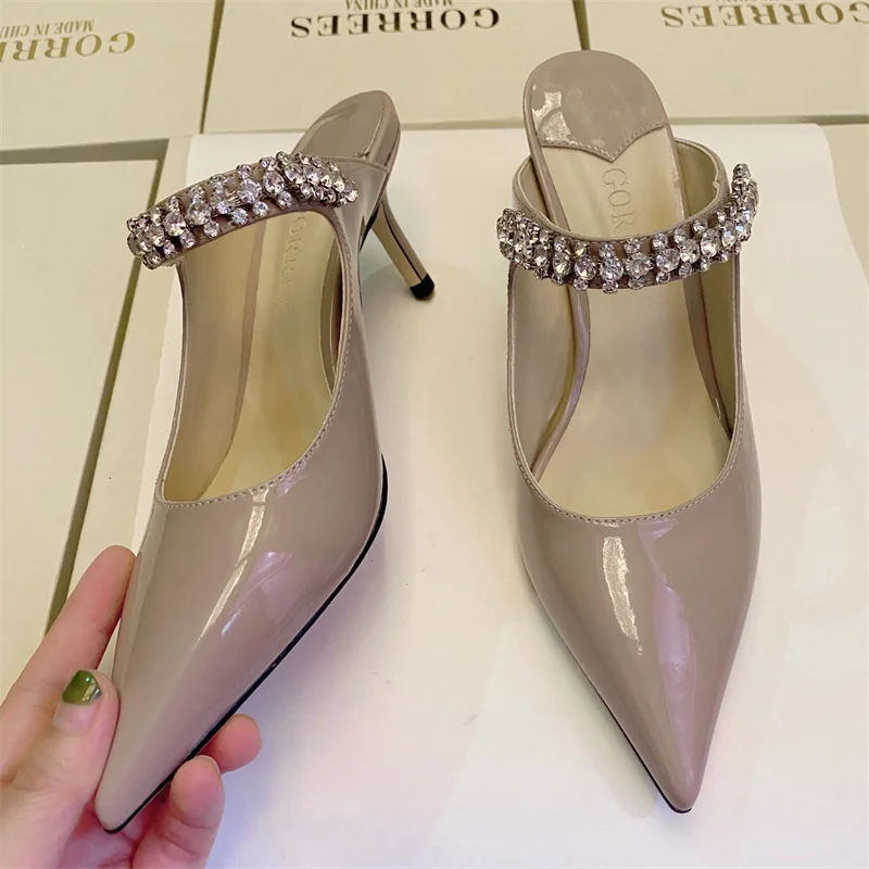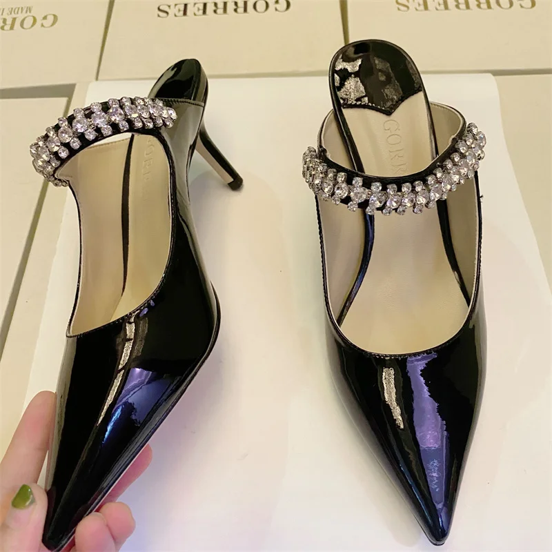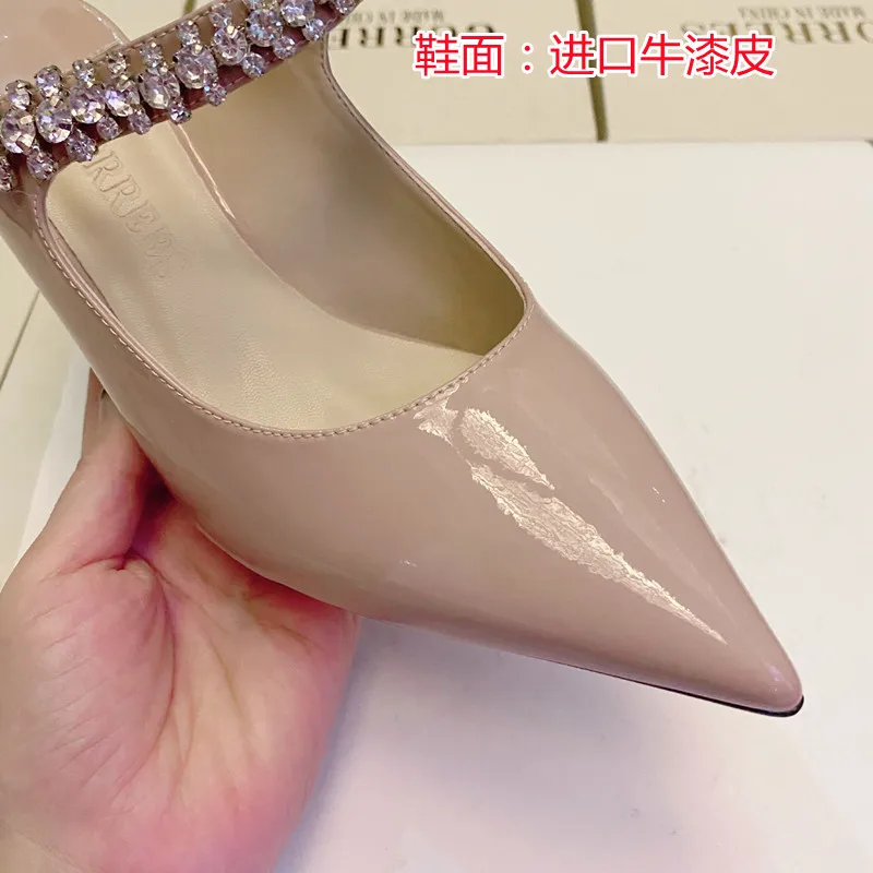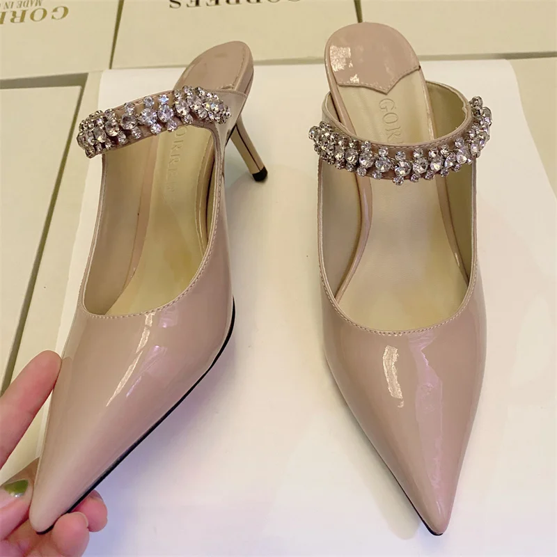 luxury women’s shoes Women’s Sandals Summer 2024 New Leather Women’s Slippers shoesHigh Heels Pointed Toe Diamond Party Ladies