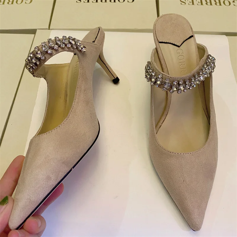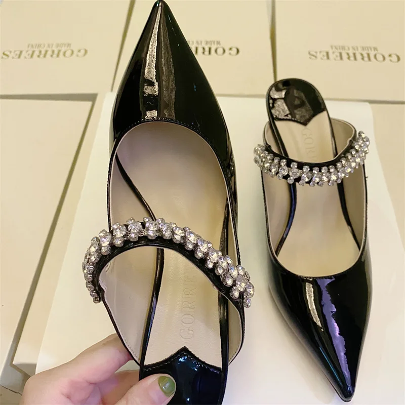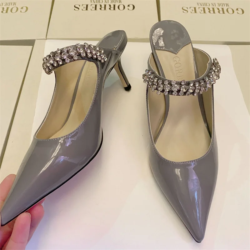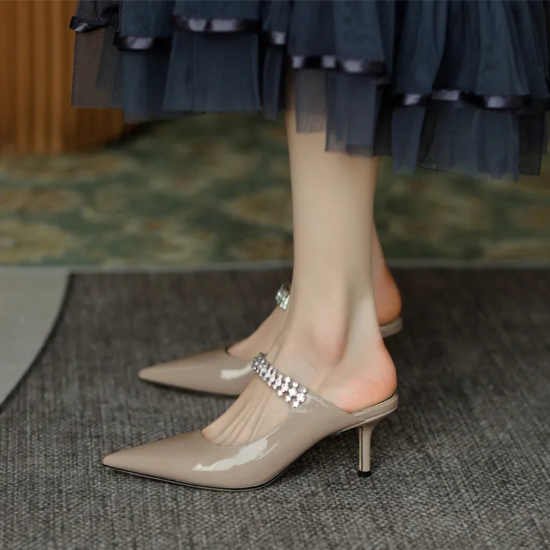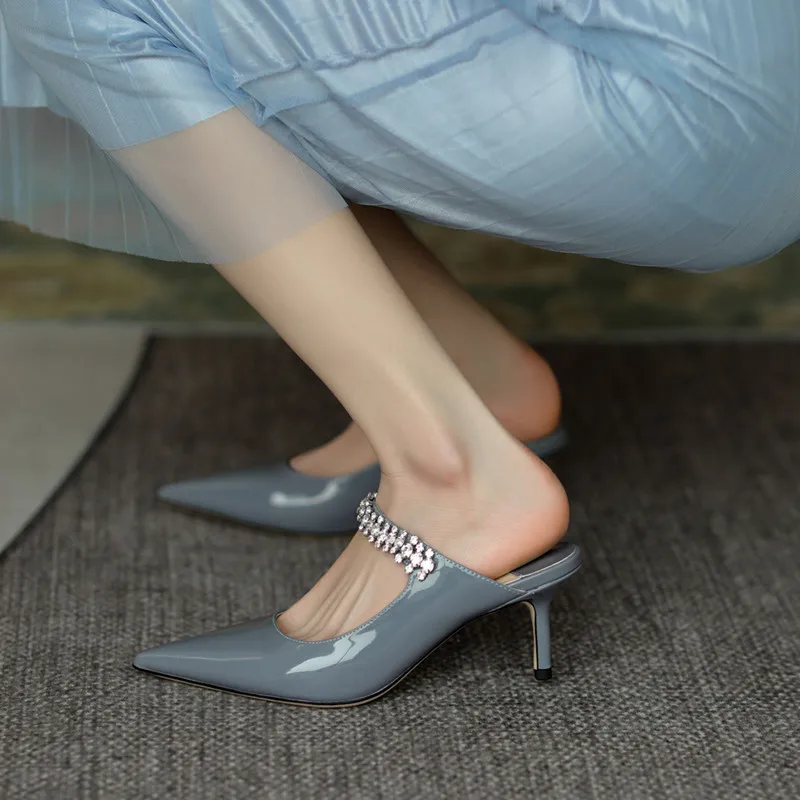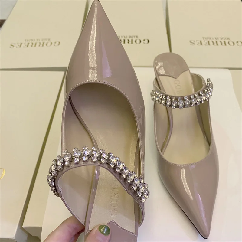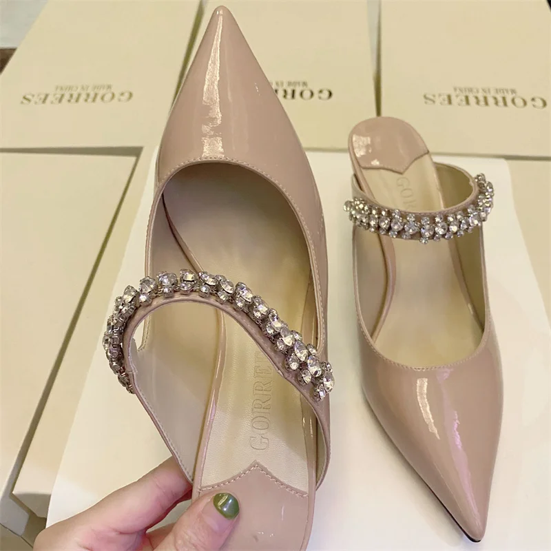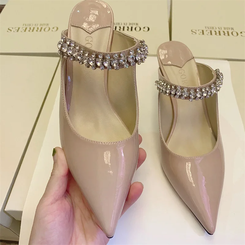 luxury women’s shoes Women’s Sandals Summer 2024 New Leather Women’s Slippers shoesHigh Heels Pointed Toe Diamond Party Ladies