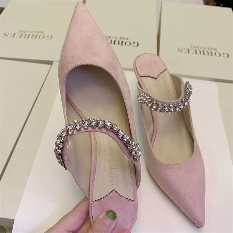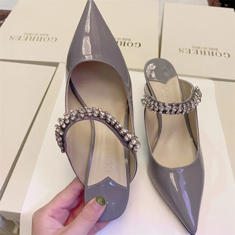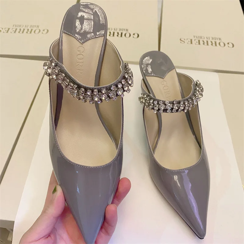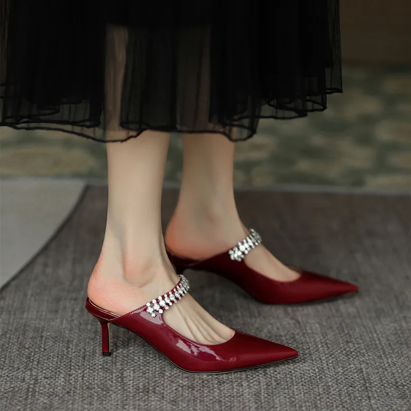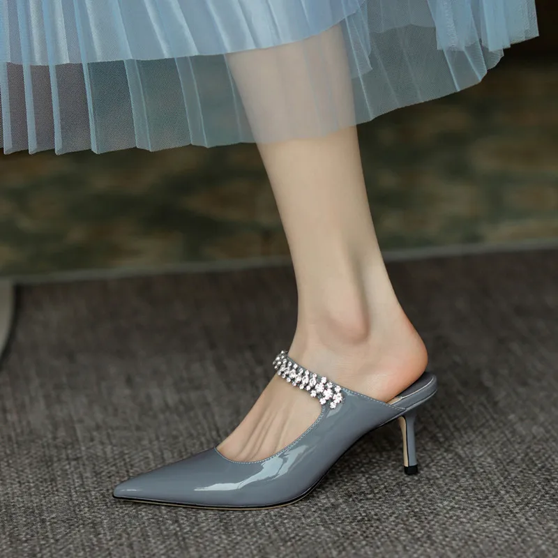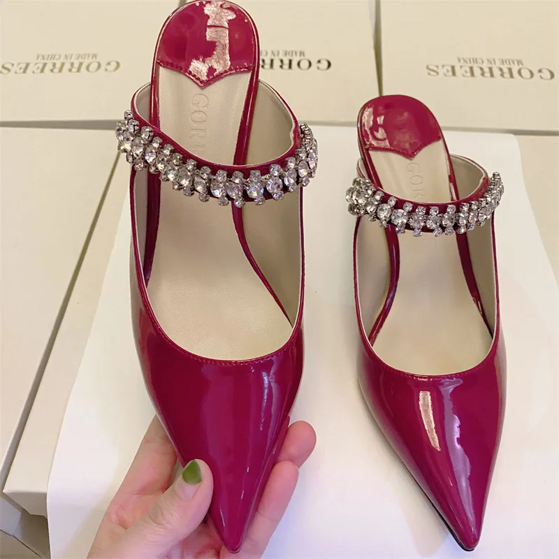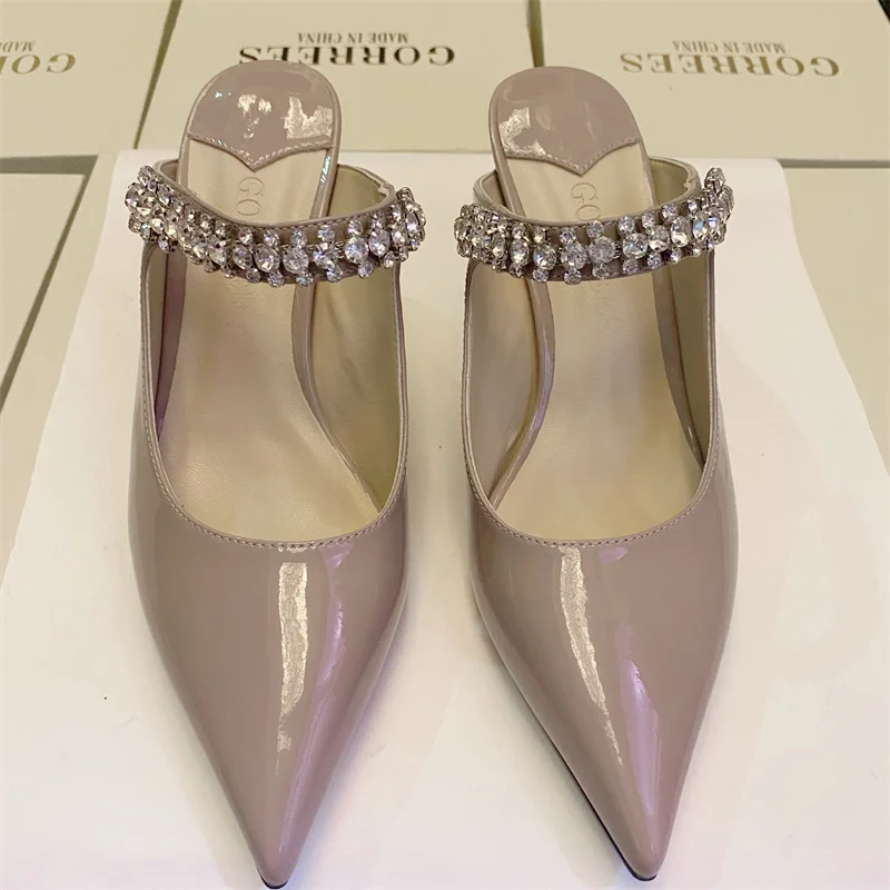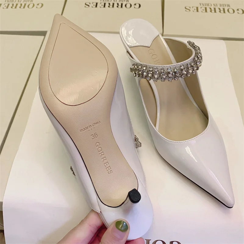 luxury women’s shoes Women’s Sandals Summer 2024 New Leather Women’s Slippers shoesHigh Heels Pointed Toe Diamond Party Ladies