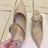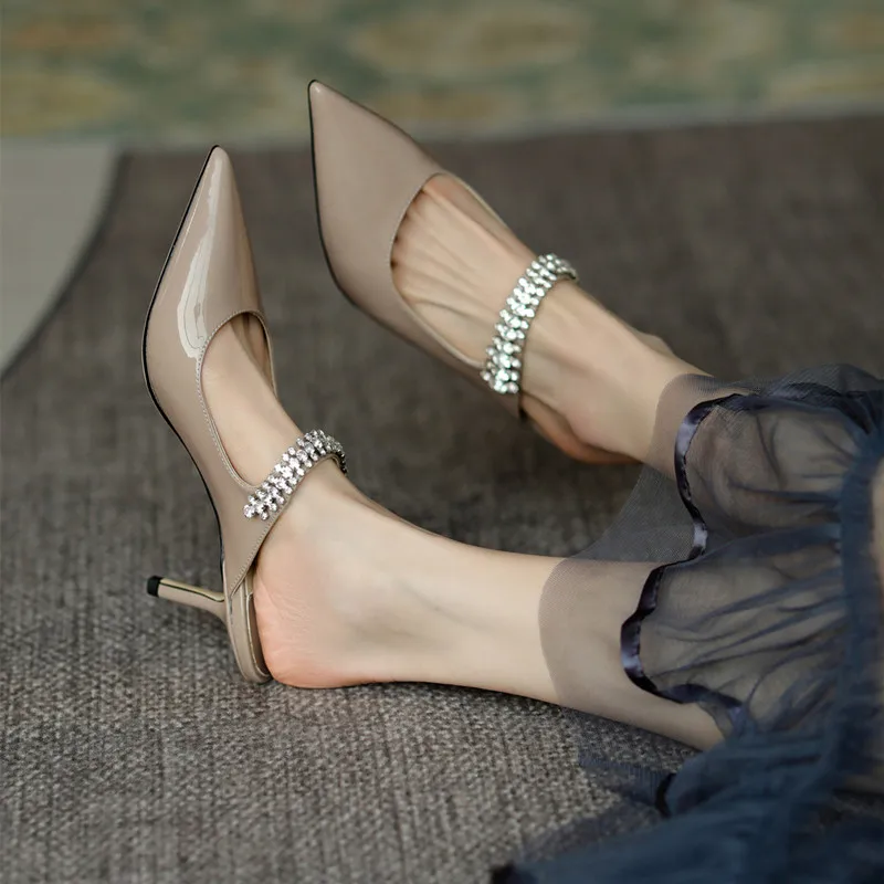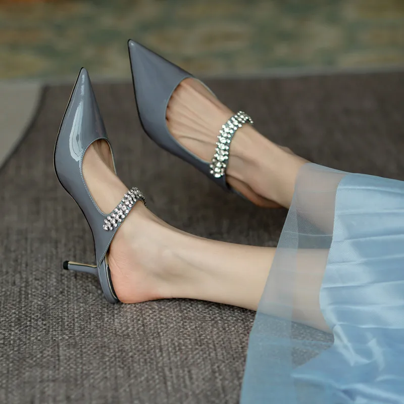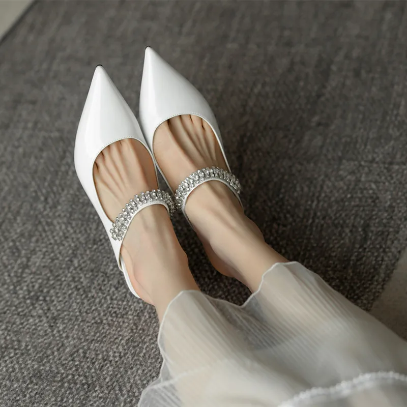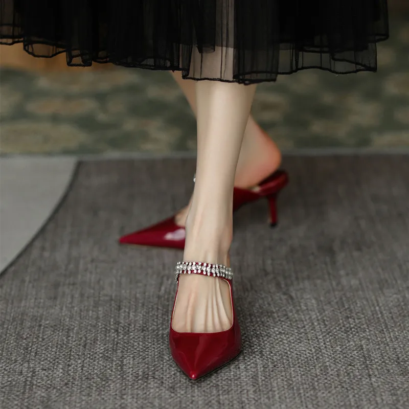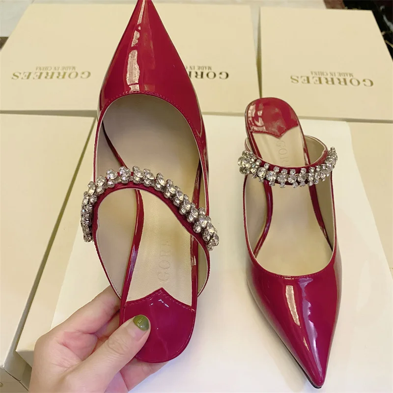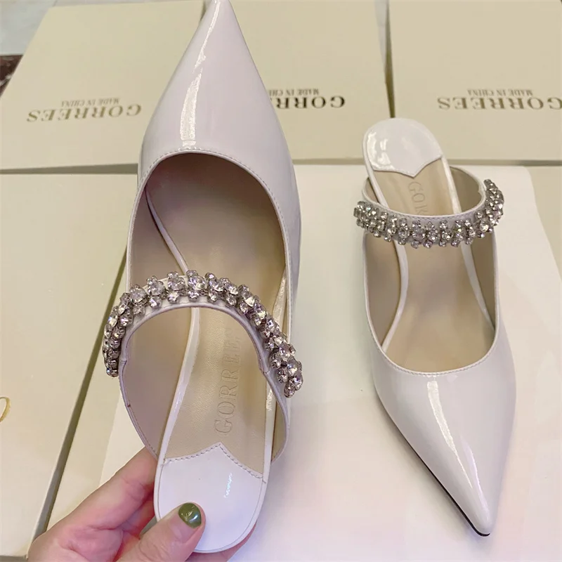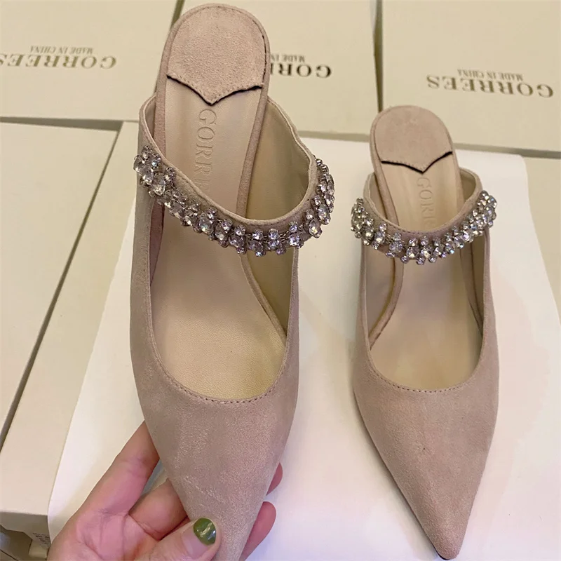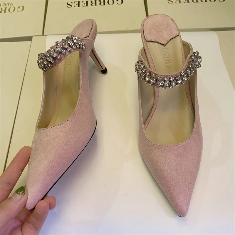 luxury women’s shoes Women’s Sandals Summer 2024 New Leather Women’s Slippers shoesHigh Heels Pointed Toe Diamond Party Ladies