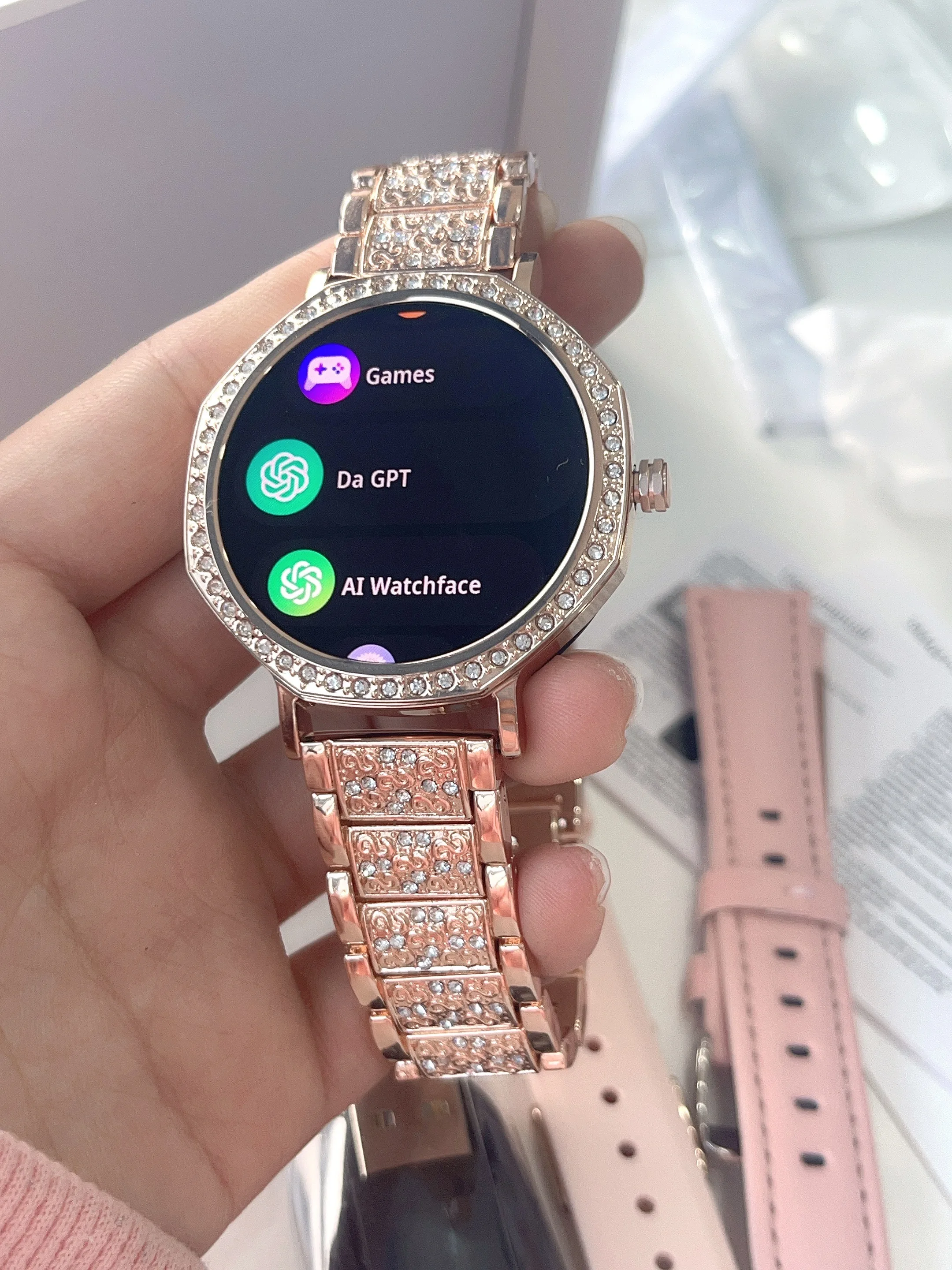 The product design is impeccable, with every detail showcasing delicacy and uniqueness. It has three straps in total, all of which perfectly fit my wrist. I am also very satisfied with the functions of the watch. It can be used to make and receive calls, receive messages, measure heart rate, blood oxygen, and manage menstrual periods. Wearing a watch on your hand looks very beautiful, it is undoubtedly a great fashion item. The seller's service is very enthusiastic and patient, which makes people feel particularly thoughtful and satisfied. Thank you!