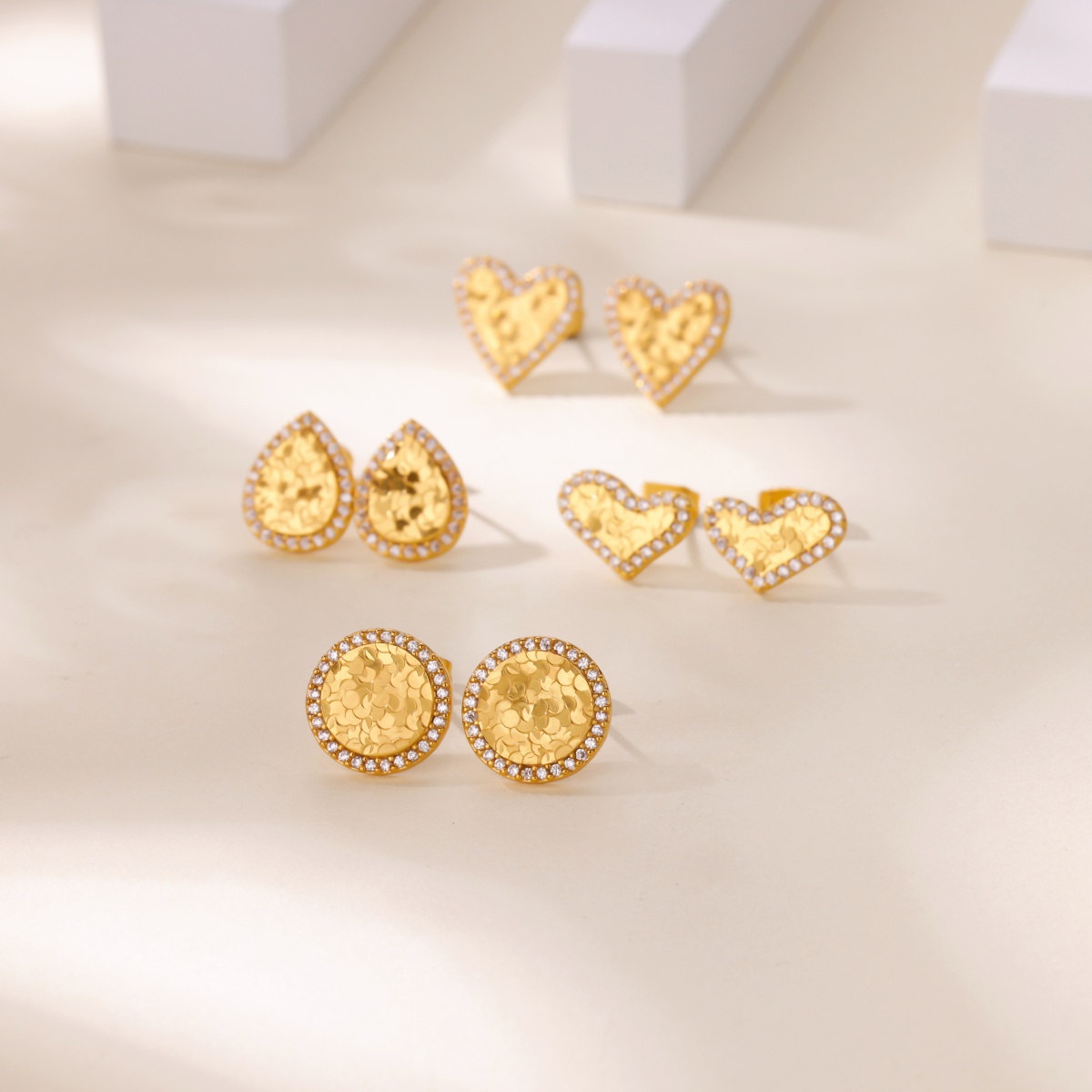 Luxury Zircon Heart Earrings For Women Stainless Steel Geometric Heart Round Earring Aesthetic Wedding Christmas Jewelry Gift
