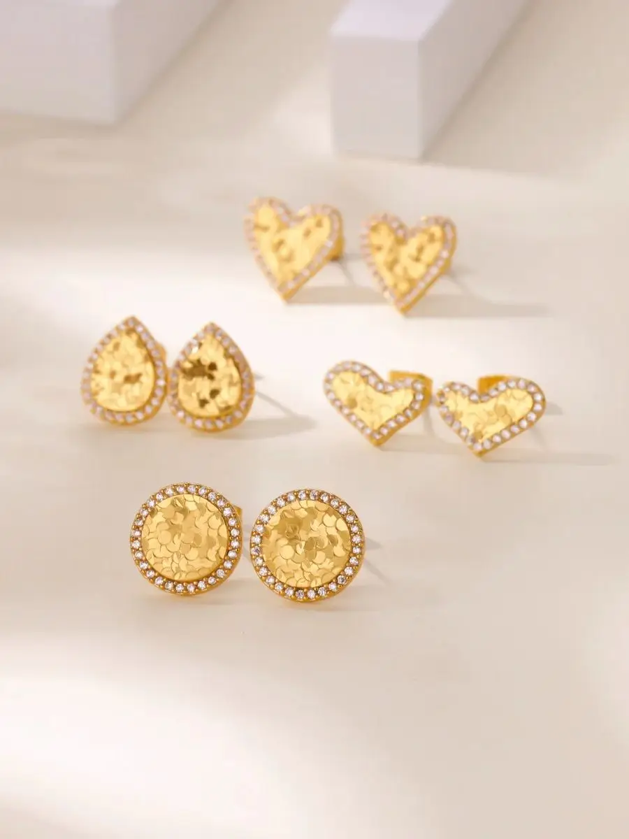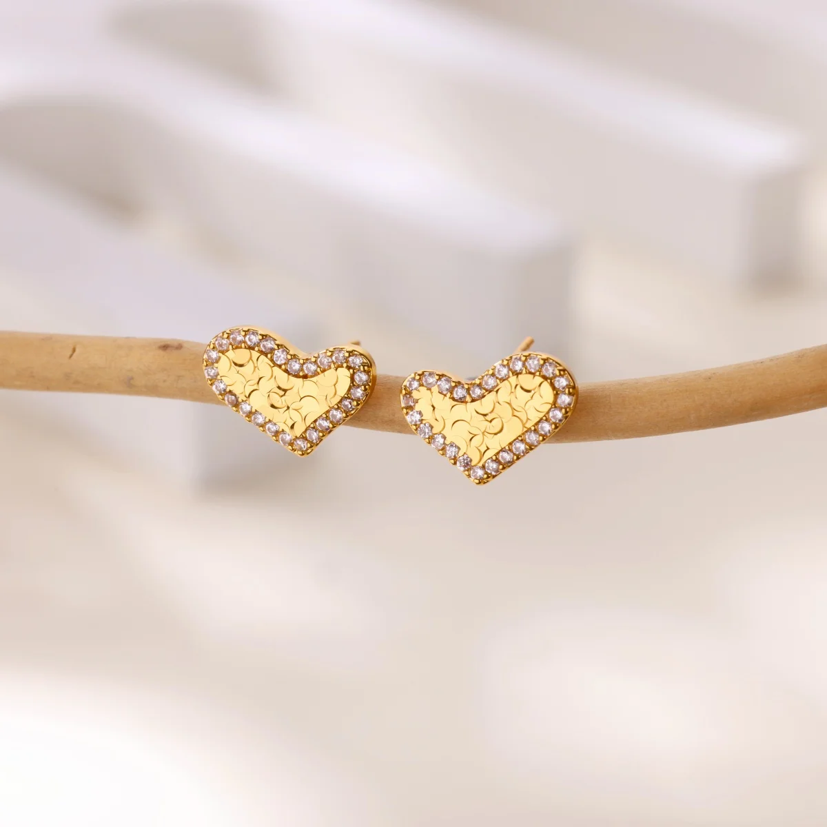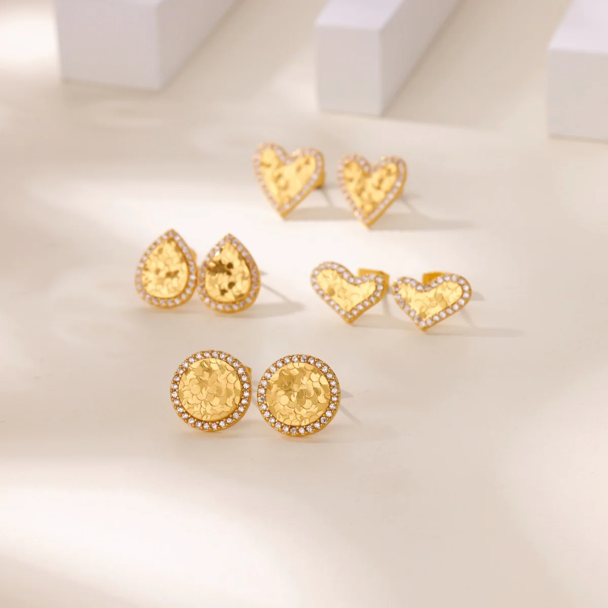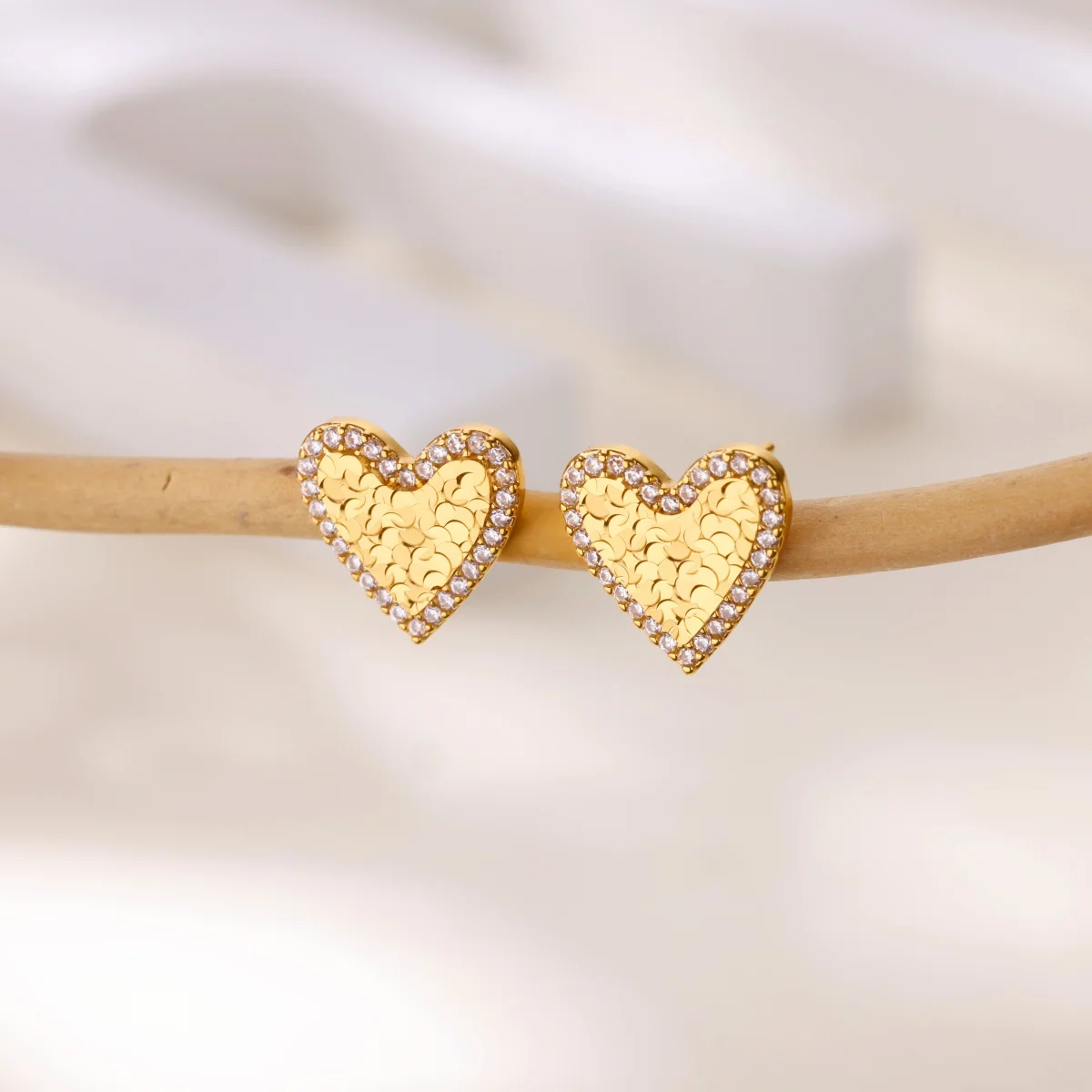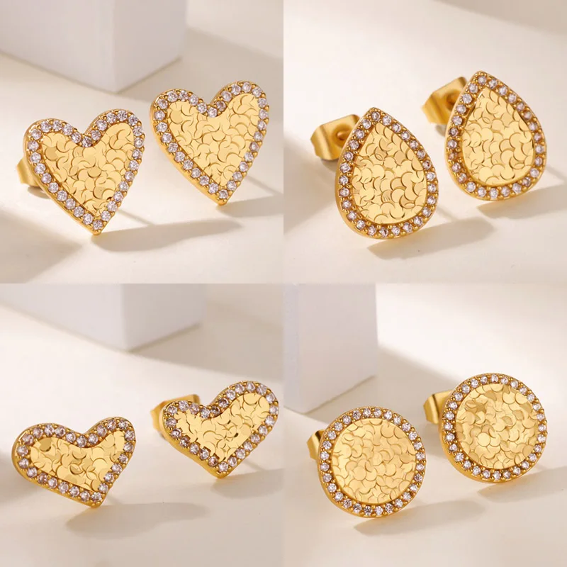 Luxury Zircon Heart Earrings For Women Stainless Steel Geometric Heart Round Earring Aesthetic Wedding Christmas Jewelry Gift