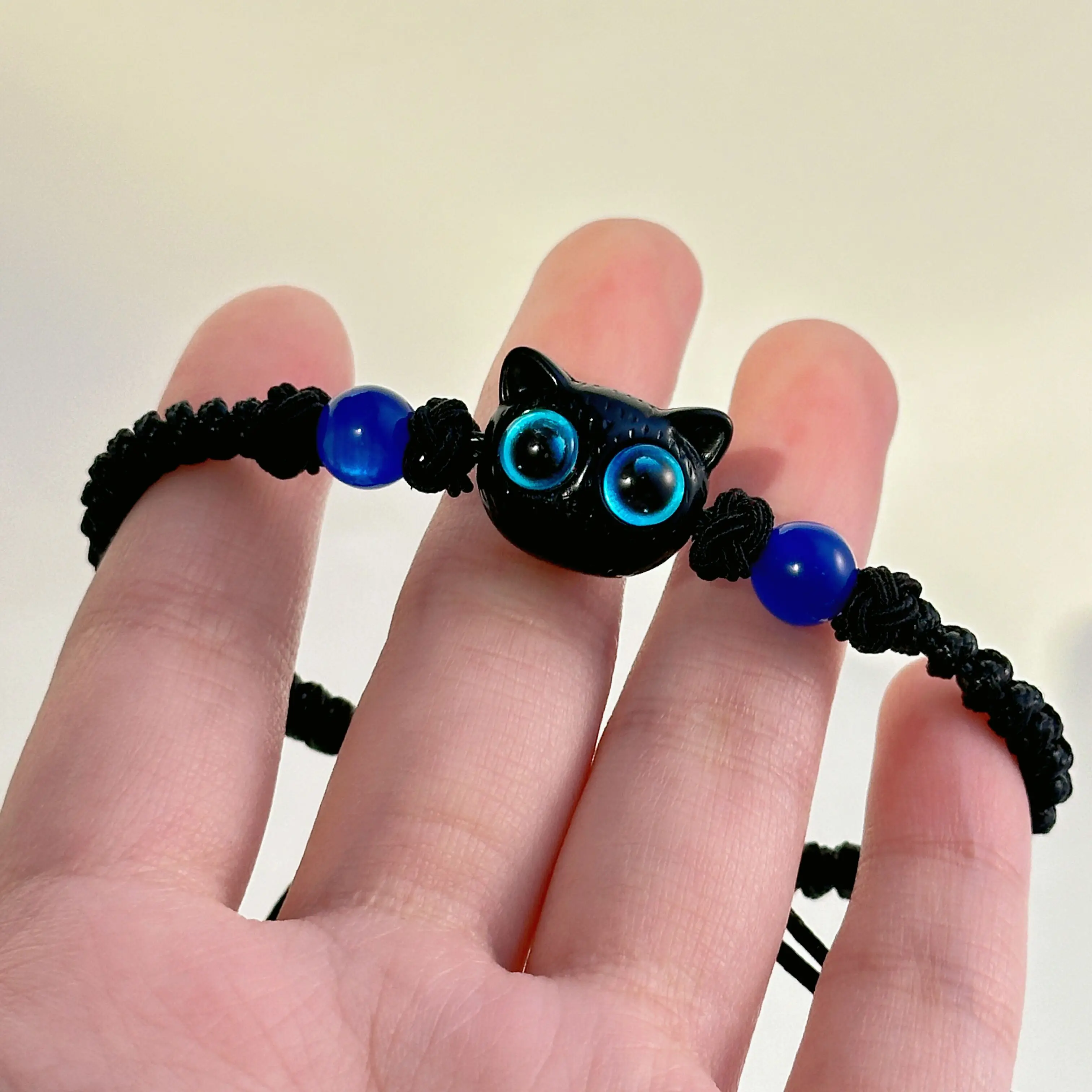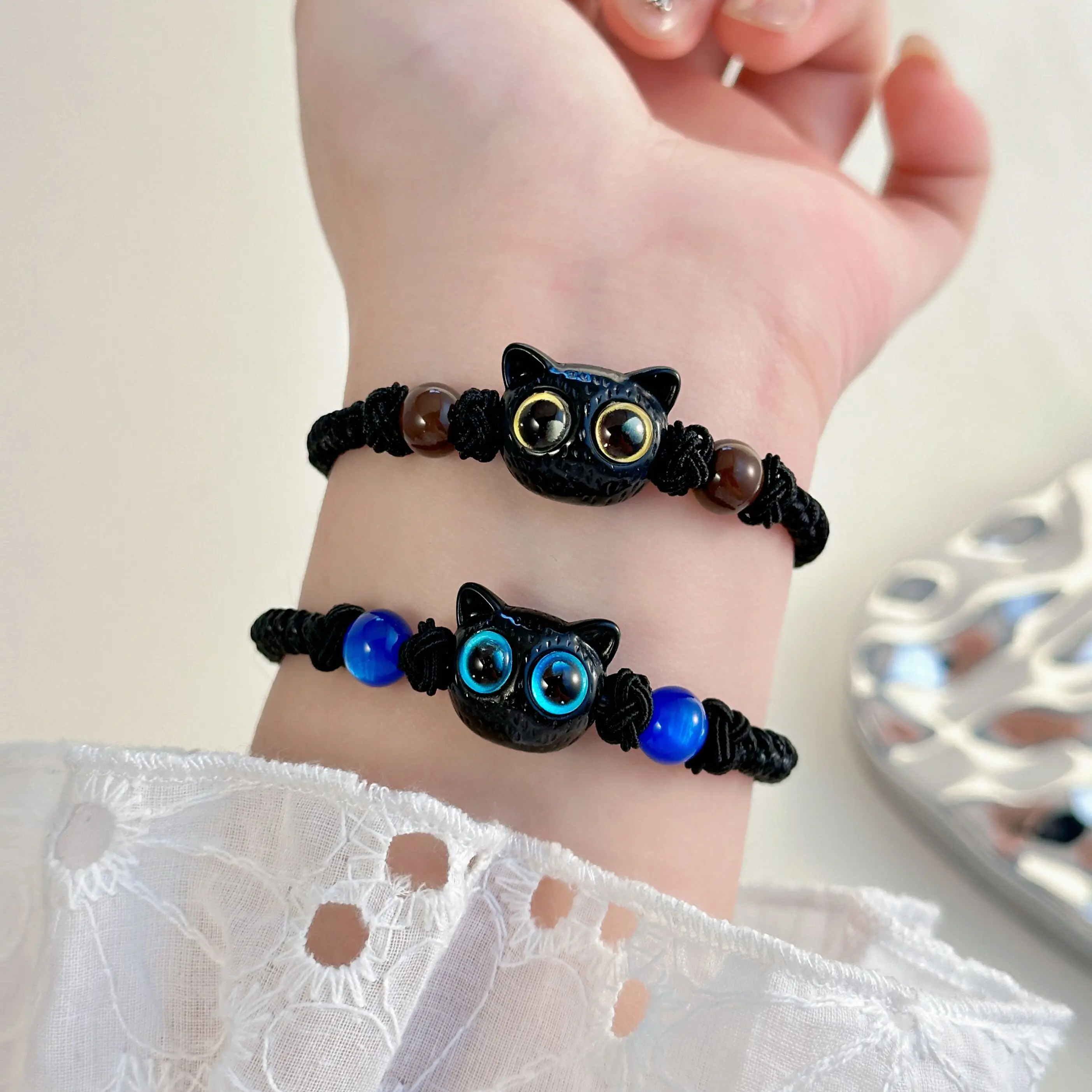 Matching Black Cat Couple Bracelets Handmade Braided Rope Lucky Amulet Jewelry Valentine’s Day Gift for Boyfriend Girlfriend