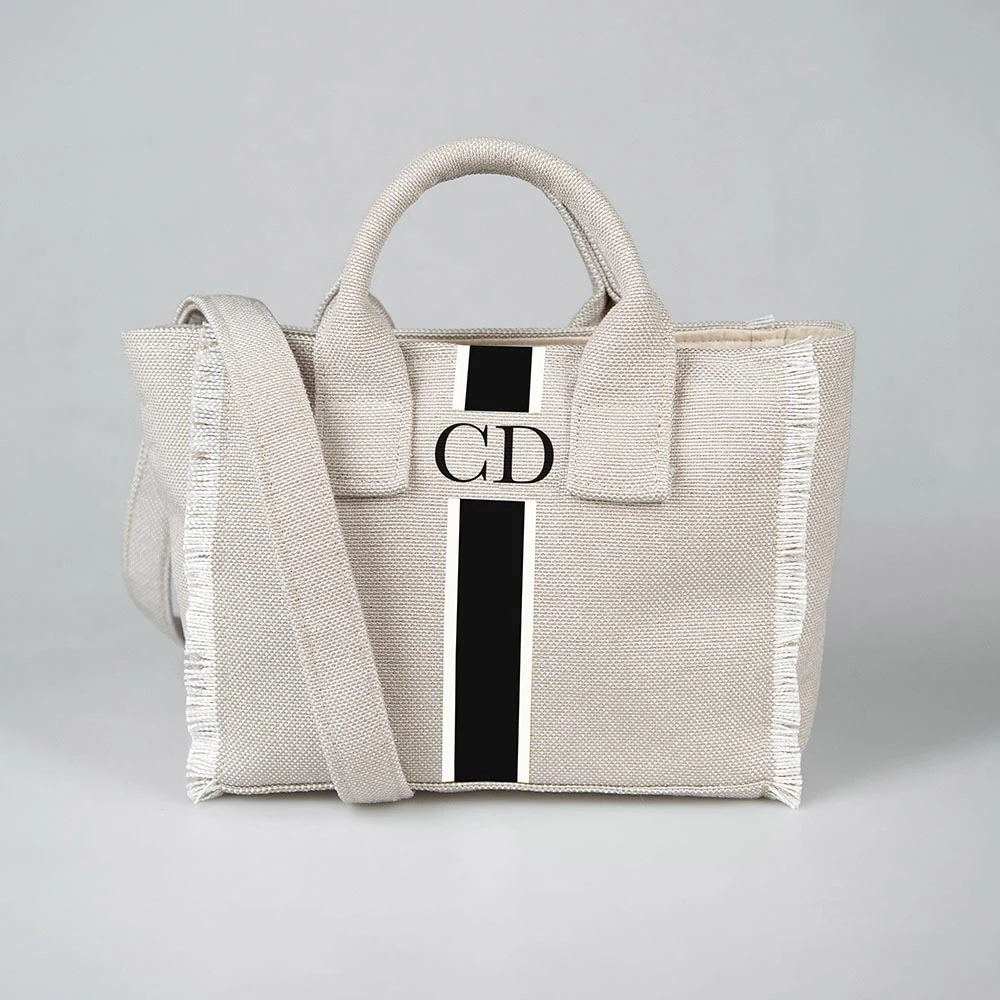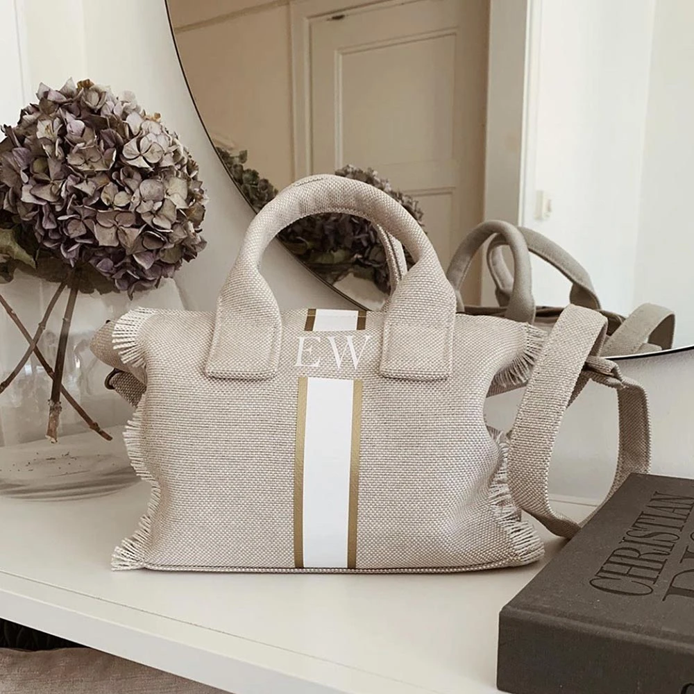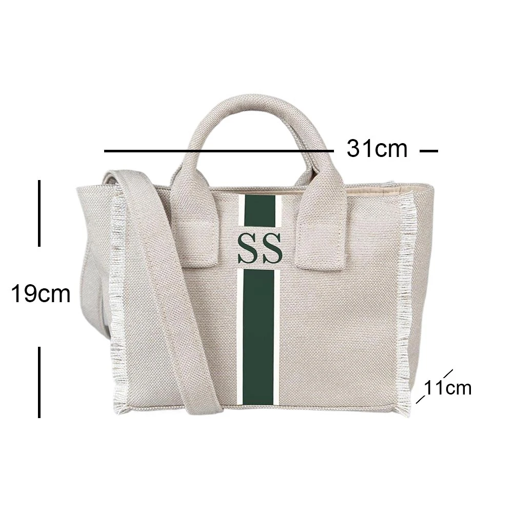 Medium Size Customizable Letter Tassel Canvas Bag Summer Beach Women’s Bag Large Capacity Commuting Tote Wedding Gifts