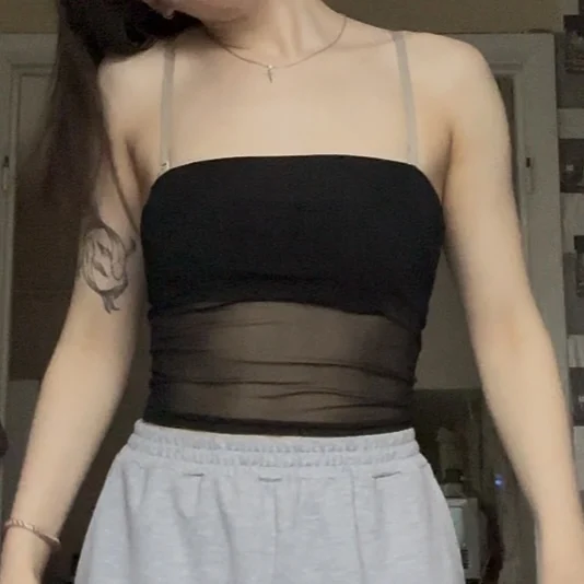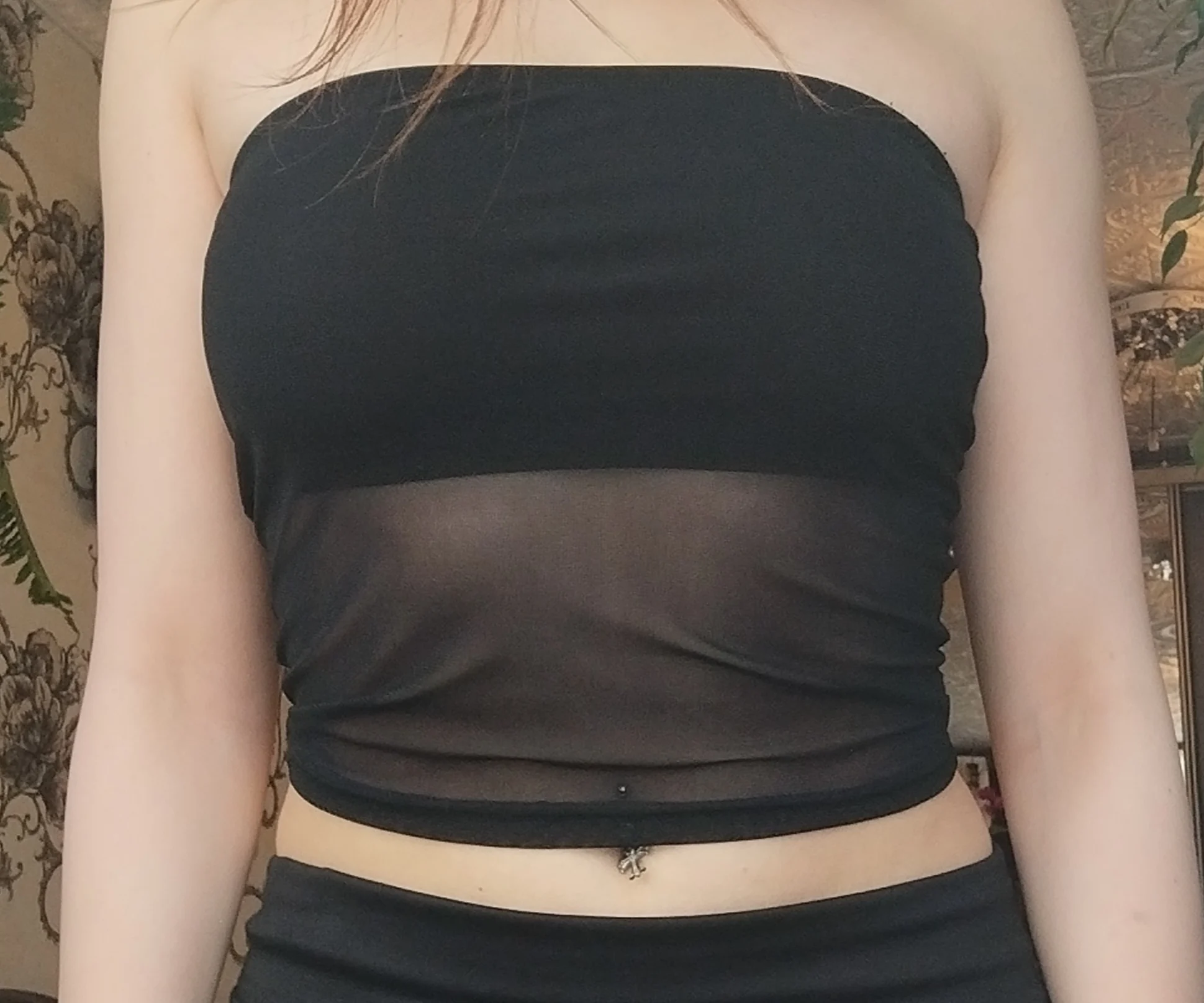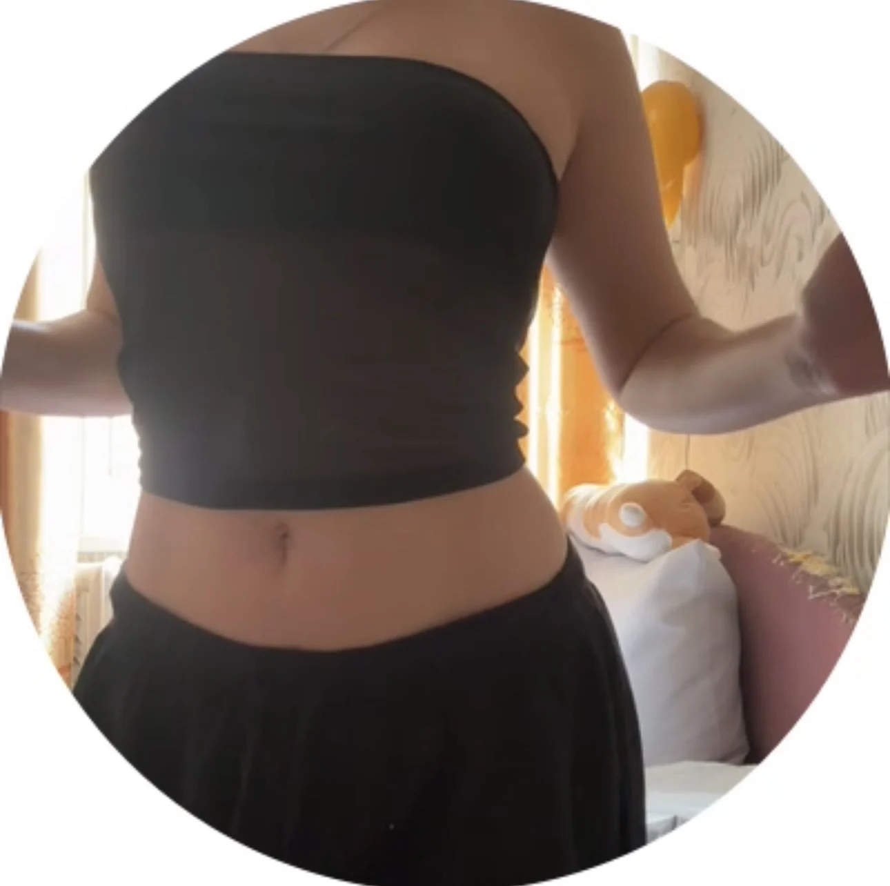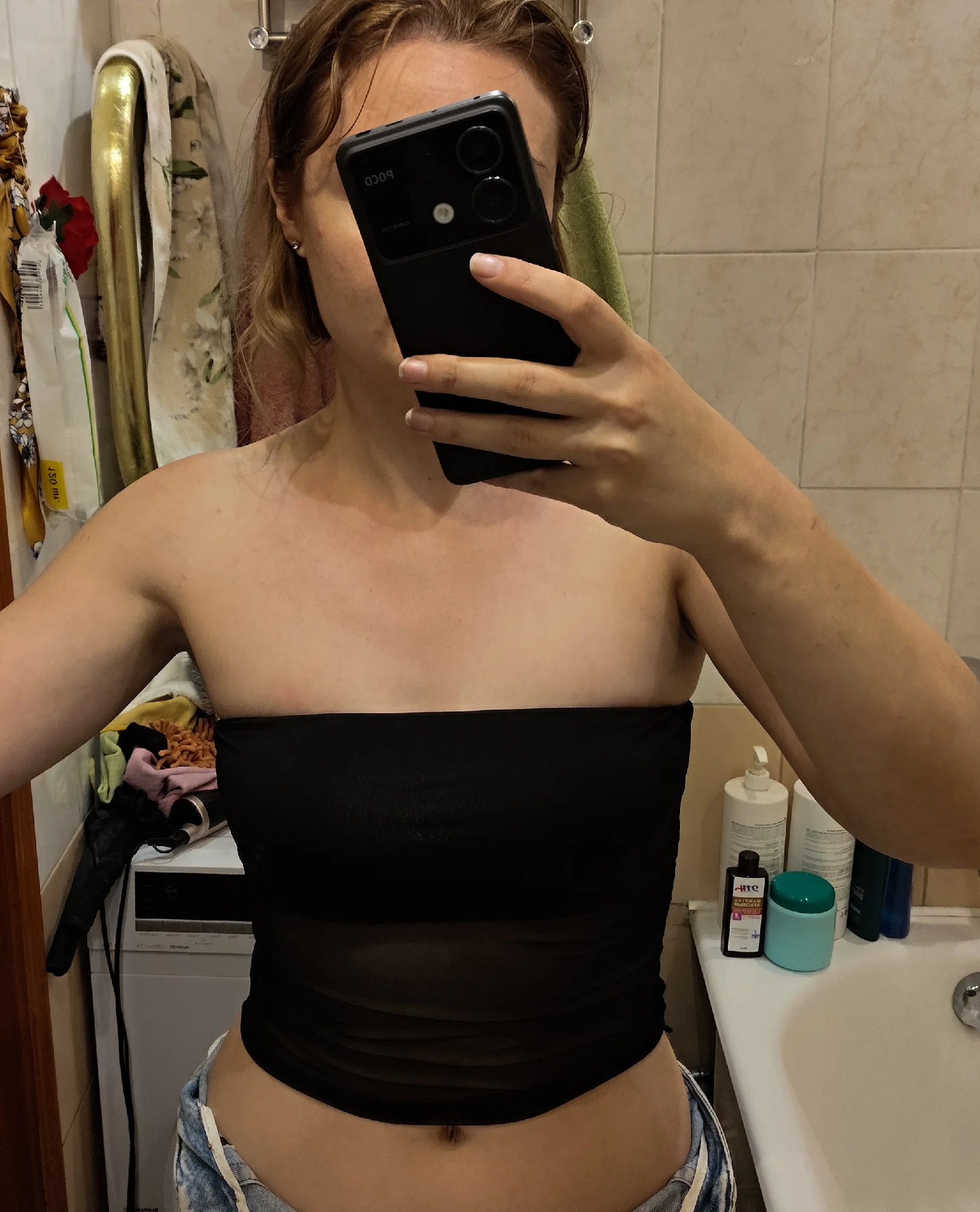 Girls, this is a godsend! The top is very high quality and comfortable! I took size M, in my regular life I wear S-M, but I would advise girls with large breasts to take a size larger, as this elastic band is quite tight! nothing extra is missing! I highly recommend purchasing The photos are just screenshots from the circle, but everything seems to be clearly visible in them.