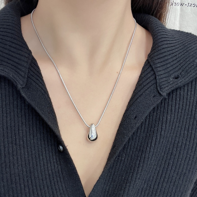 Minimalist Metal Water Droplet Pendant Necklace For Women Unisex Double Layered Hollow Round Necklace Party Jewelry Accessories