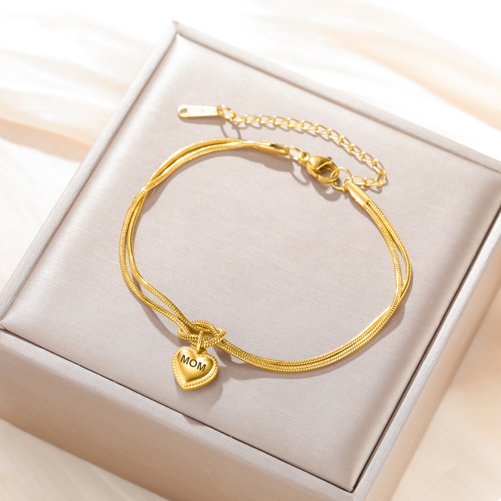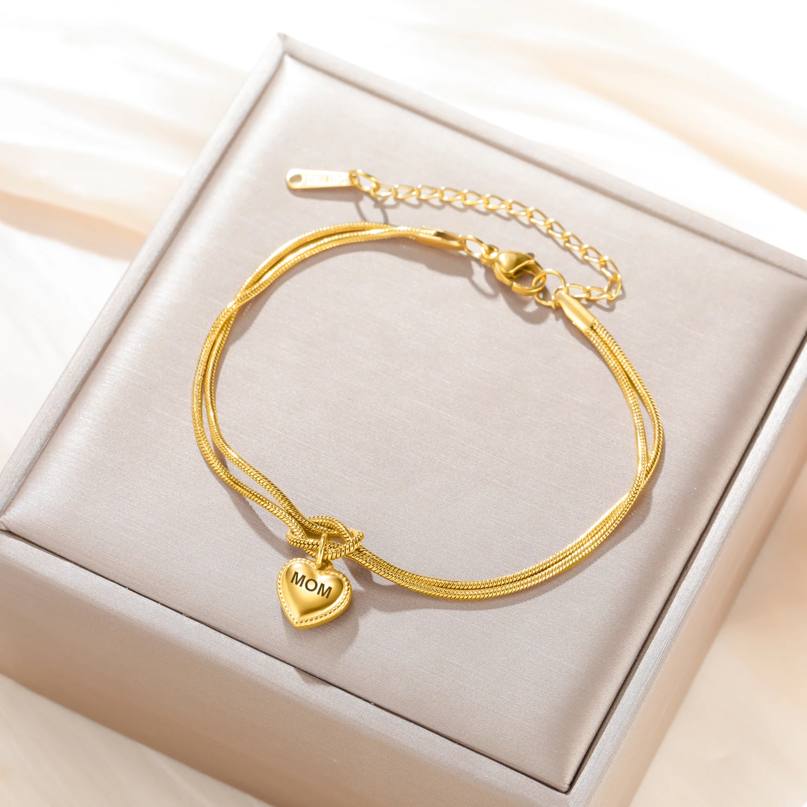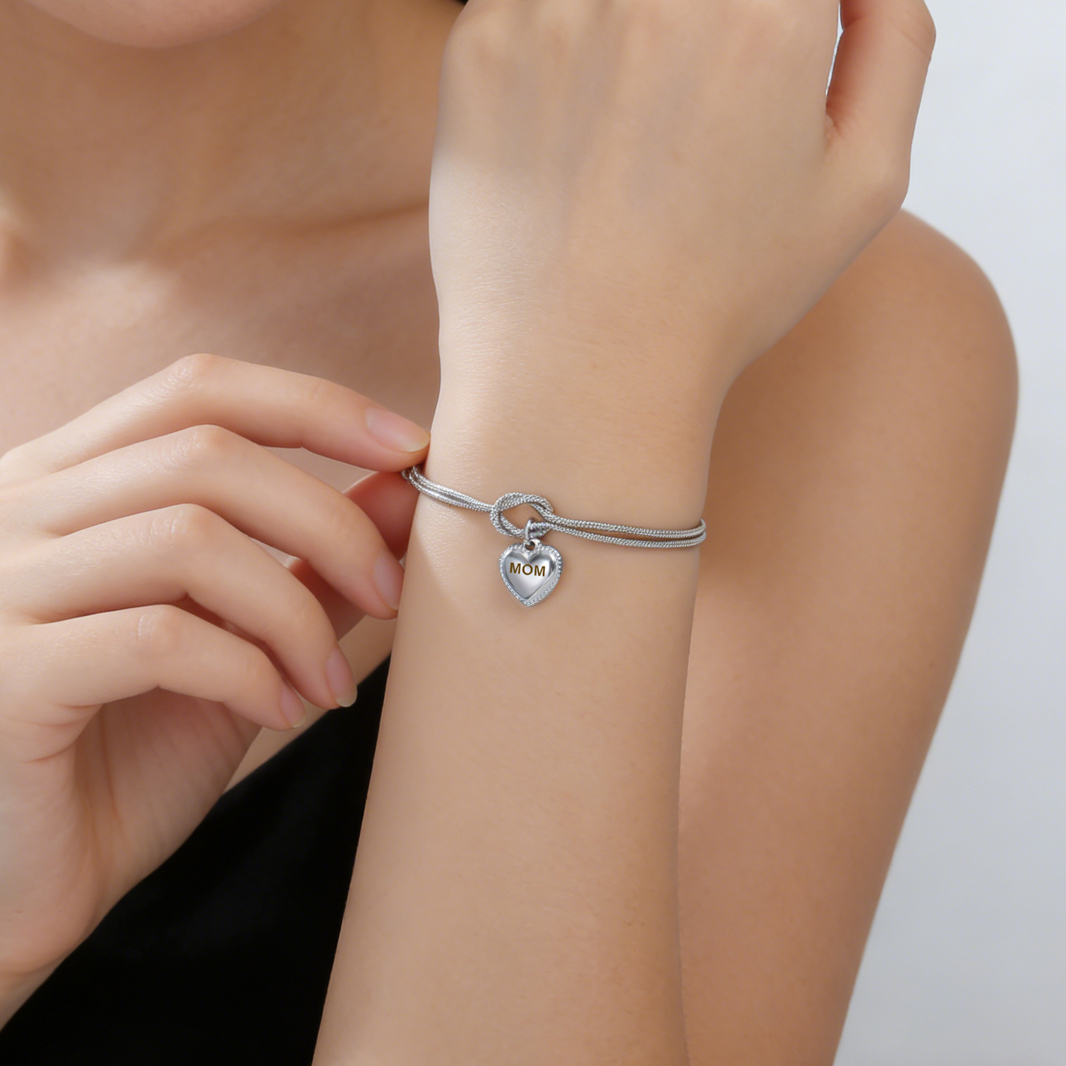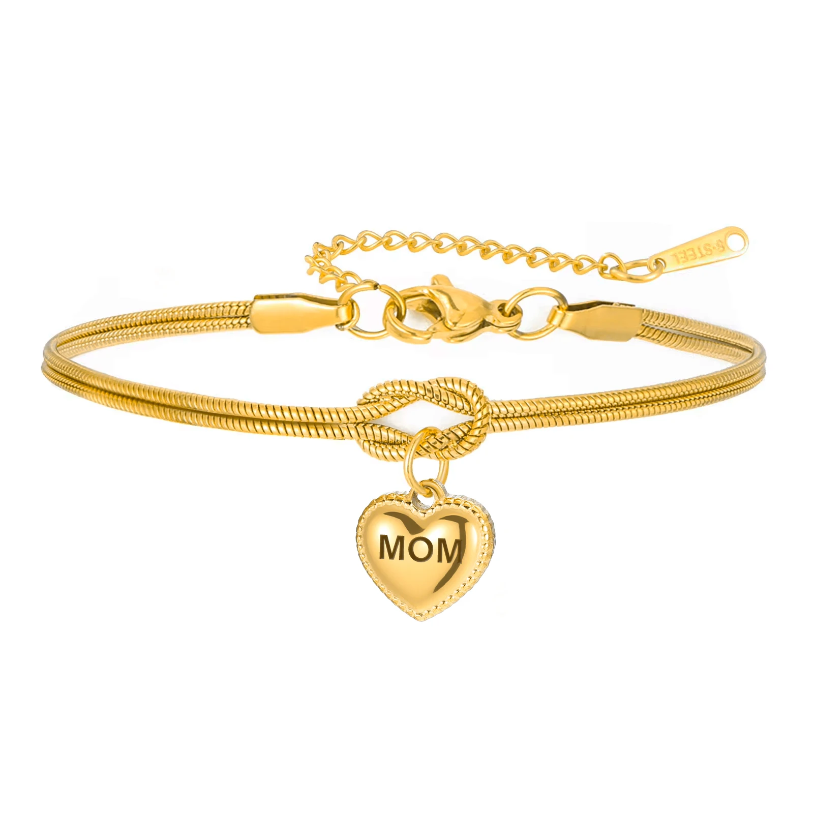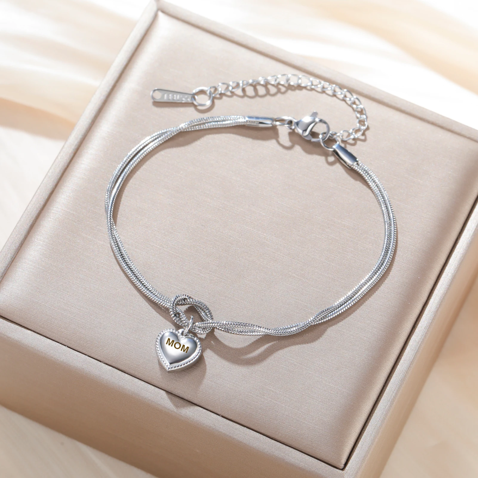 MOM Engraved Heart Charm Bracelet Stainless Steel Women’s Love Knot Snake Chain Bracelets Fashion Jewelry Mother’s Day Gift