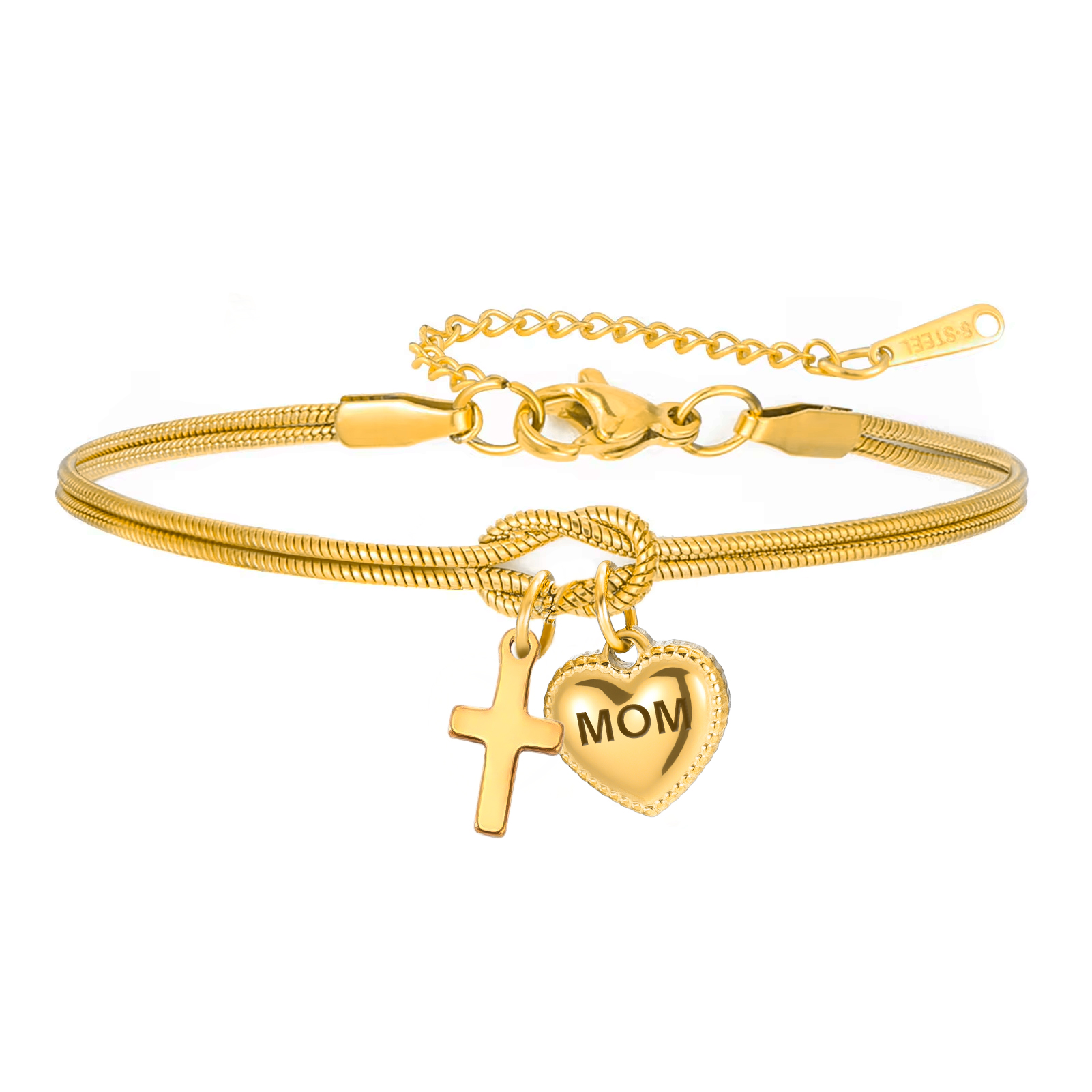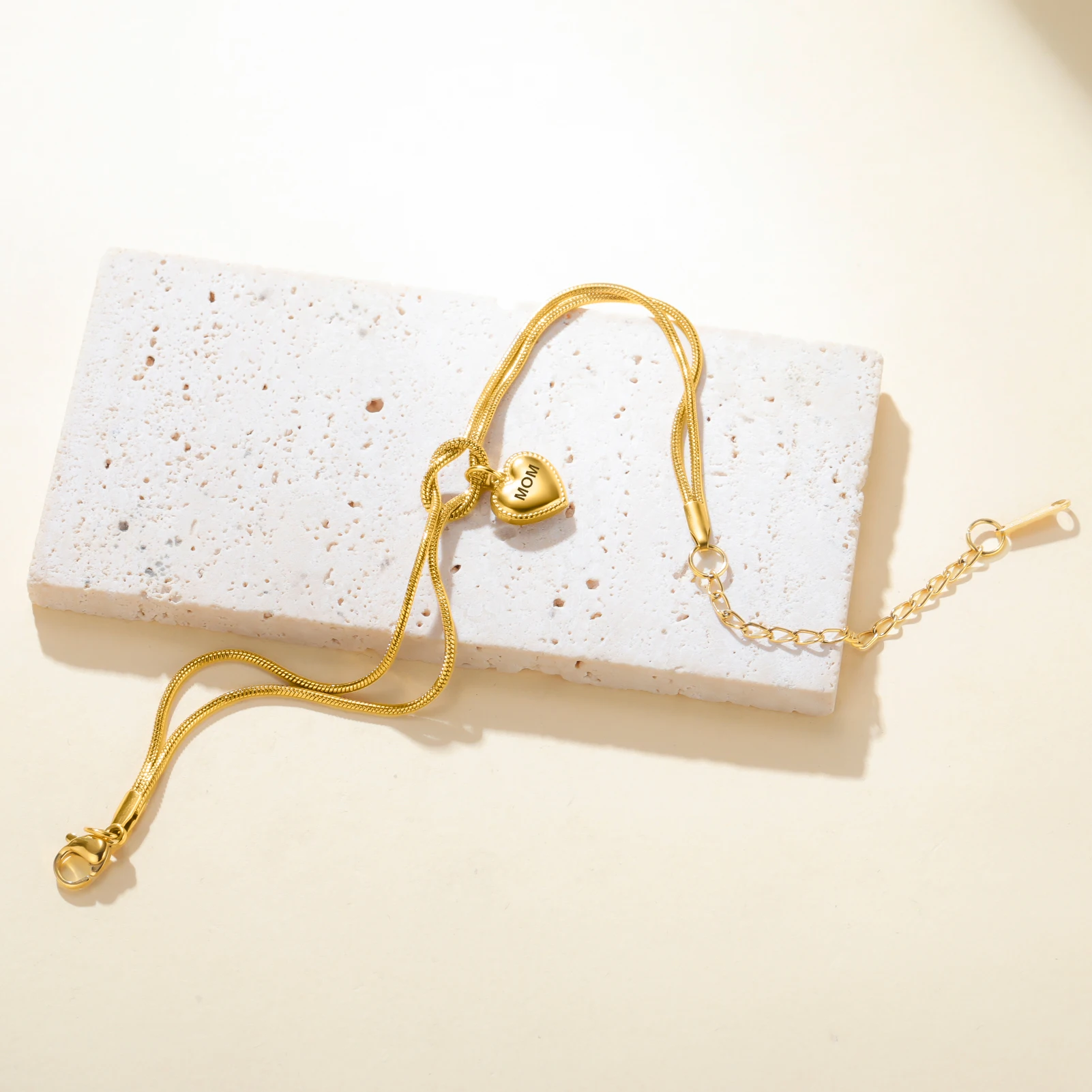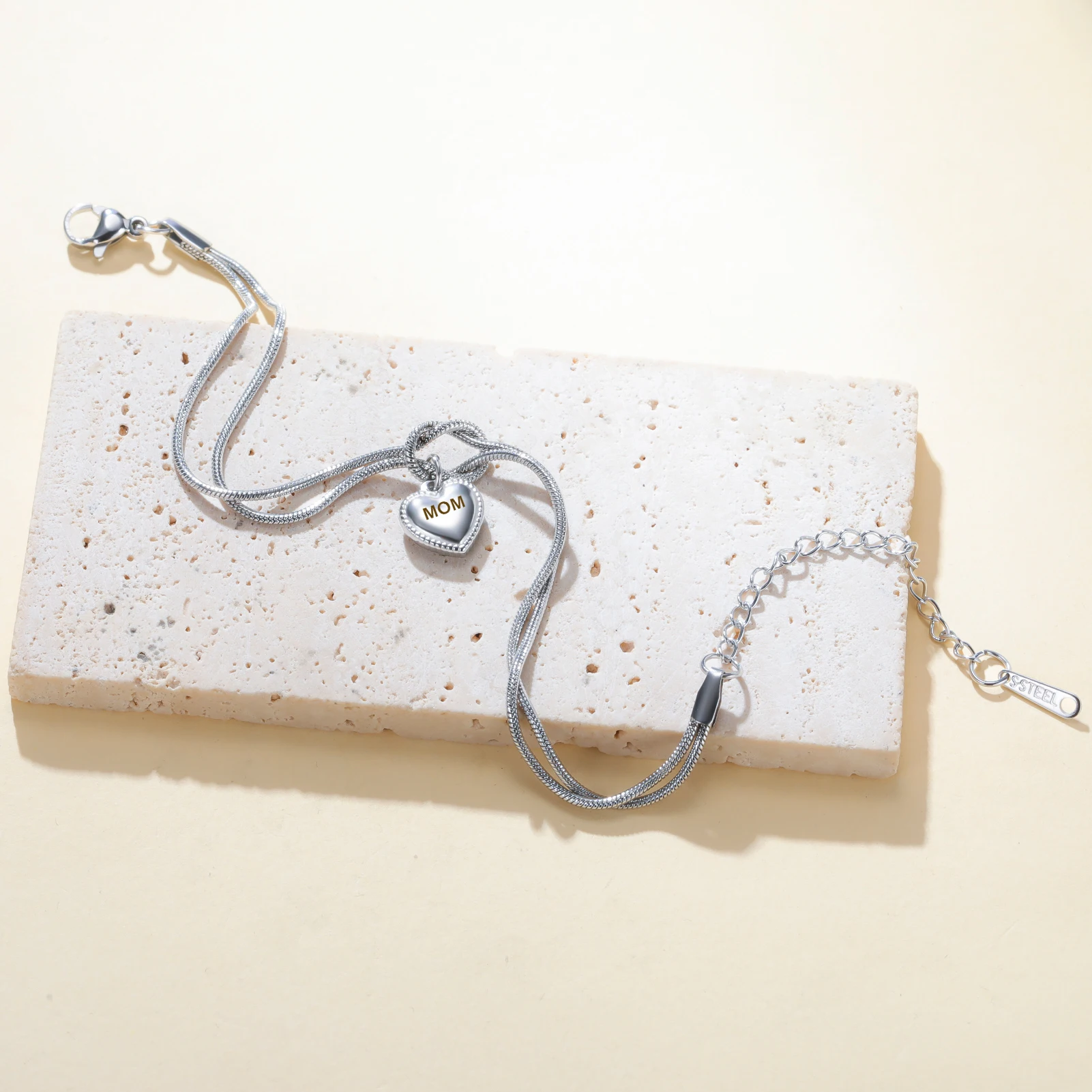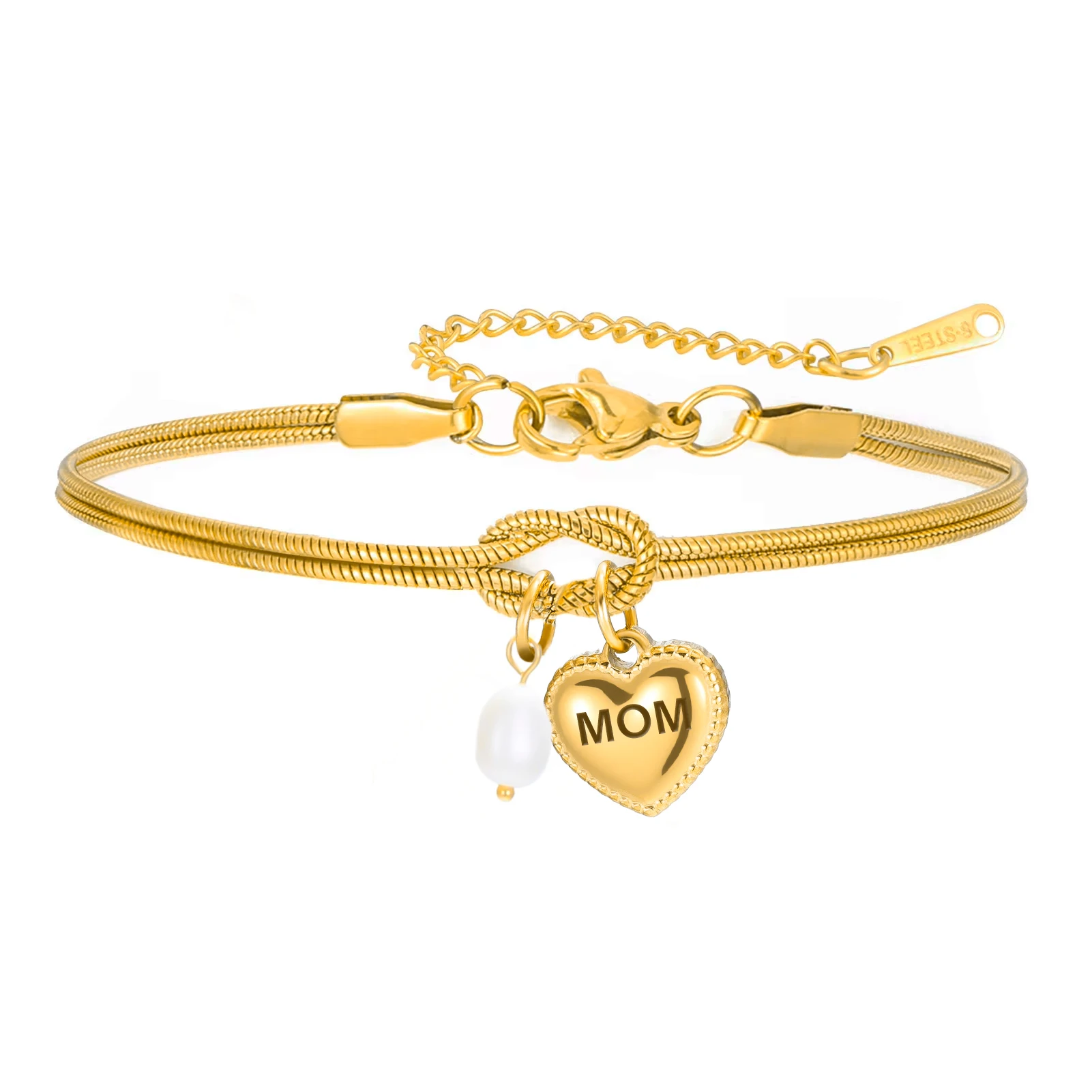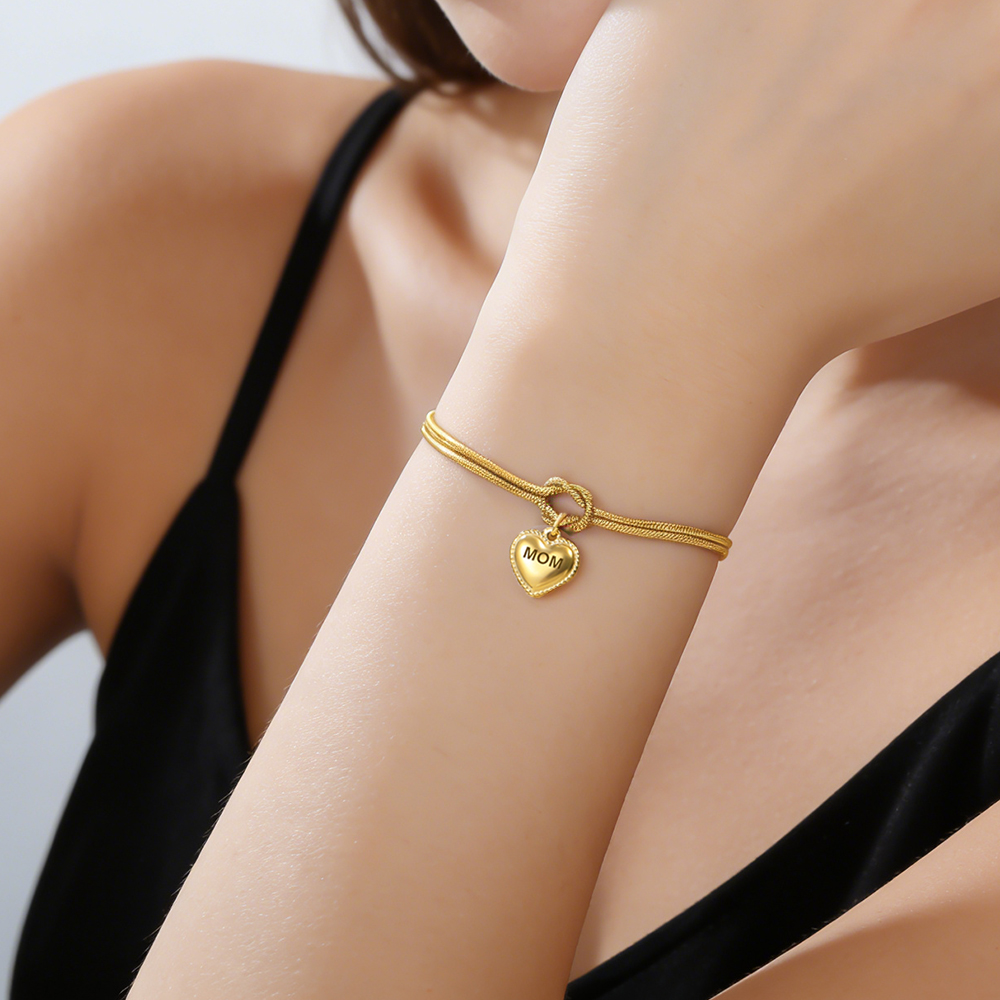 MOM Engraved Heart Charm Bracelet Stainless Steel Women’s Love Knot Snake Chain Bracelets Fashion Jewelry Mother’s Day Gift