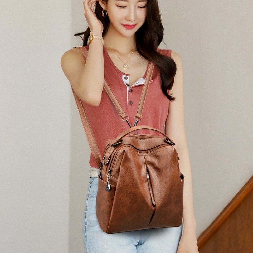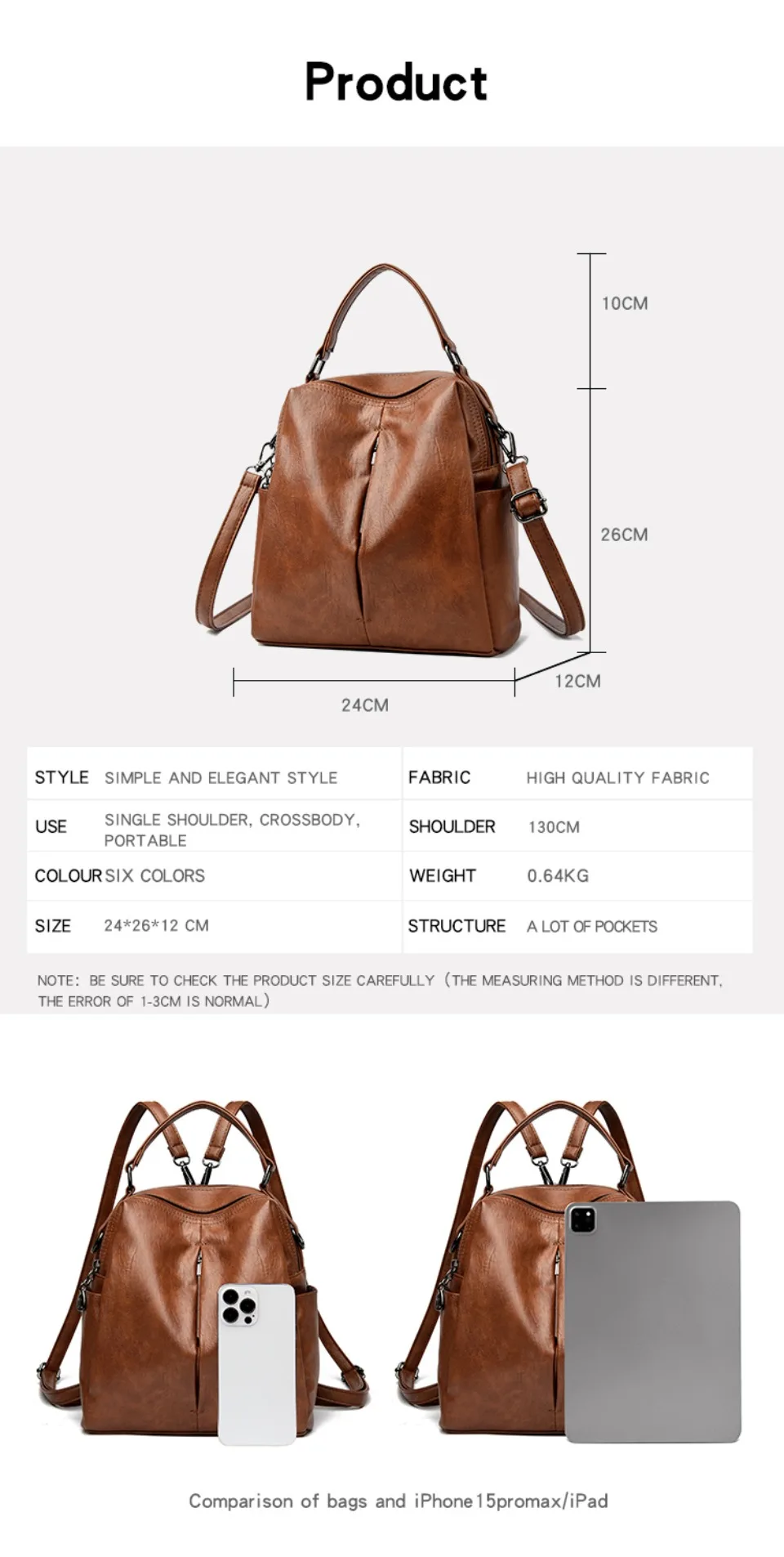 Multifunction Kangaroo Brand Pu Leather Women’s Backpack Middle-aged Mom Tote Shoulder Travel Backpack Shoulder Messenger Bag