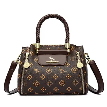Multifunction Kangaroo Brand Pu Leather Women’s Backpack Middle-aged Mom Tote Shoulder Travel Backpack Shoulder Messenger Bag