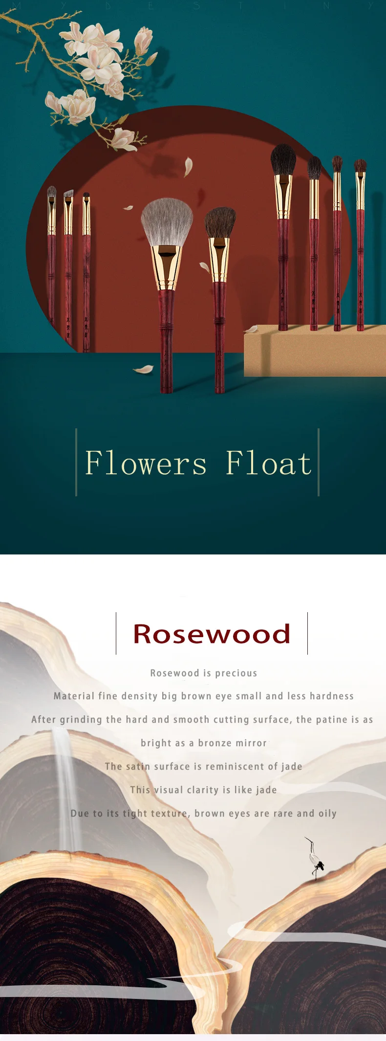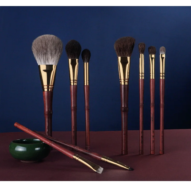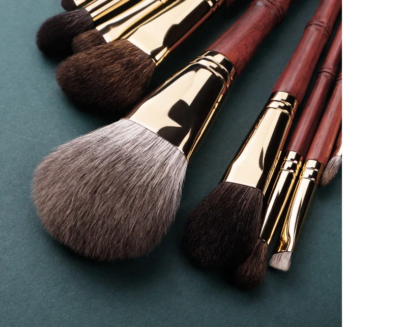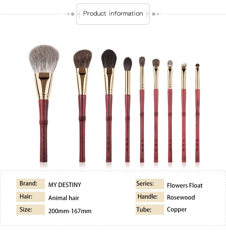 MyDestiny – Luxury 9 pcs Professional Makeup Brush Set Rosewood High Grade Brush Set Soft Animal Fox Squirrel Goat Hair