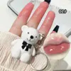 New 6 Color Cute Bear Matte Lip Mud Velvet Grey Pink Keychain Lipstick Waterproof Lasting Lip Glaze Cosmetics Portable Lip Gloss