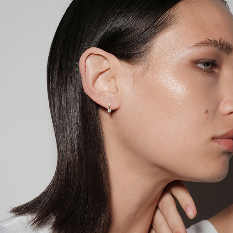 New 925 Sterling Silver Female Luxury Crystal Round Stud Earrings Vintage Wedding Jewelry White Zircon Stone Earrings