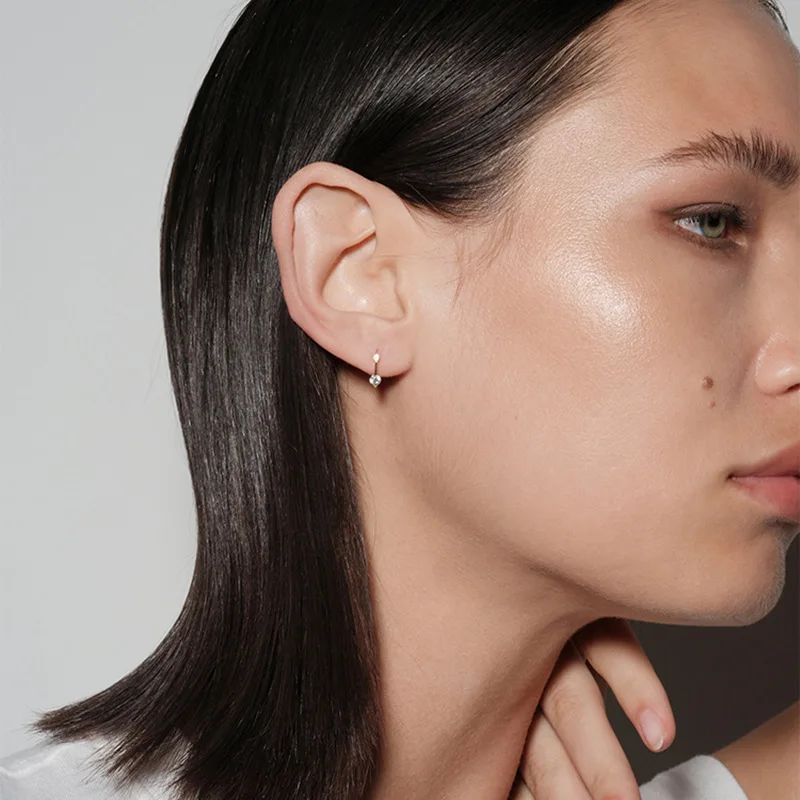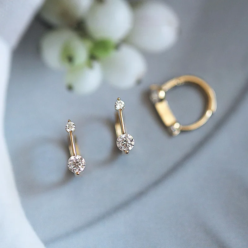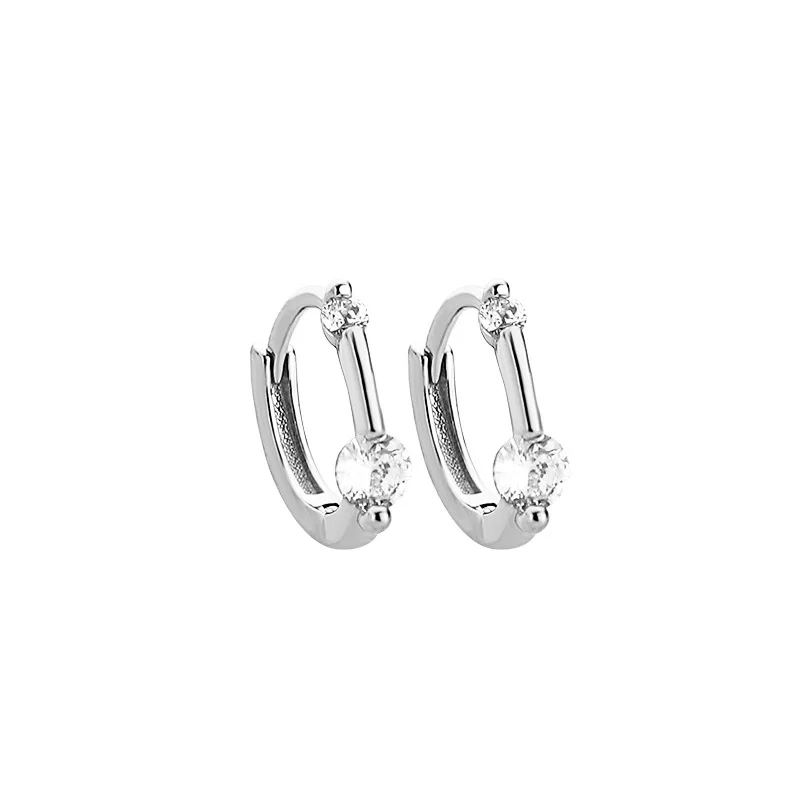 New 925 Sterling Silver Female Luxury Crystal Round Stud Earrings Vintage Wedding Jewelry White Zircon Stone Earrings