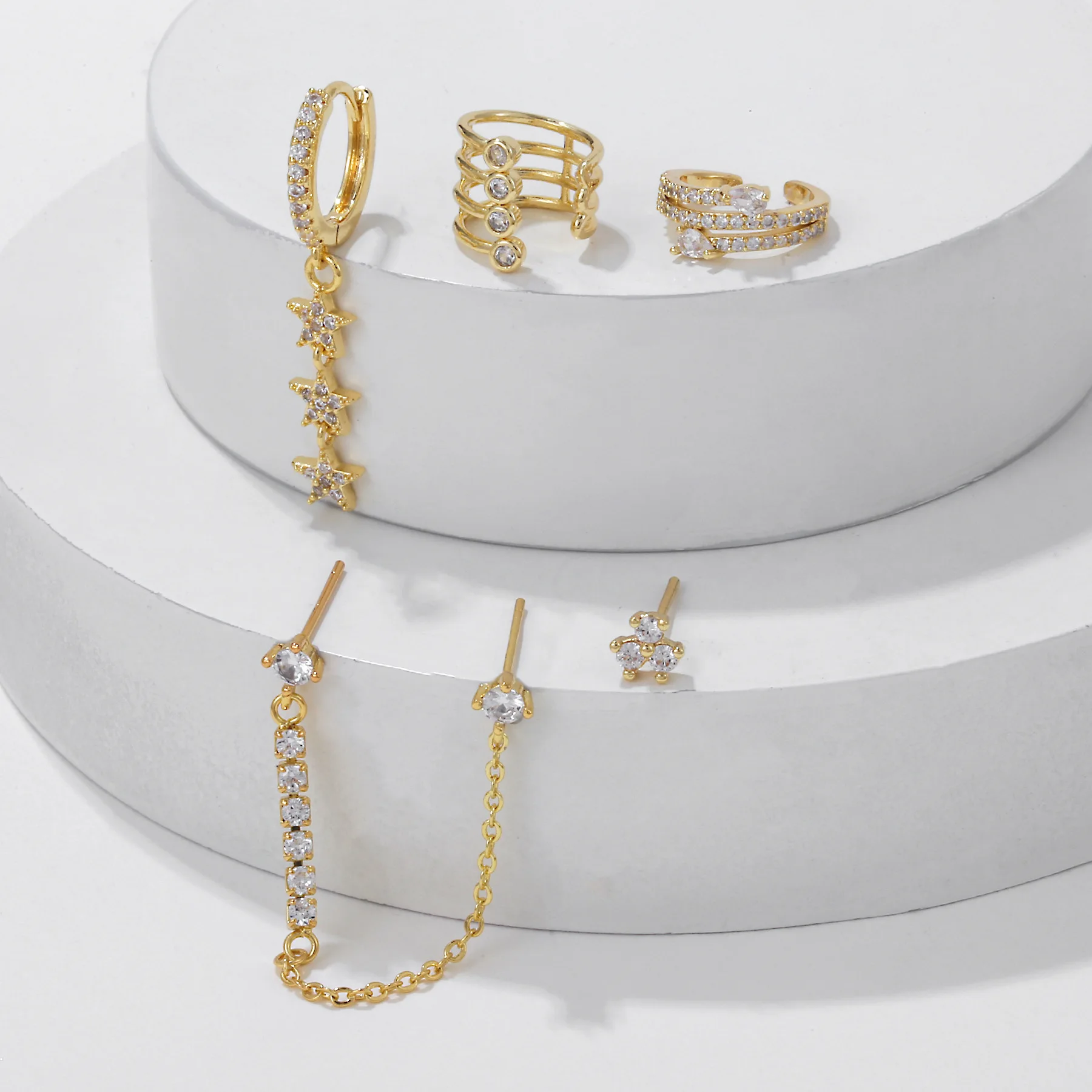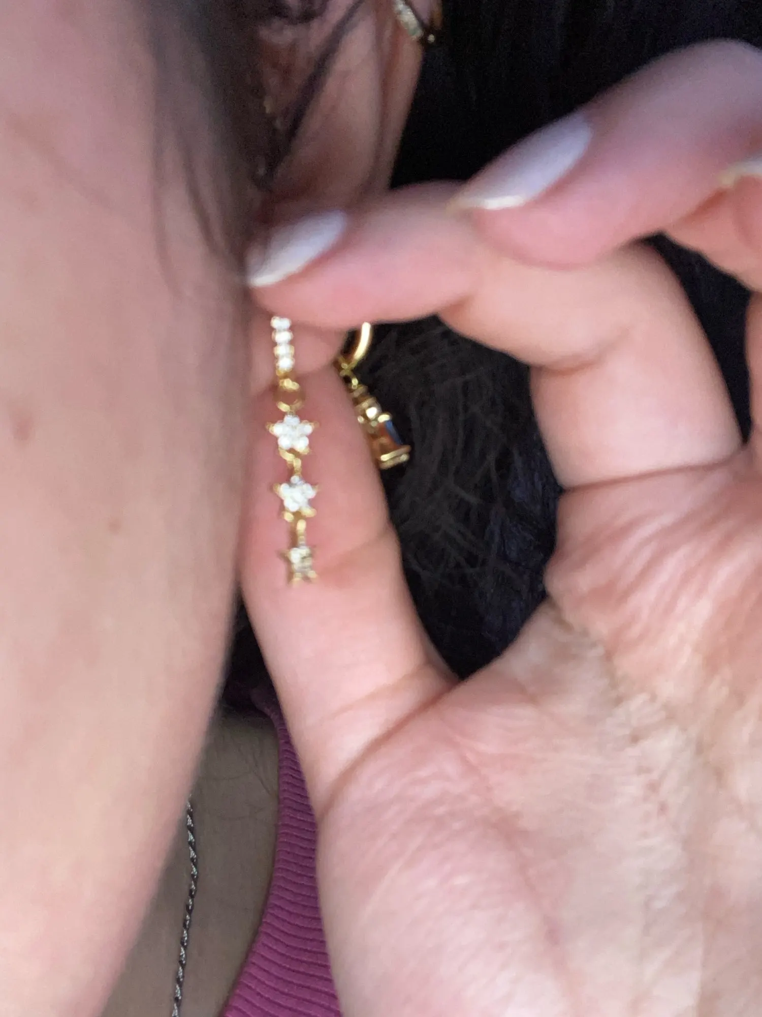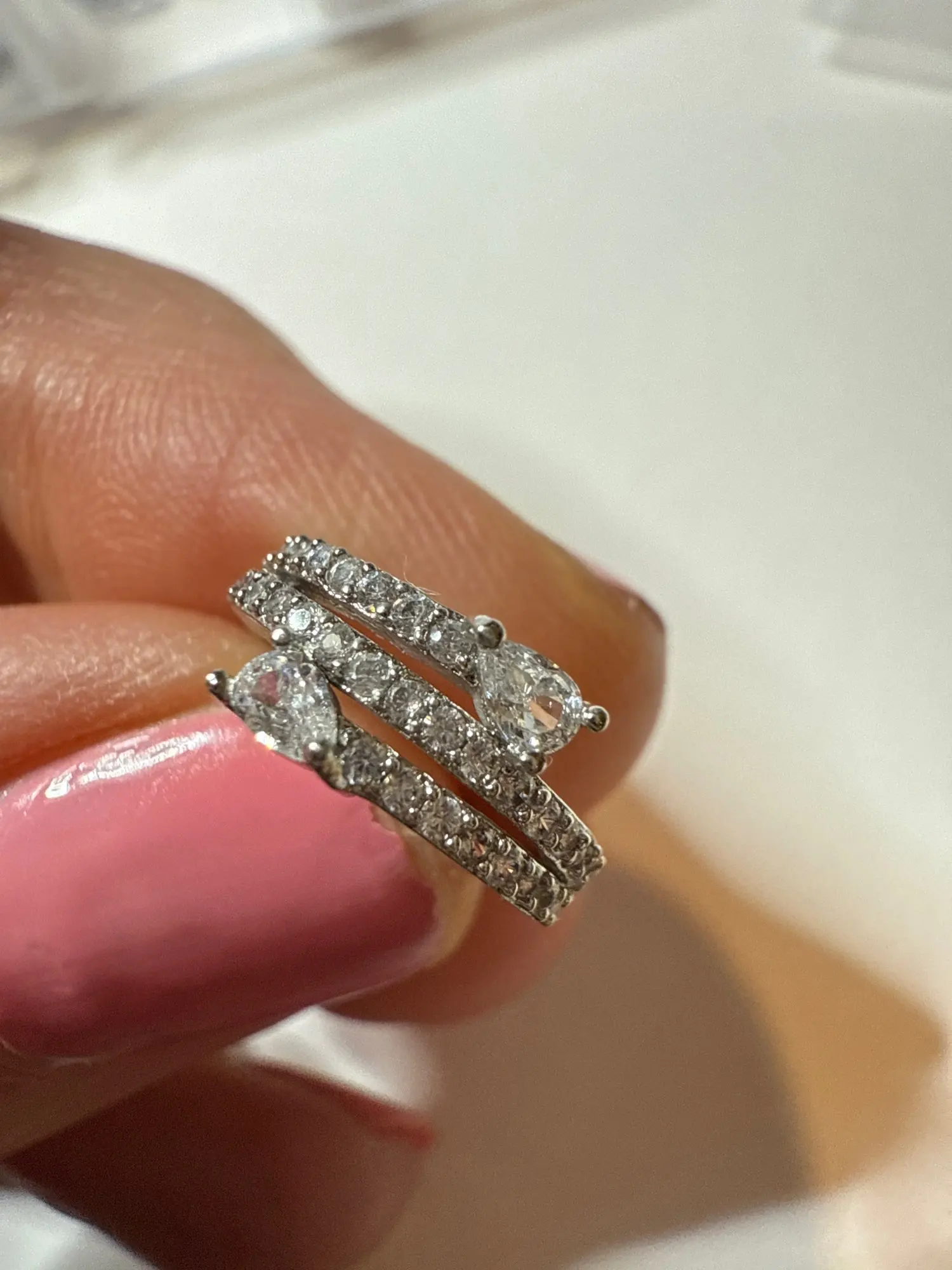 This stainless steel ear cuff is lovely. The stones catch the light well. The description is accurate.