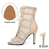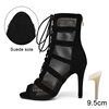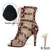 New Ballroom Women Black/Leopard High Heels Dance Shoes Open Toe Dance Boots Stilettos Tango Latin Dancing Booties Big Size