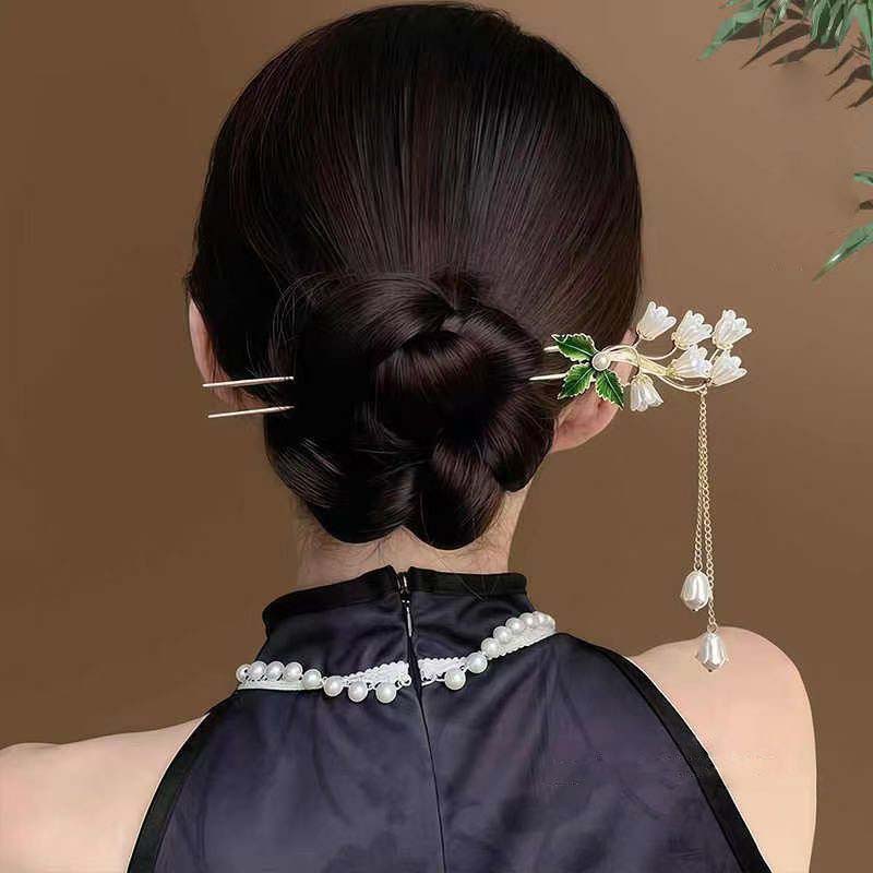 New Chinese Style Flower Tassel Hair Stick for Women Girls Elegant Metal Floral Hair Clip Bun Hair Ornament Hair Accessories