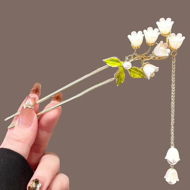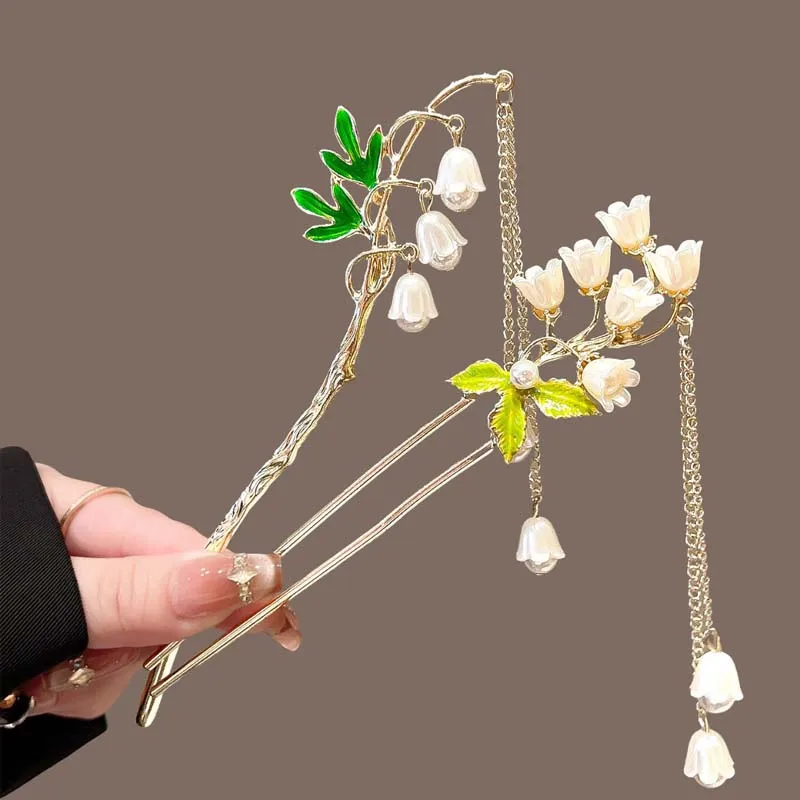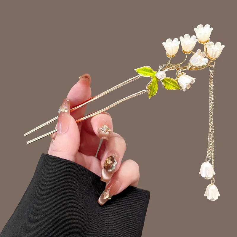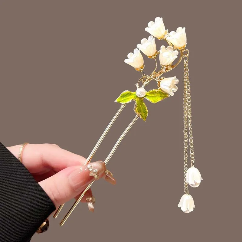 New Chinese Style Flower Tassel Hair Stick for Women Girls Elegant Metal Floral Hair Clip Bun Hair Ornament Hair Accessories