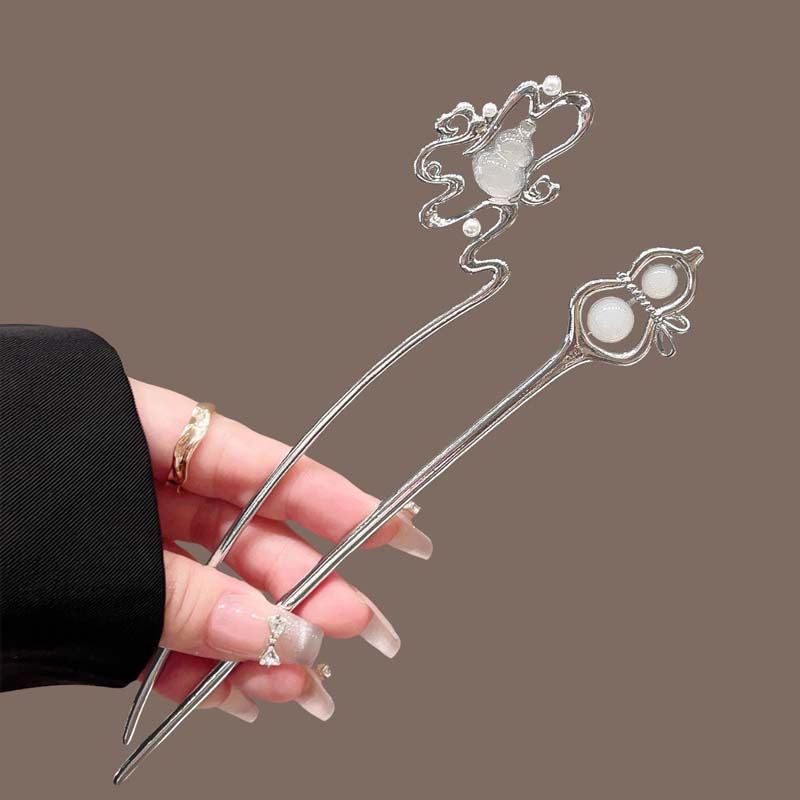 New Chinese Style Moonstone Gourd Hair Stick for Women Fashion Metal Hanfu Hair Chopsticks Hair Fork Hairpin Hair Accessories