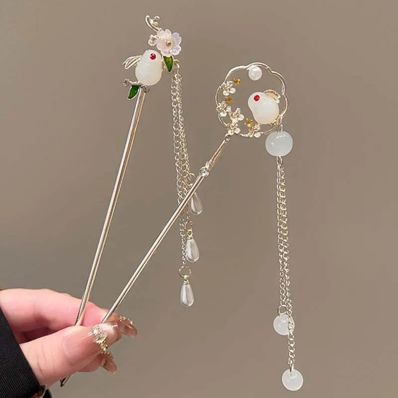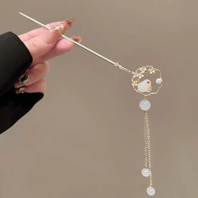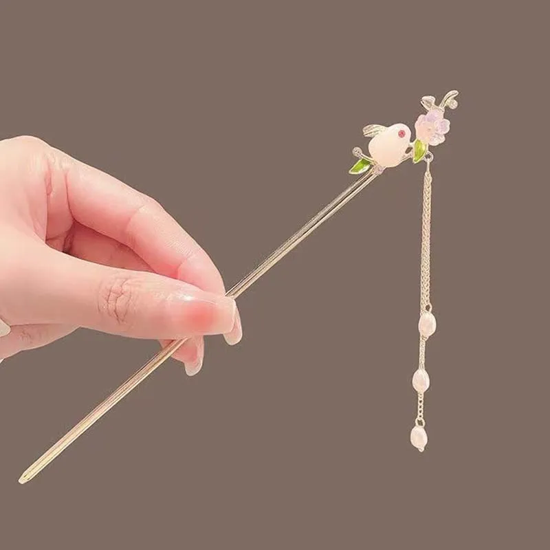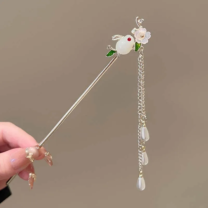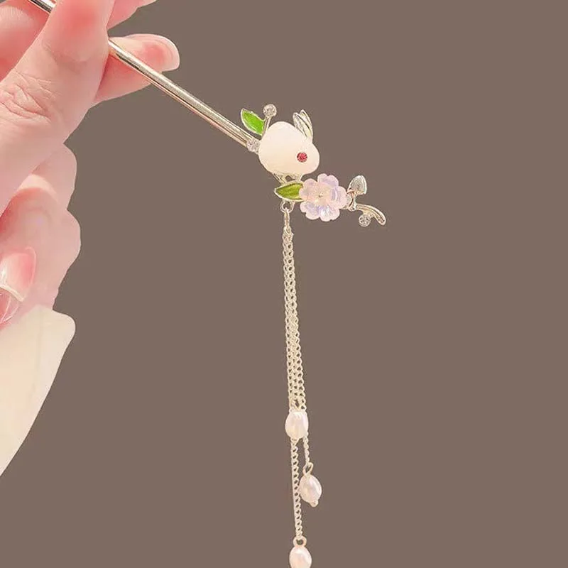 New Chinese Style Rabbit Pearl Tassel Hair Stick For Women Elegant Metal Flower Hanfu Hairpin Headwear Hair Accessories