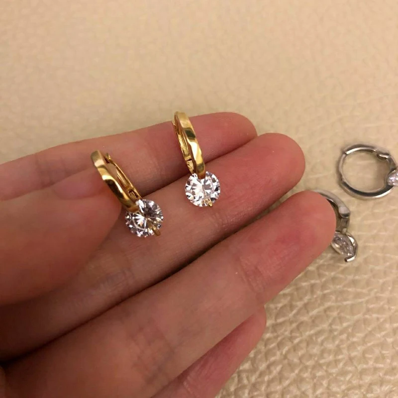 New Classic Stainless Steel Shiny Zircon Hoop Earrings For Woman Fashion Korean Jewelry Temperament Girl’s Daily Wear Earrings
