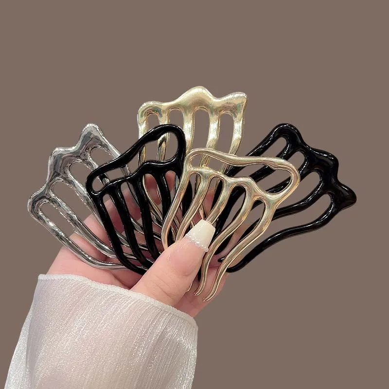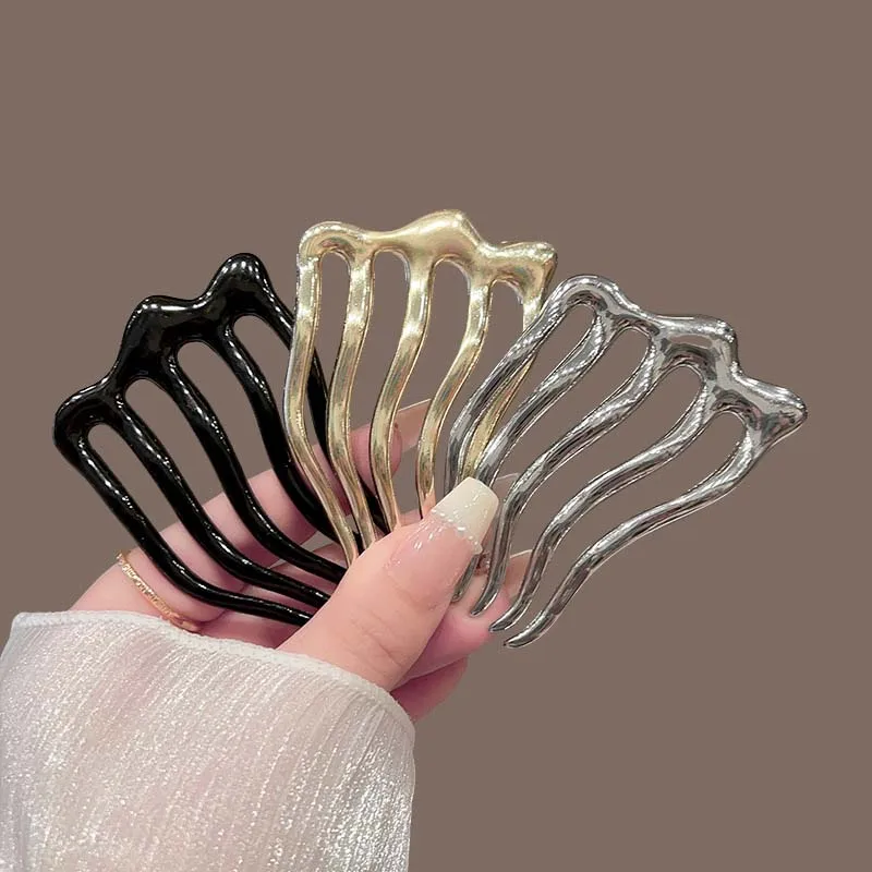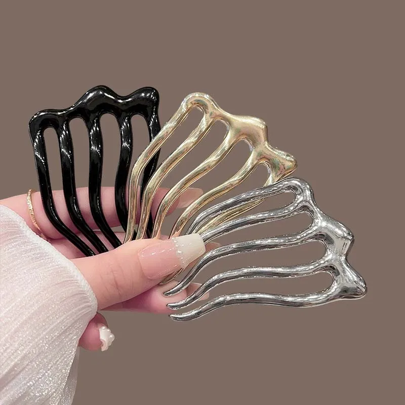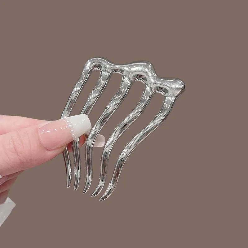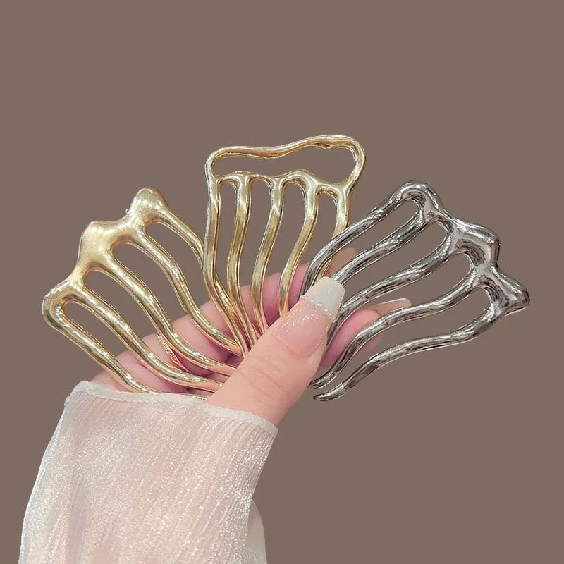 New Fashion Metal U-Shaped Hair Sticks Combs For Women Simple Metal Liquid Tooth Comb Hair Clip Pins Hearwear Hair Accessories