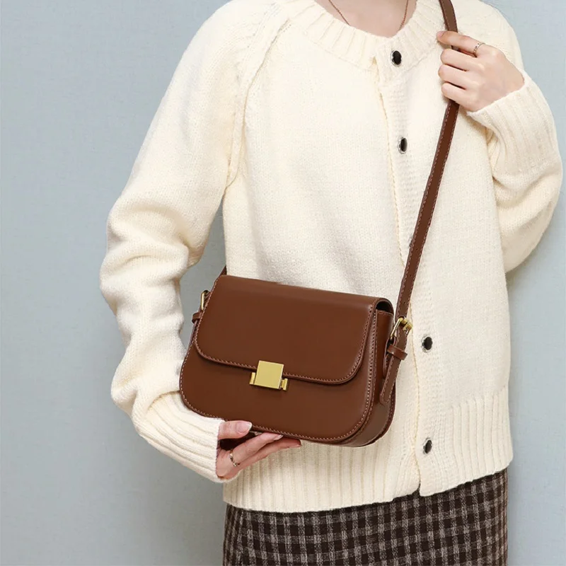 New Genuine Leather Women’s Crossbody Bag 2025 Fashion Shoulder Bag Korean Style Luxury Ladies Underarm Commuter Shopping Bag