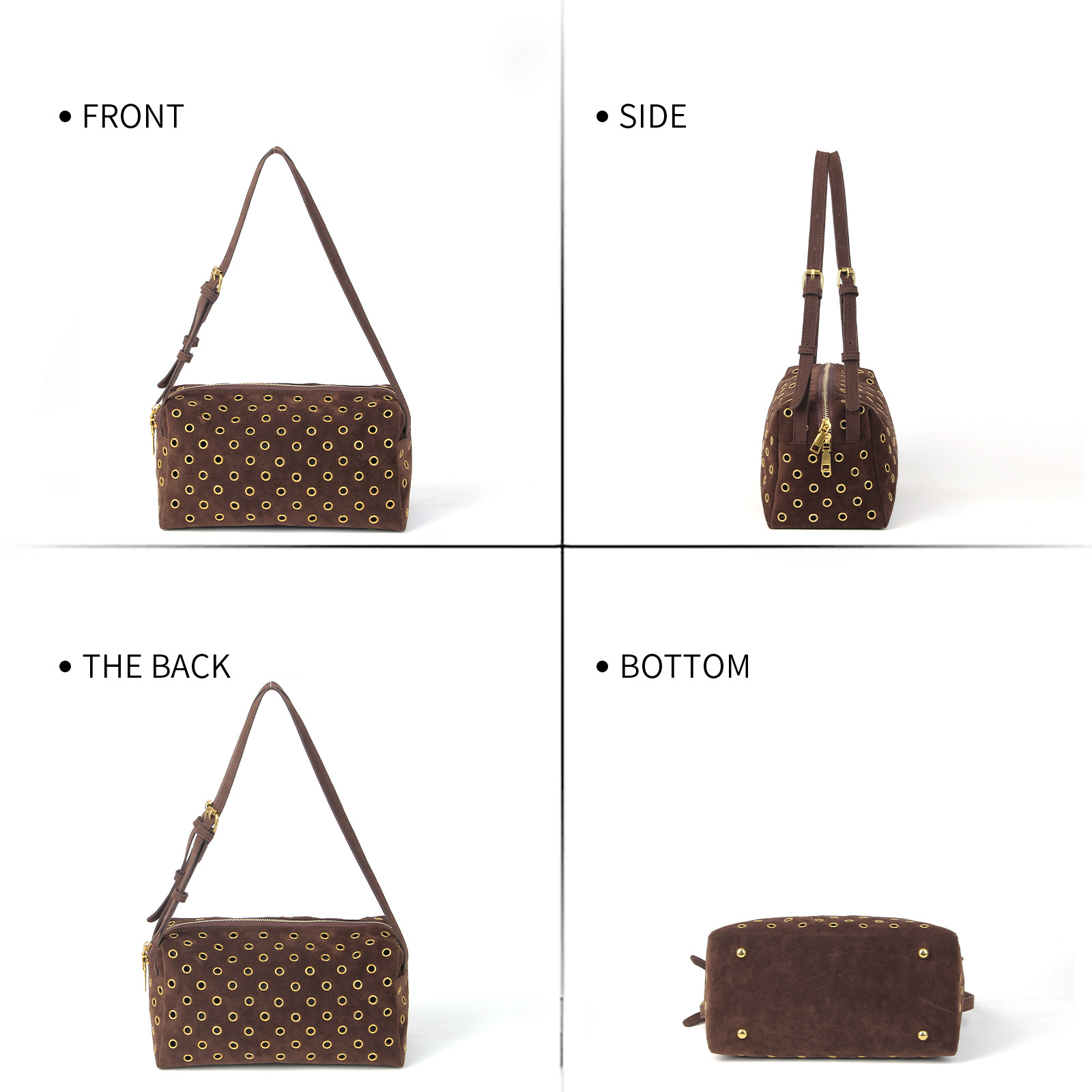 New High-end Luxury Literary Style Shoulder Bag Imitation Suede Texture Rivet Shoulder Bag Work Commuting Dating Hollow Handbag
