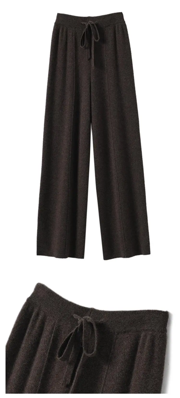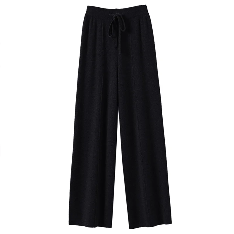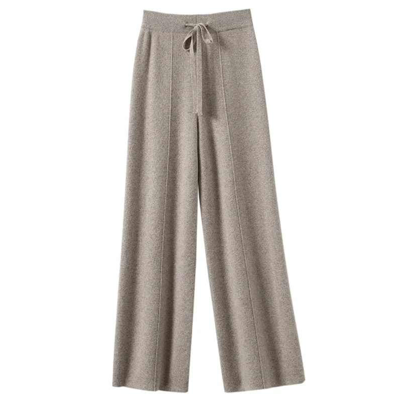 New Knitted Women Pant High Strecth Casual Trousers High Waist Drawstring Slim Fit Wide Leg Pant Full Length Autumn Winter Pants