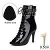 NEW Large Size Fish Mouth Belt Buckle Stiletto Hollow Dance Short Boots Lace-up Jazz Tango Party Dance Shoes Dancing High Heels