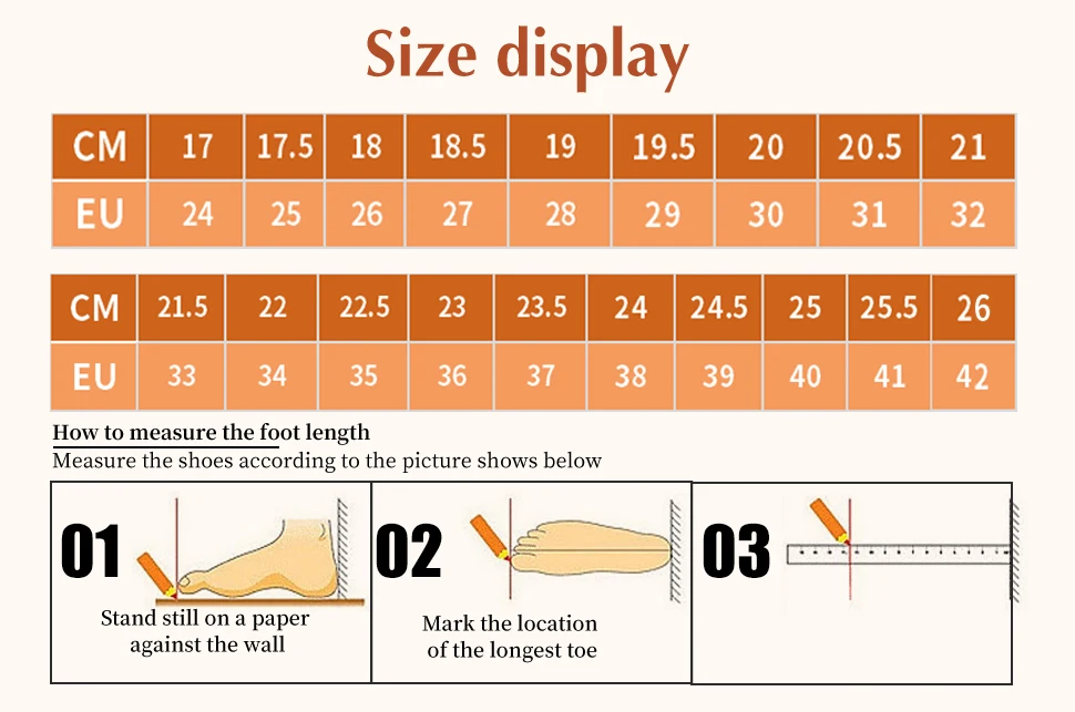 Size Tip:Please Measure your feet length before place the order, then refer to the size chart to choose the size according to your feet length.