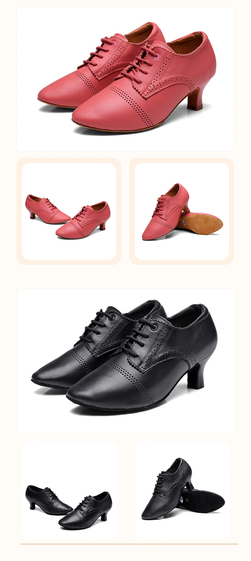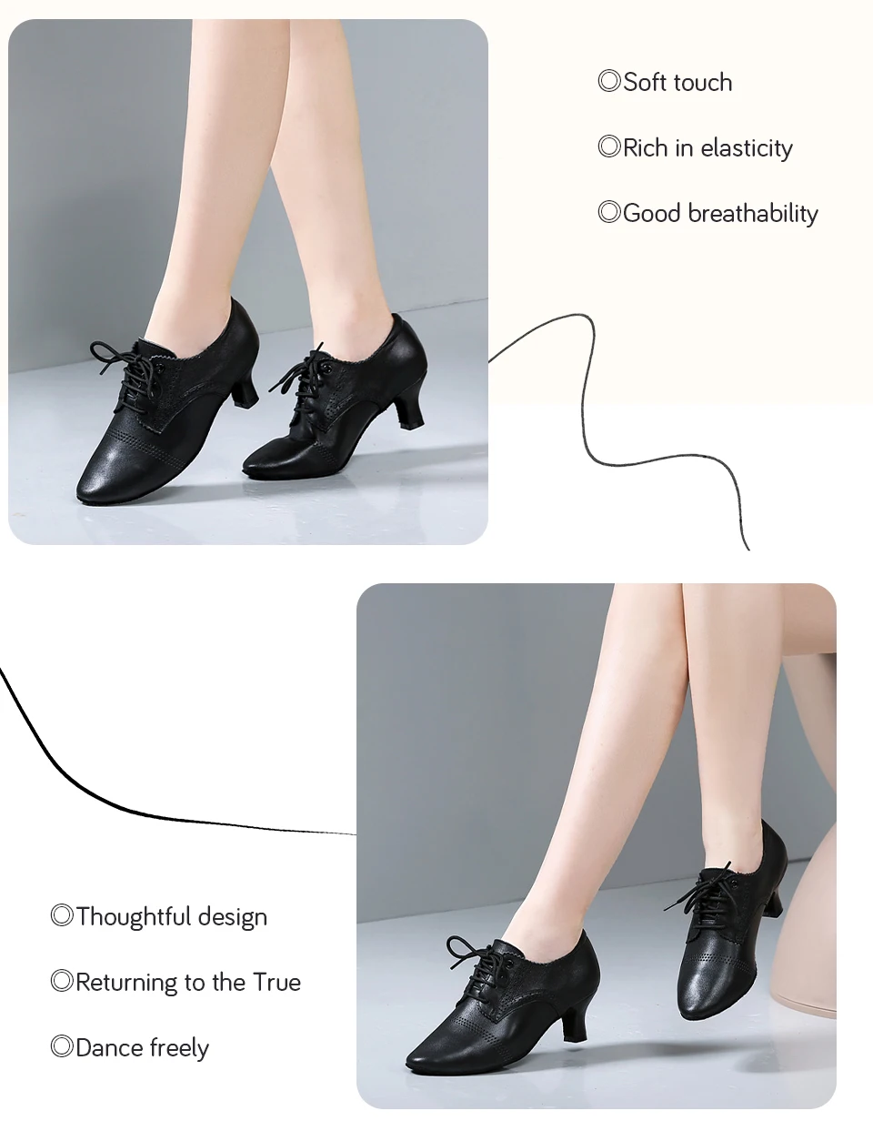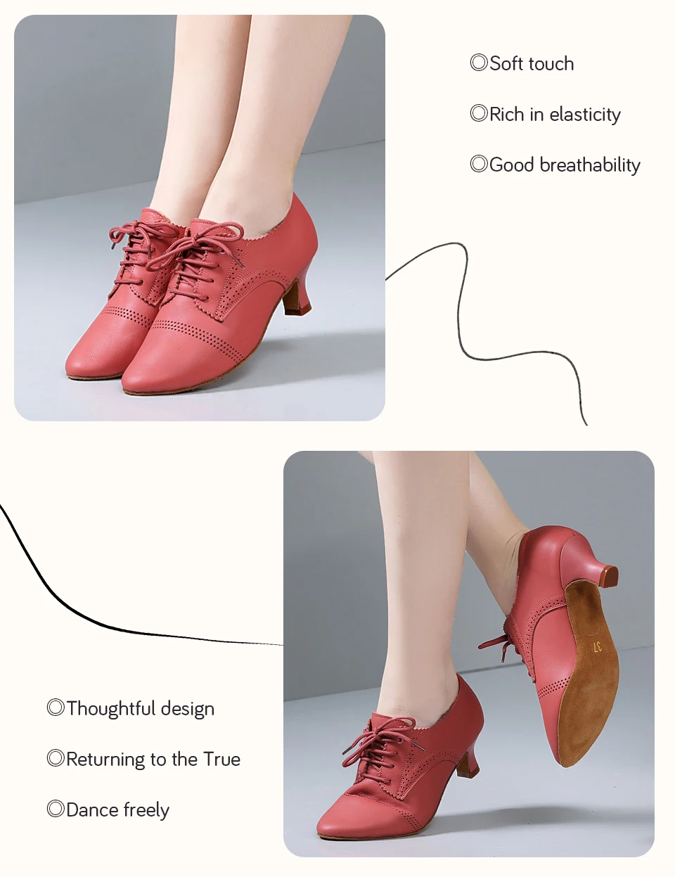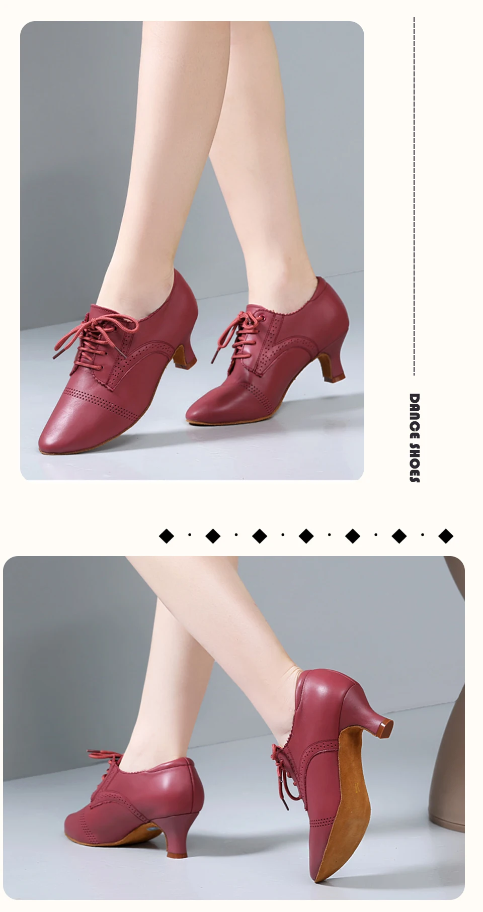 NEW Modern Closed Toe Dance Shoes Women Leather Lace Up Retro Dance Shoes Soft-soled Middle Heel Waltz Tango Dance Shoes Gilrs